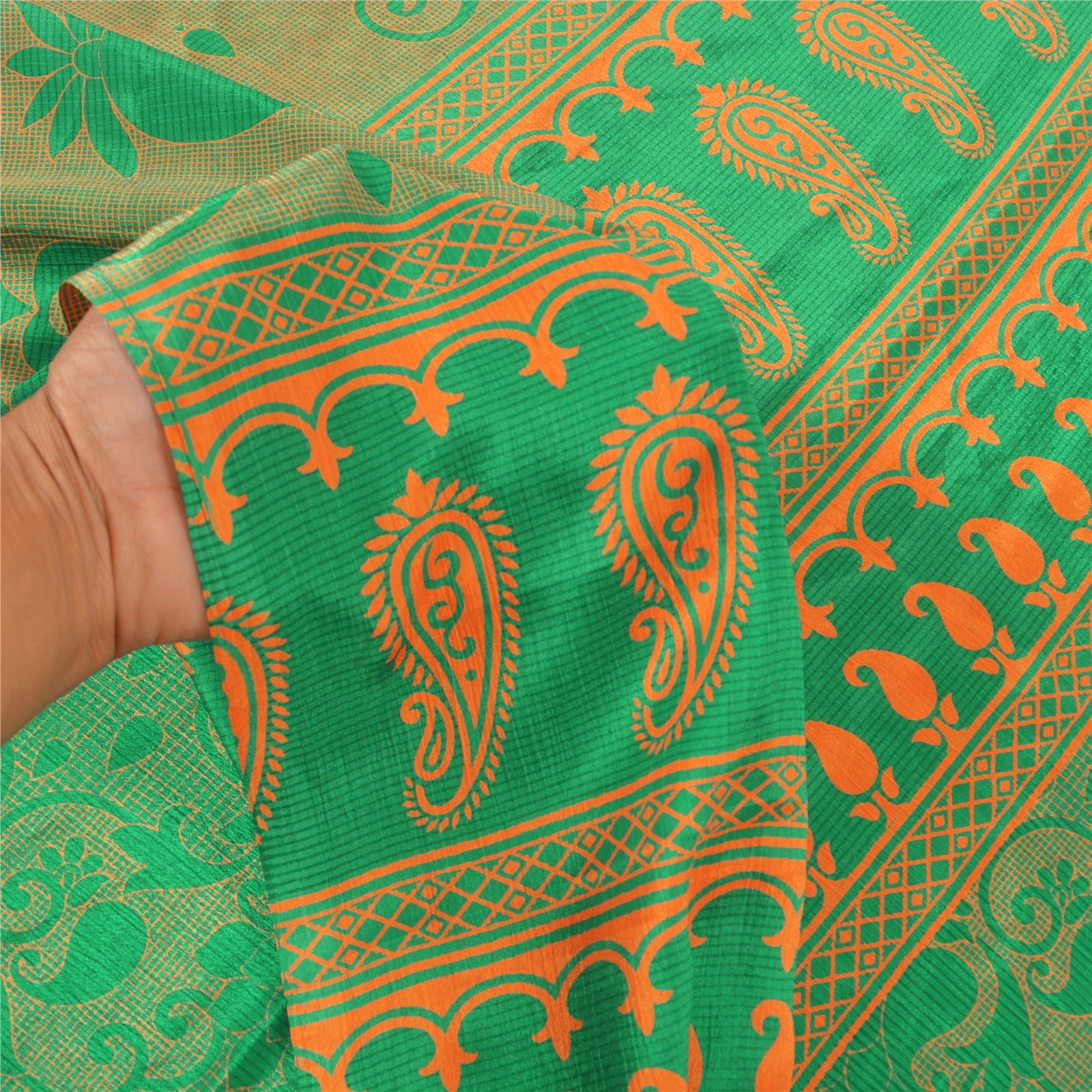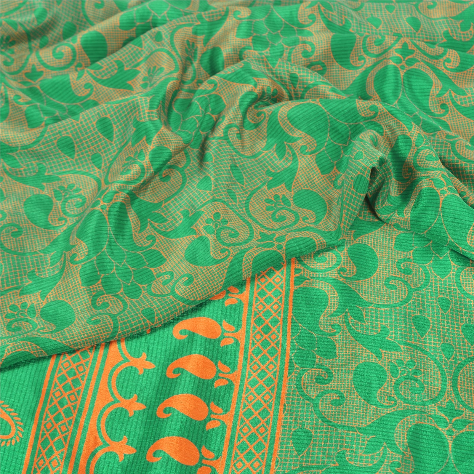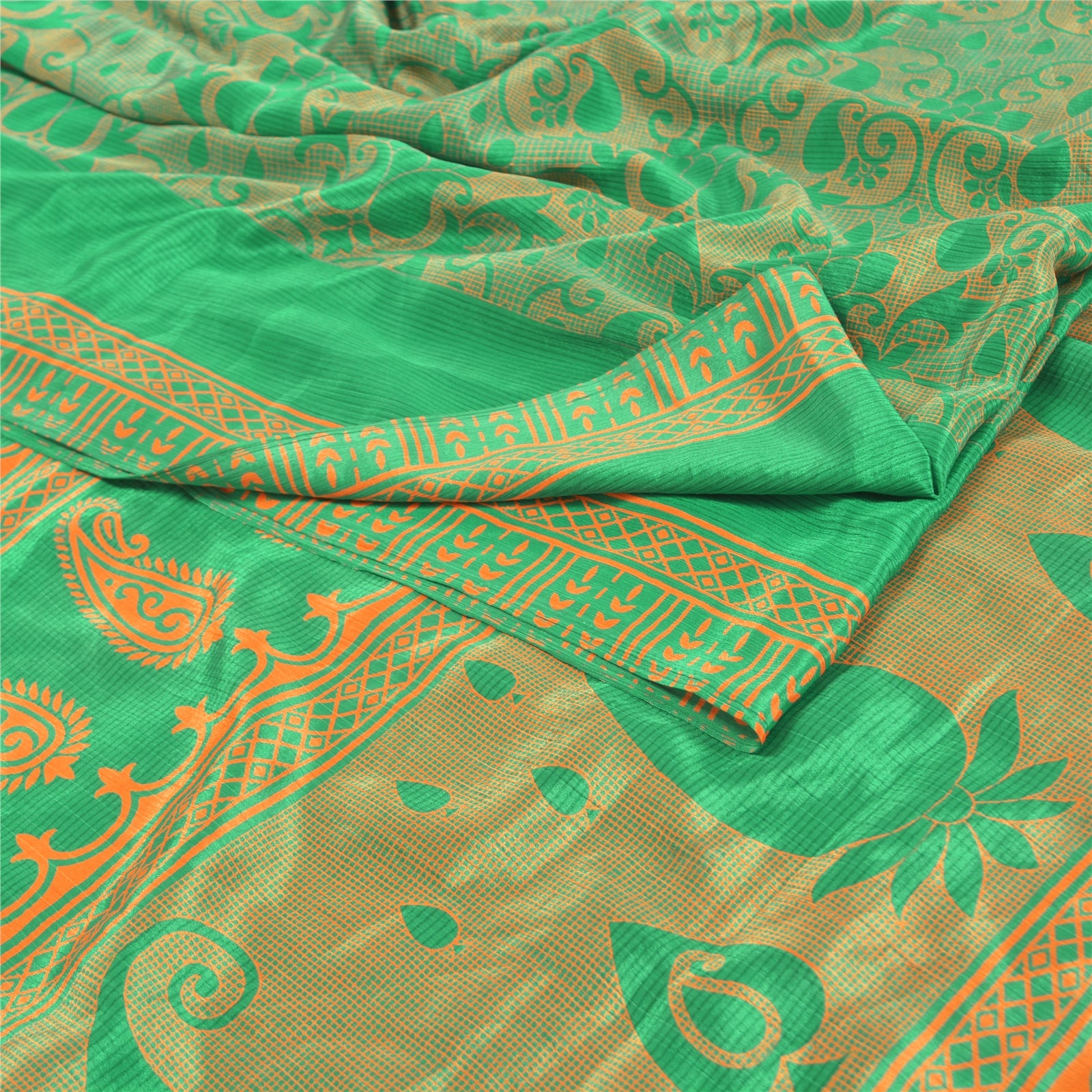 Sanskriti Vintage Green Sarees Moss Crepe Floral Printed Craft Sustainable Fabric Sari