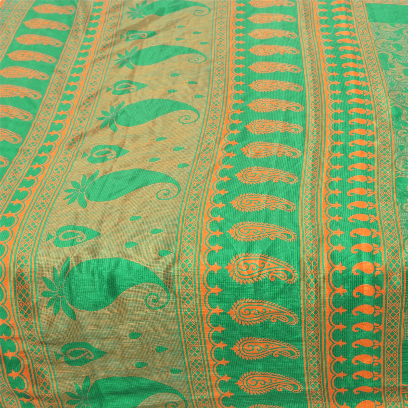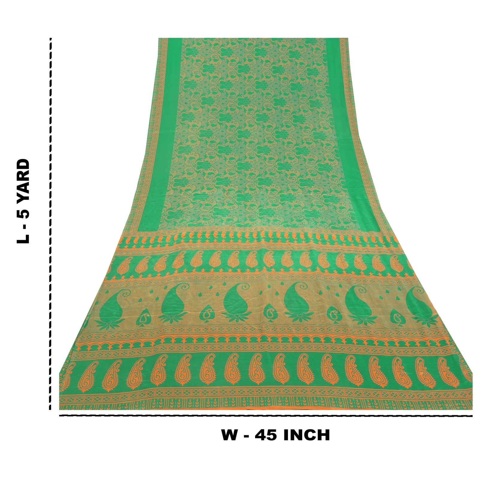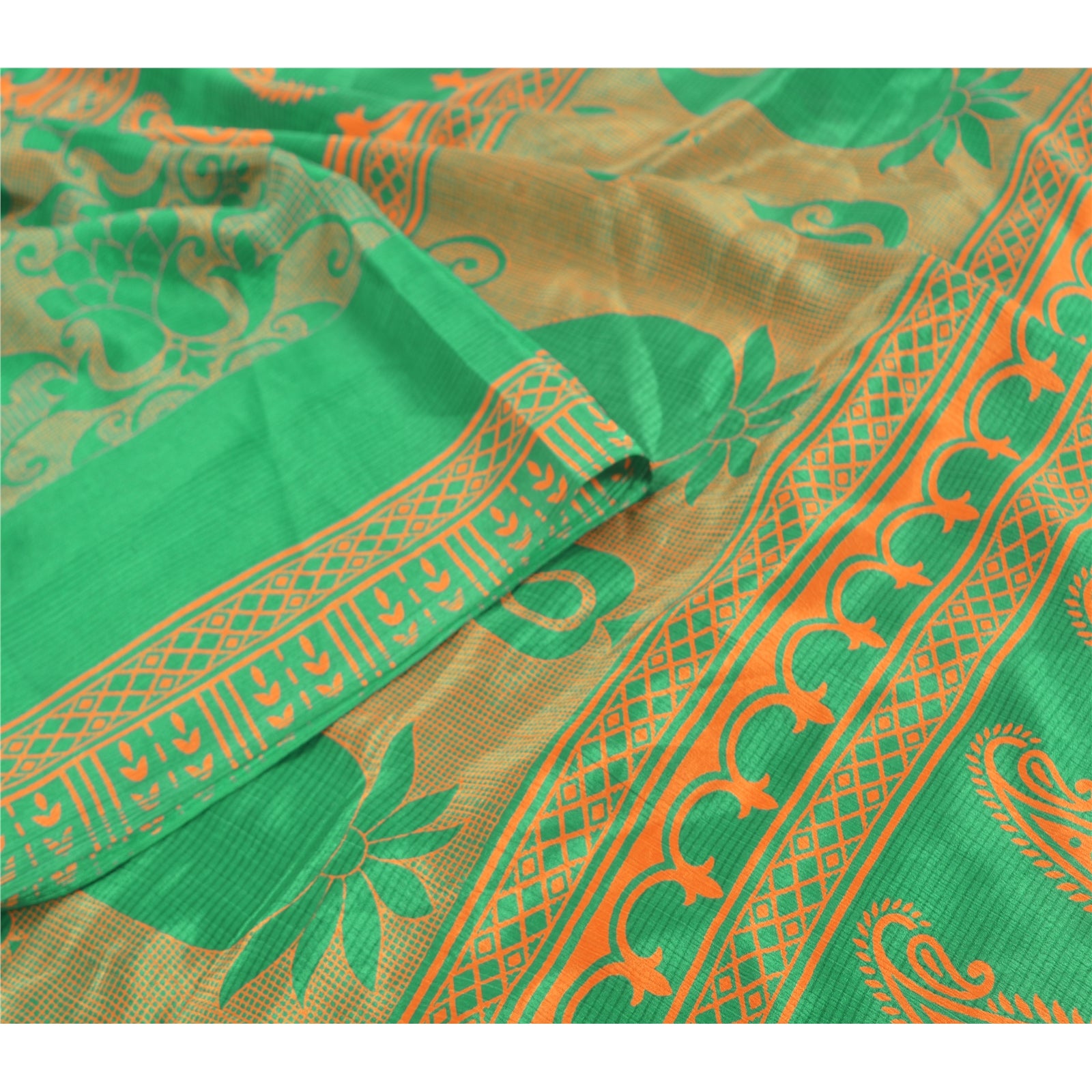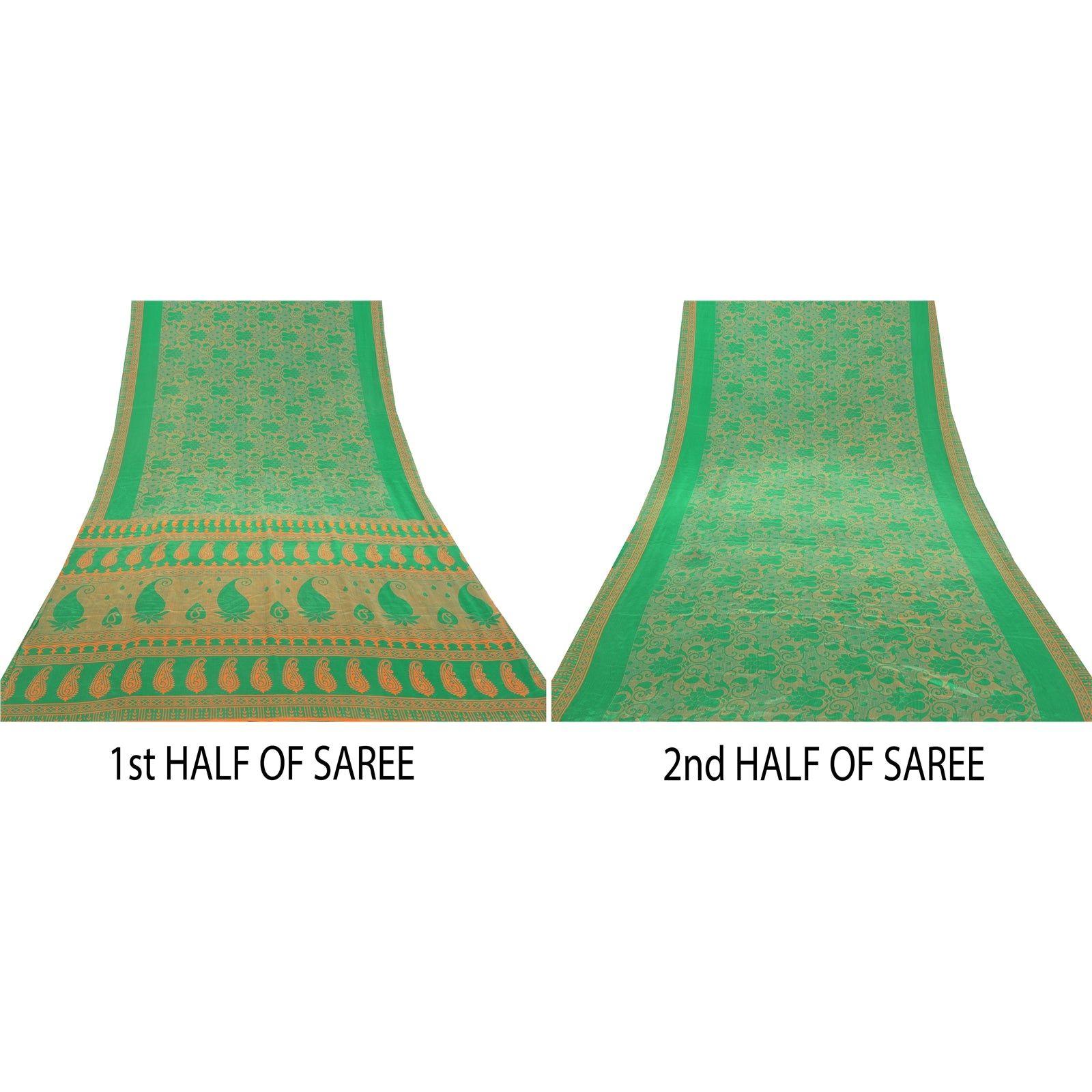 Sanskriti Vintage Green Sarees Moss Crepe Floral Printed Craft Sustainable Fabric Sari