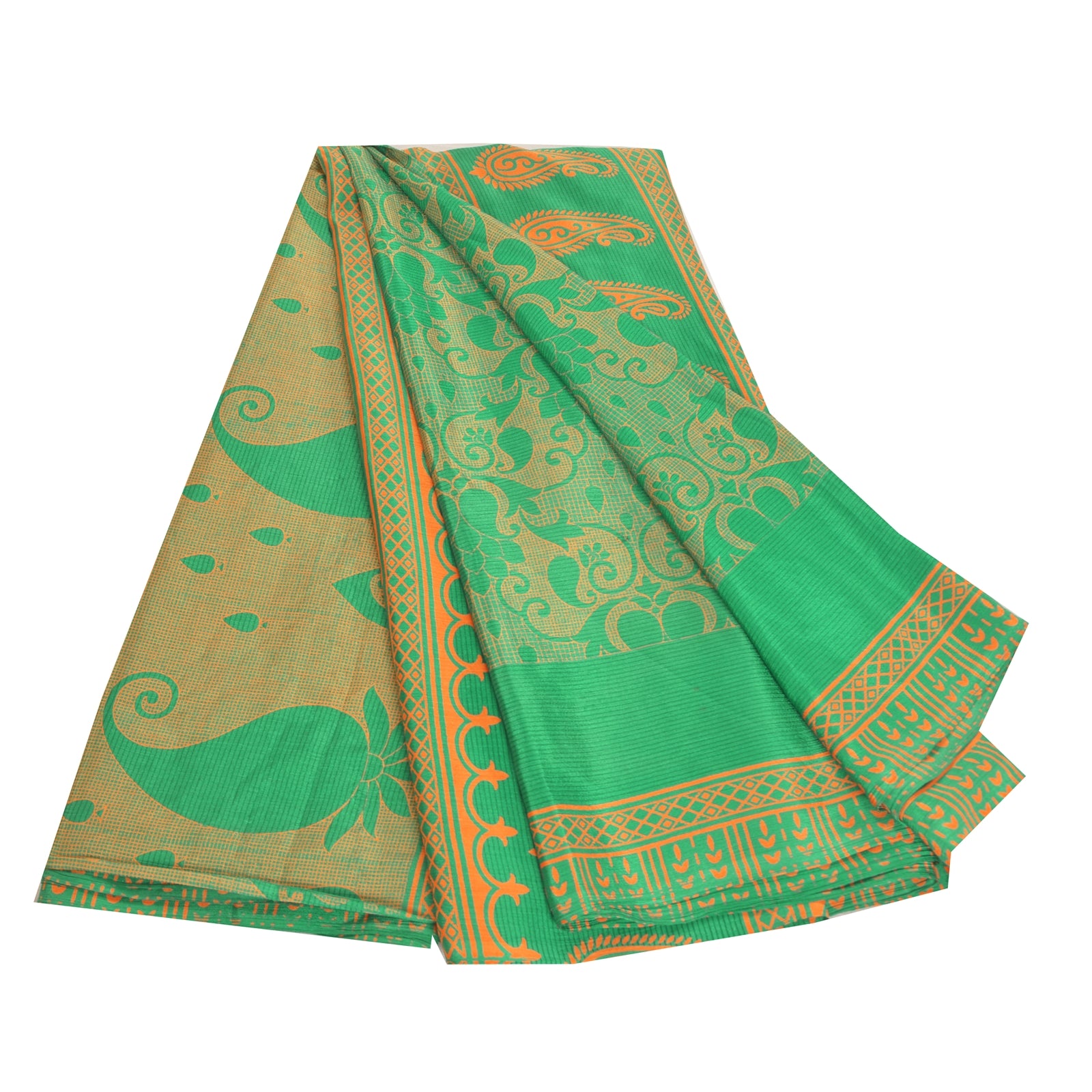 Beautiful green colored printed moss crepe saree. Pallu & Border has printed floral & paisley design. Floral design in center part of sari. What is special about this saree? Nice floral design with extremely smooth moss crepe base Sustainable Fabric is really enhancing the beauty of the saree. This unique vintage saree can be used for various crafting ideas even if you don't want to use it as a sari. Design a dress, use it as a throw, as window dressing, upholstery, sarongs, table linen and much more. Let your creative juices flow and use this decorated Sustainable Fabric in multiple fashion. Please note - Buyers from Australia are required to pay postage. Registered air mail to Australia is temporarily suspended due to the pandemic. Once it goes back to normal we'll revert to free shipping. For now, we are using Aramex and DHL to ship orders. These services are expensive but faster compared to regular mail. Thank you for your support. If you are buying in bulk we will refund whatever excess is left. Contact us after that purchase. For USA buyers - Single item ships via registered air mail, buy 1 more to get FedEx.