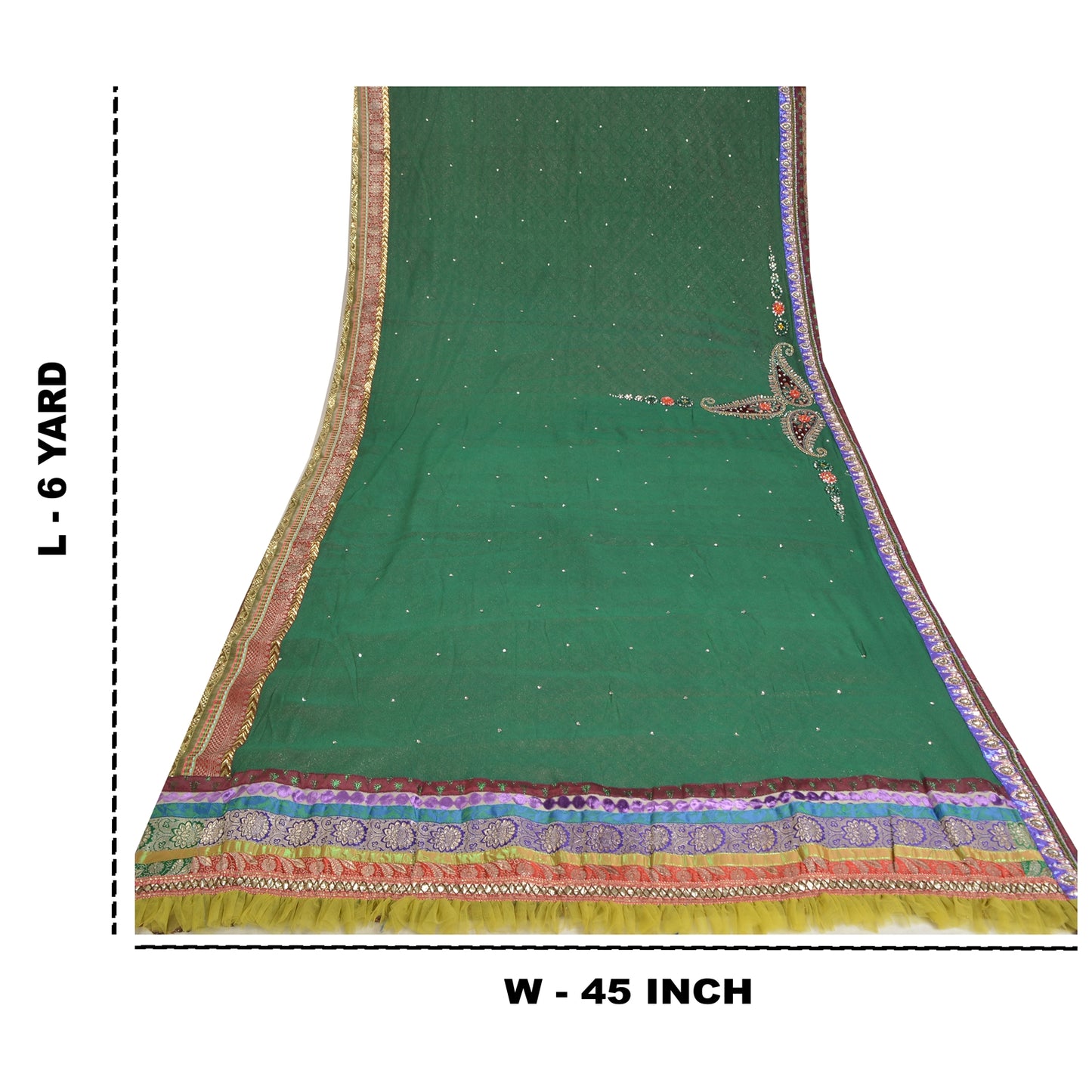 Sanskriti Vintage Green Sarees Pure Georgette Silk Handmade Sustainable Fabric Sari Blouse
