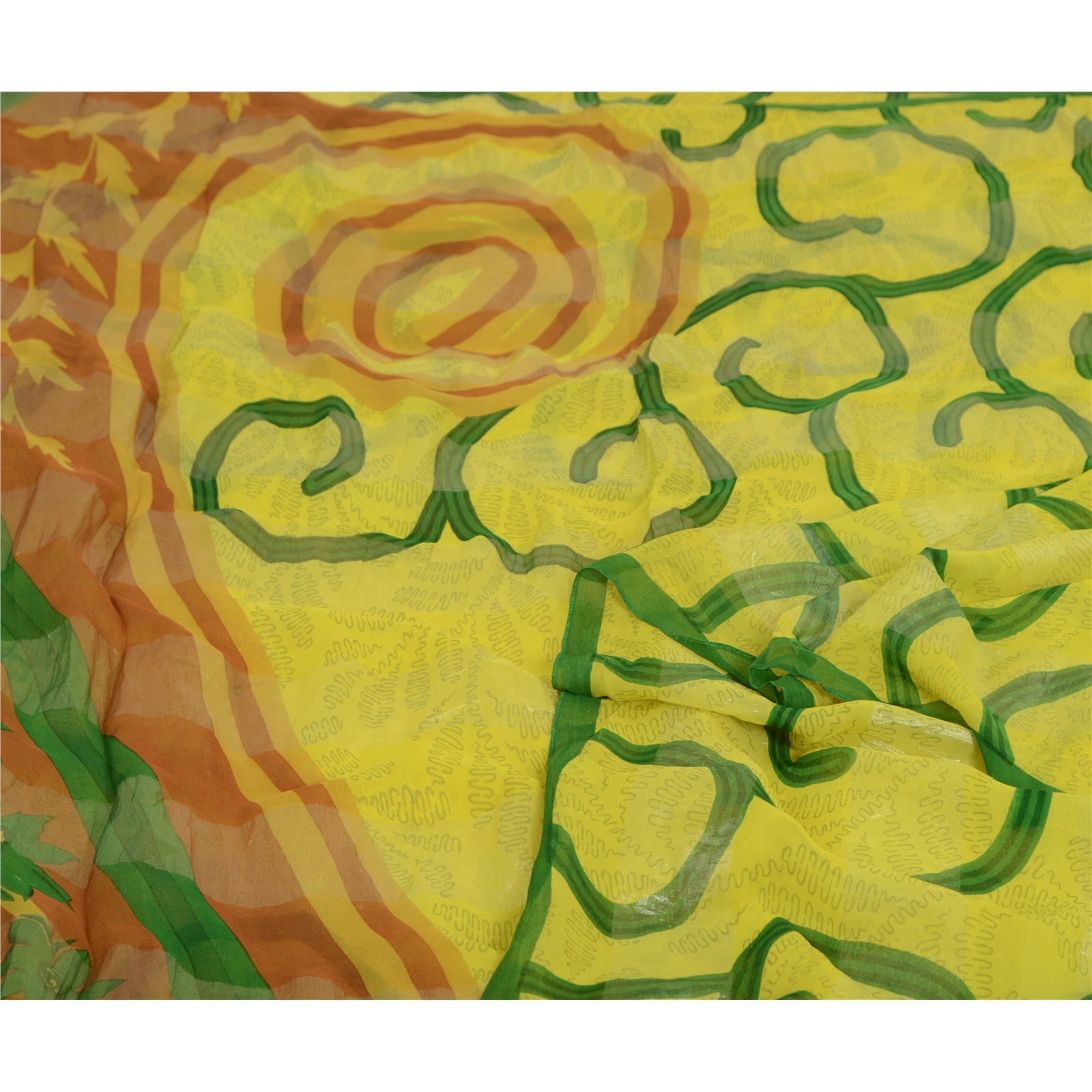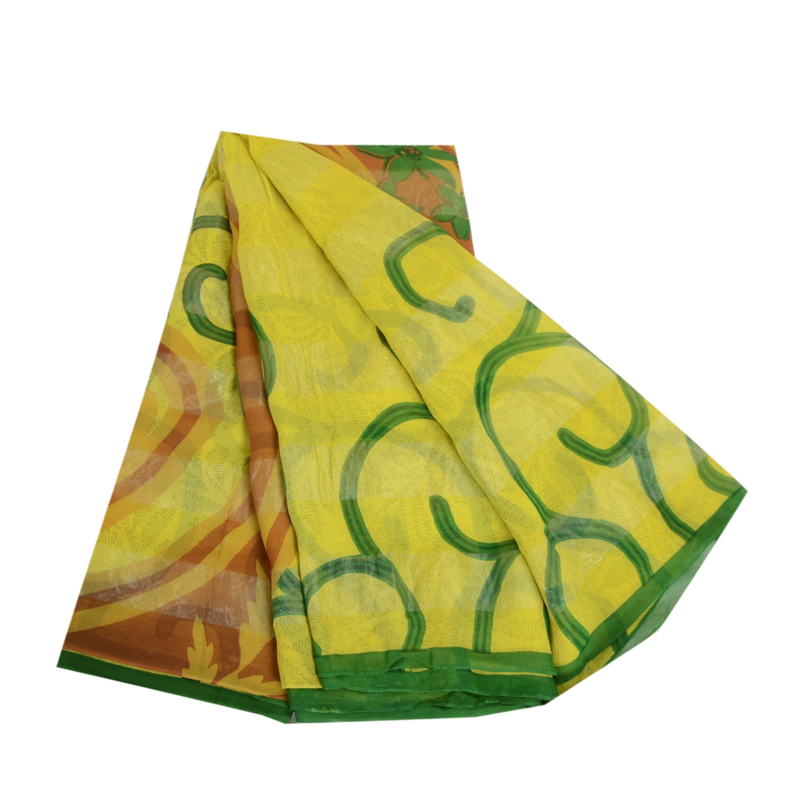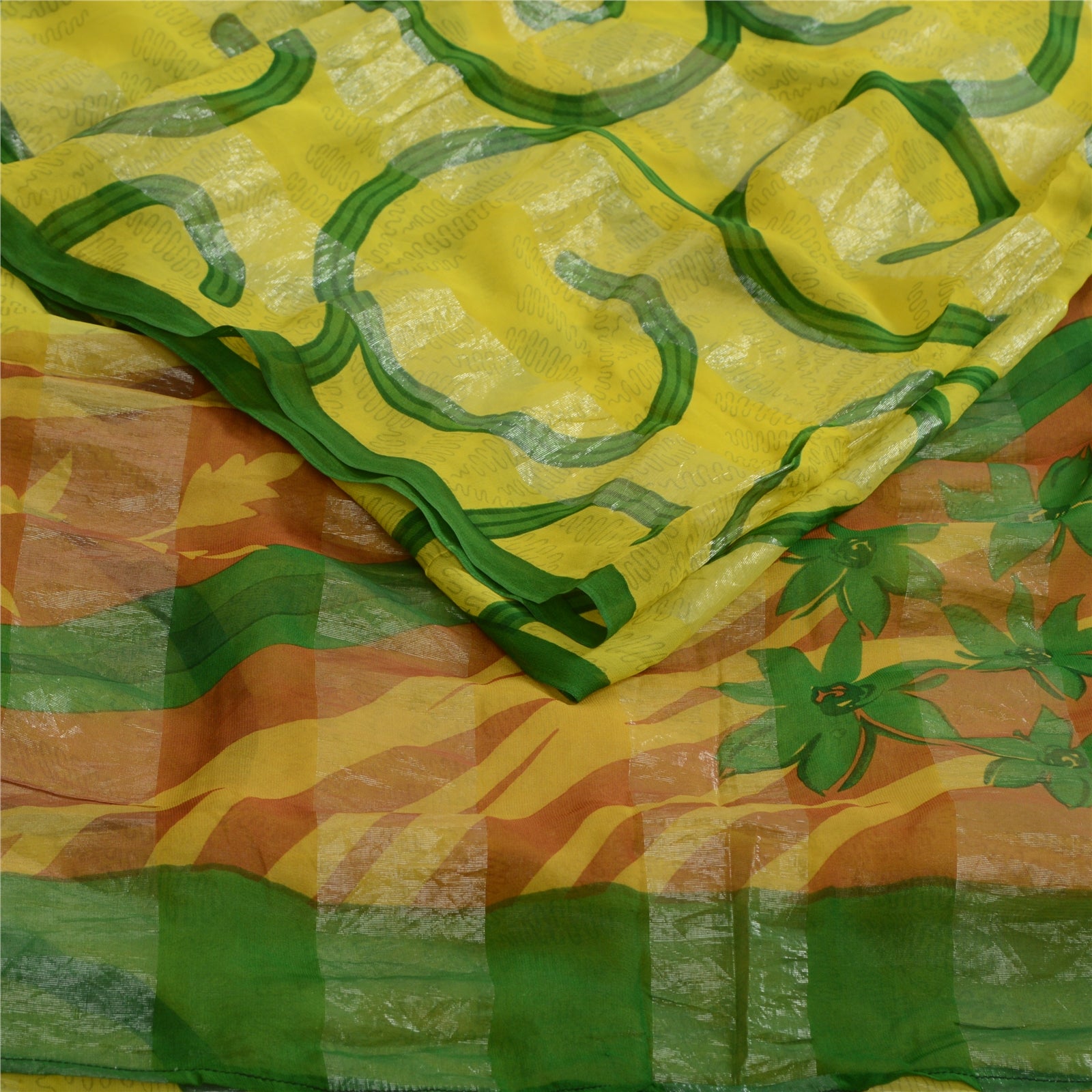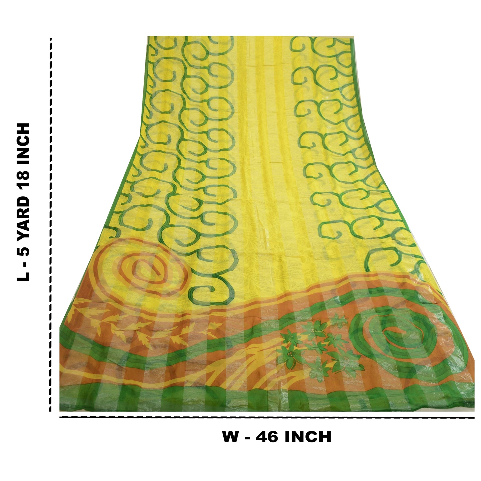 Sanskriti Vintage Green Sarees Pure Georgette Silk Printed Sari Craft Sustainable Fabric