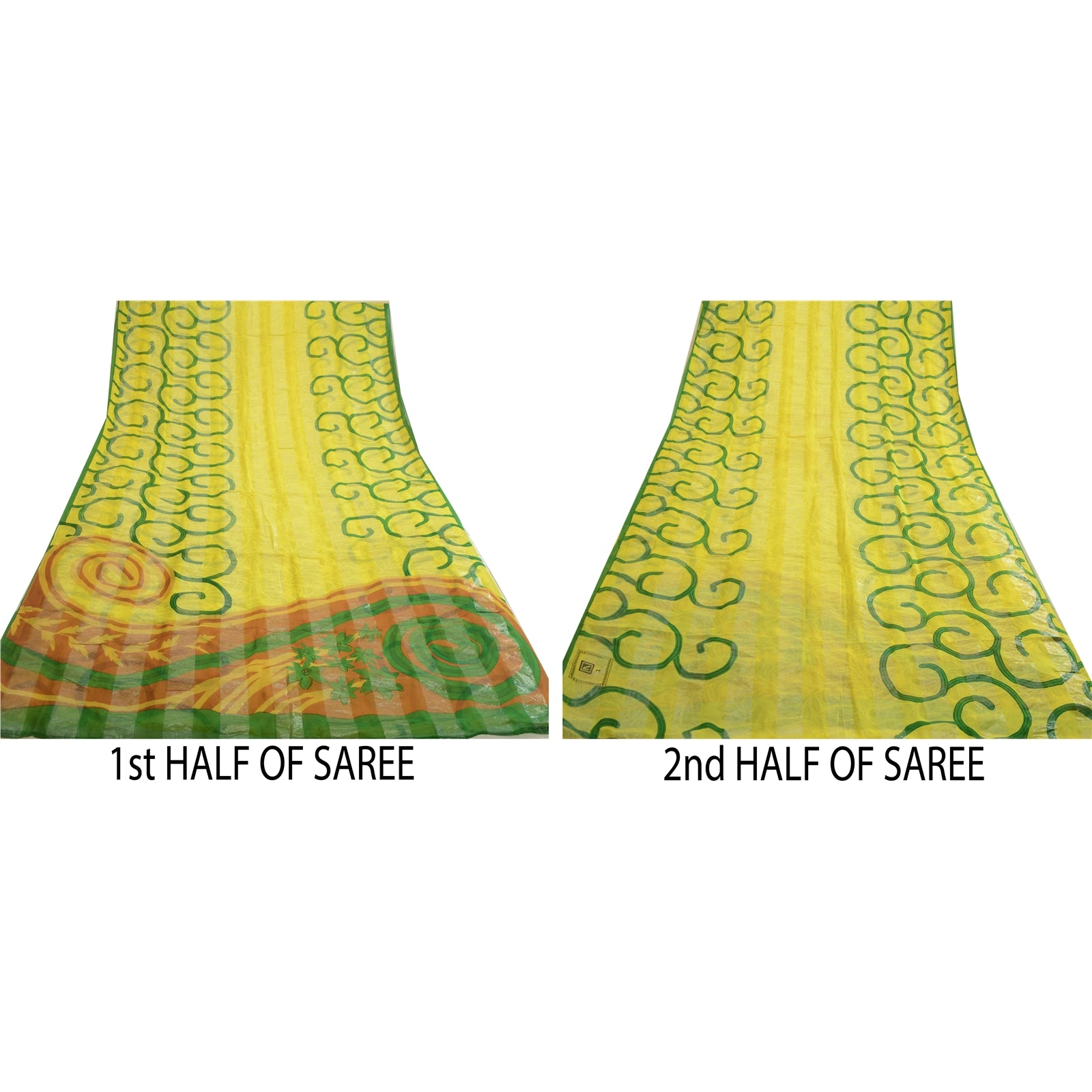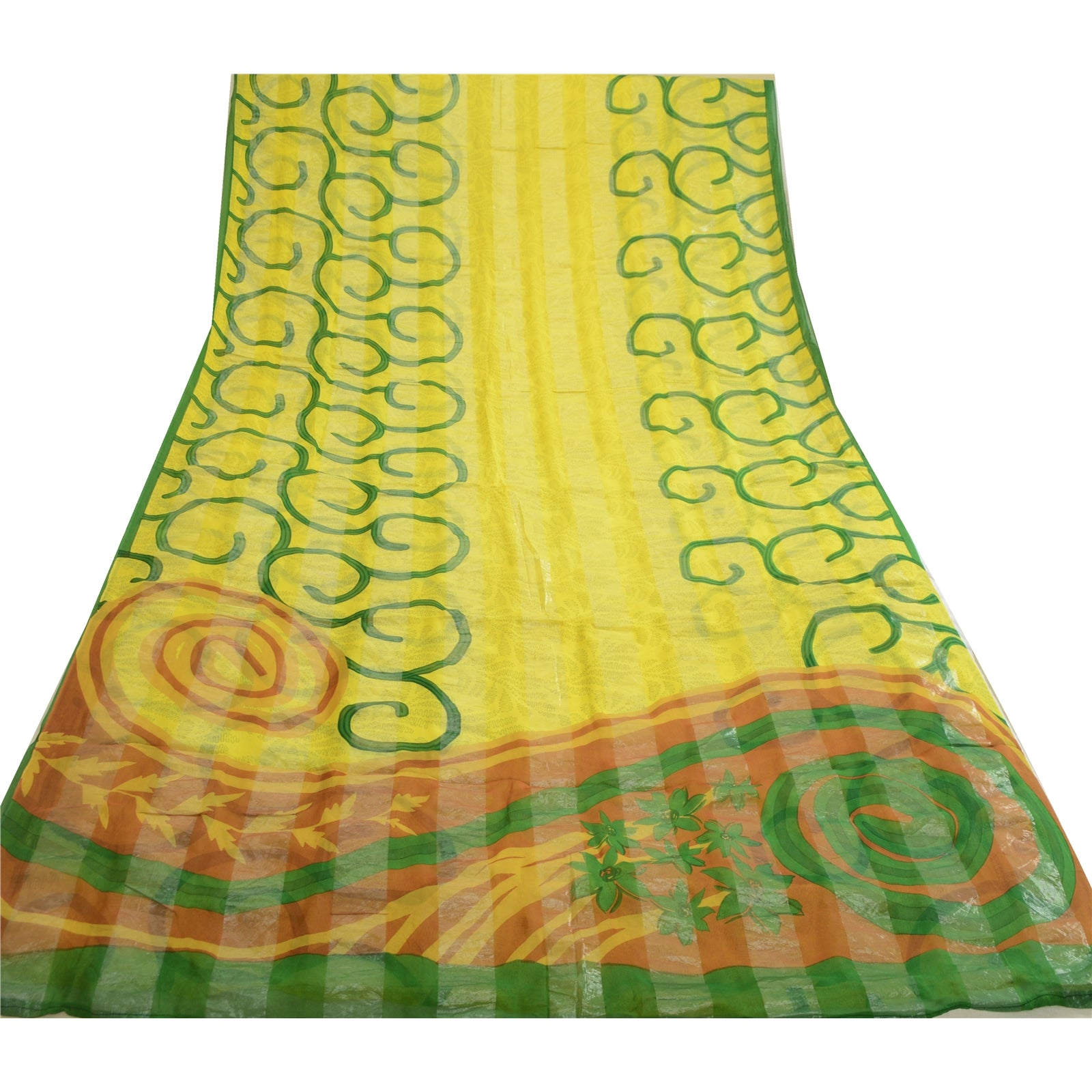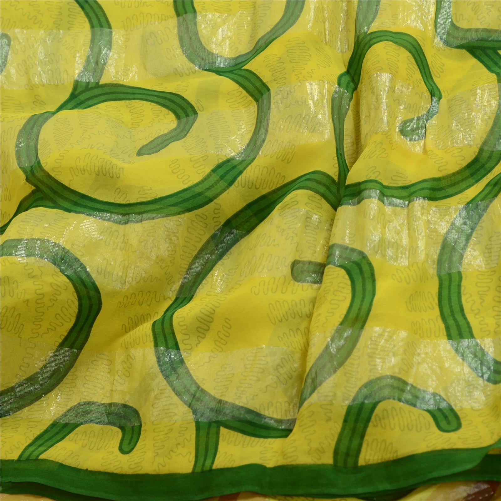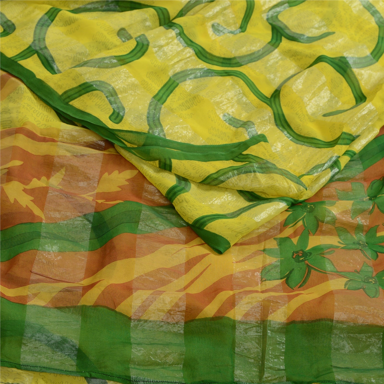 Sanskriti Vintage Green Sarees Pure Georgette Silk Printed Sari Craft Sustainable Fabric