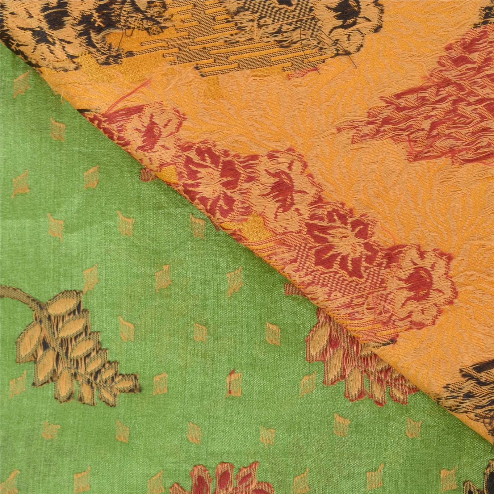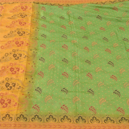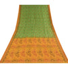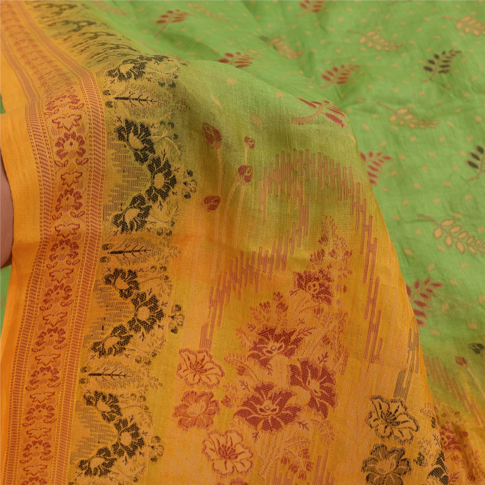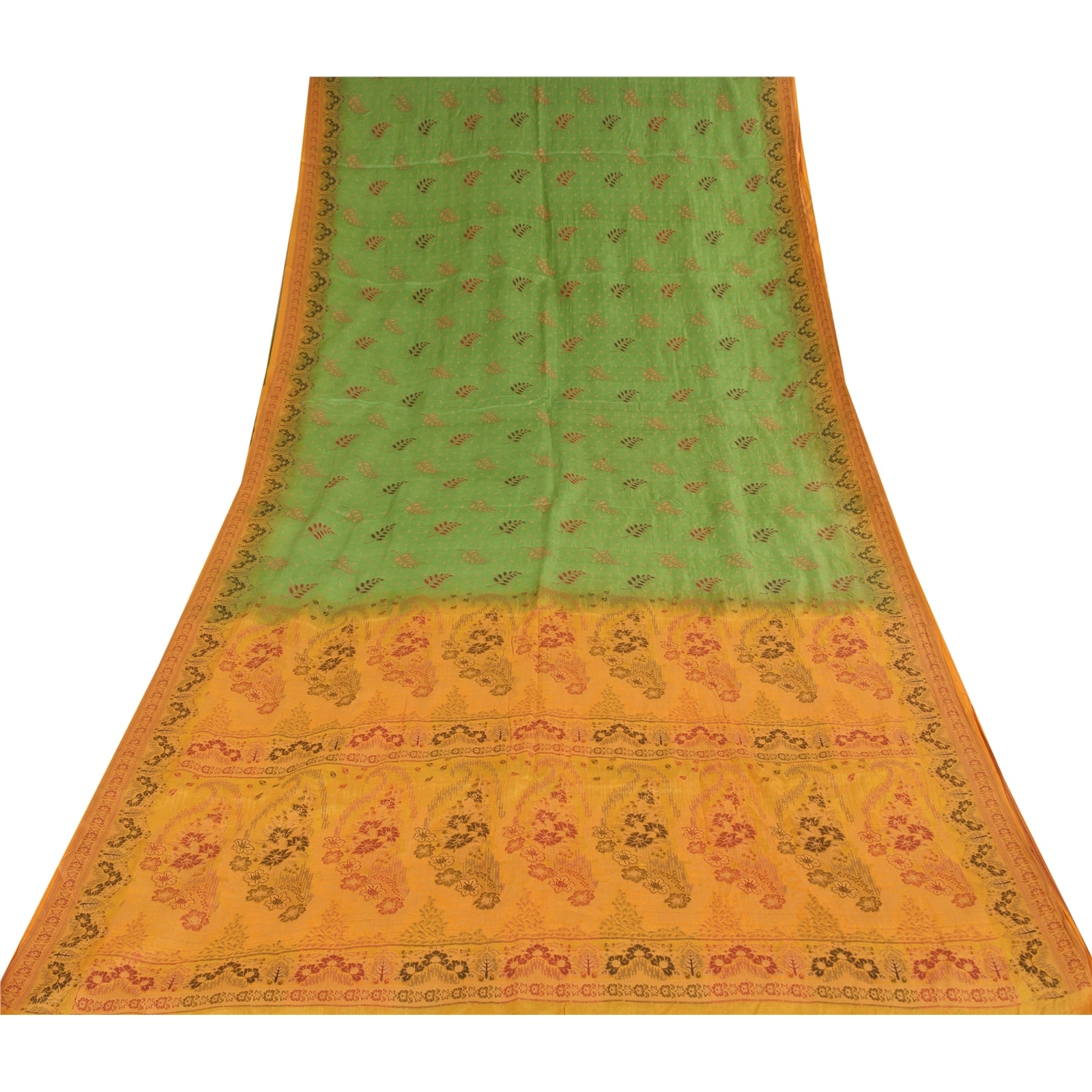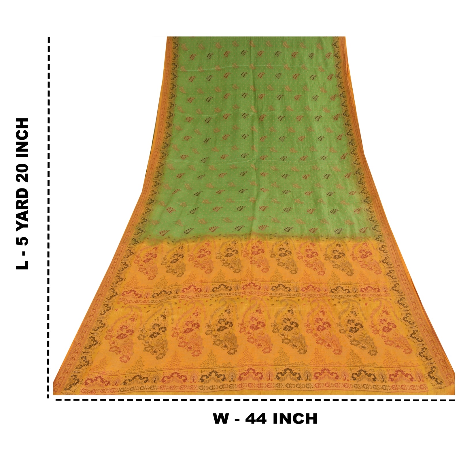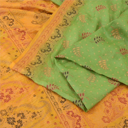 Sanskriti Vintage Green/Yellow Sarees Pure Silk Hand Woven Sari 5yd Craft Sustainable Fabric