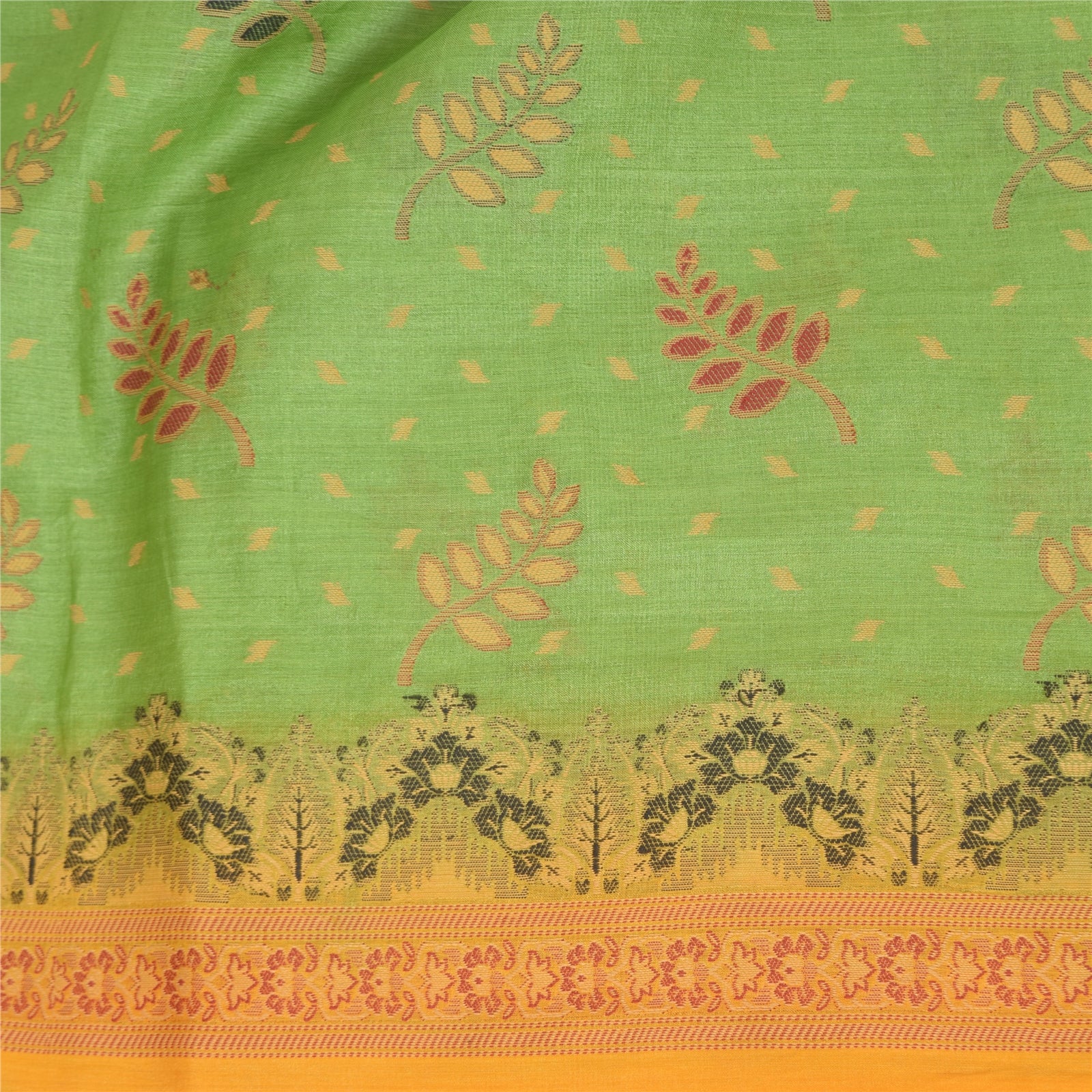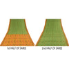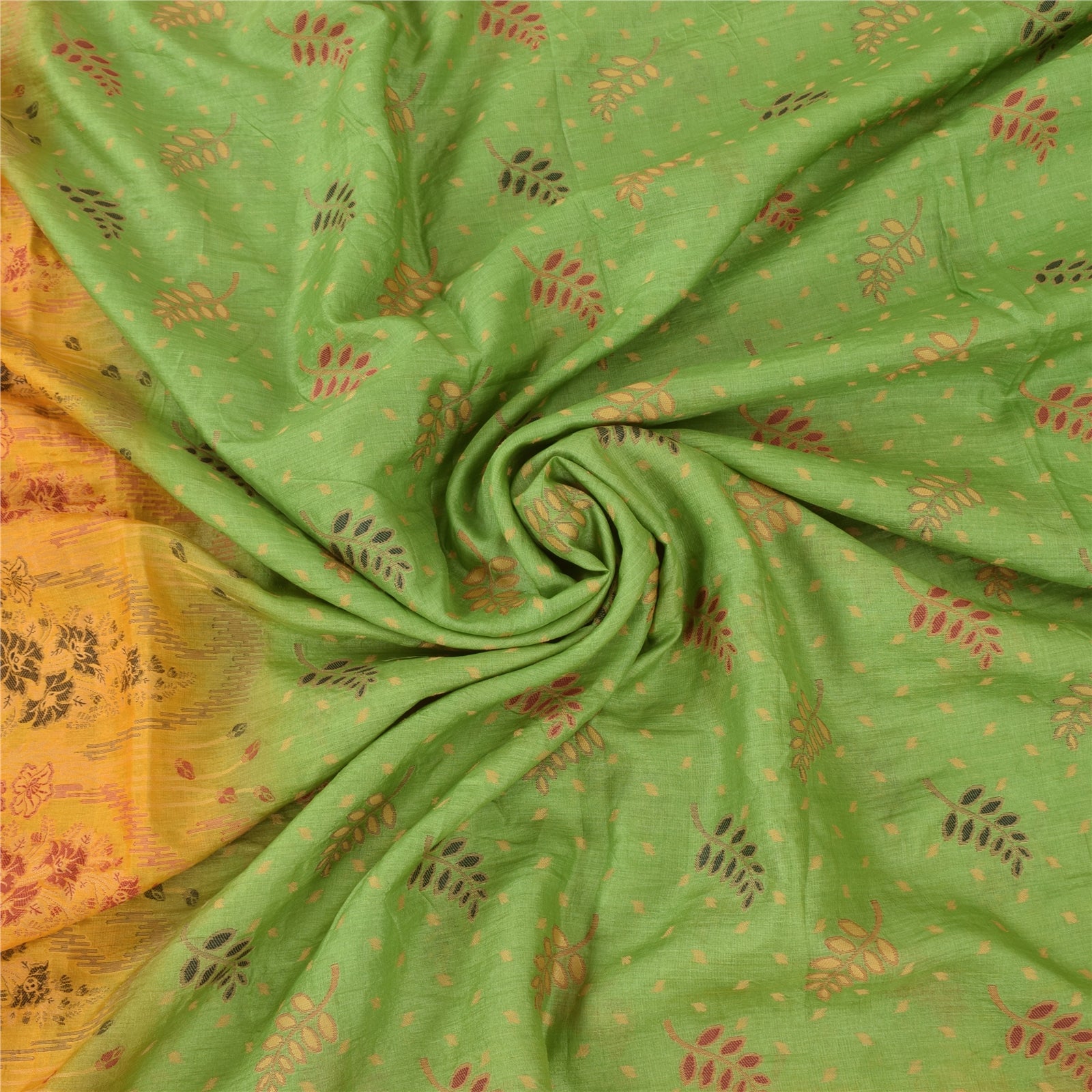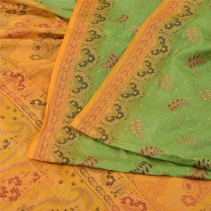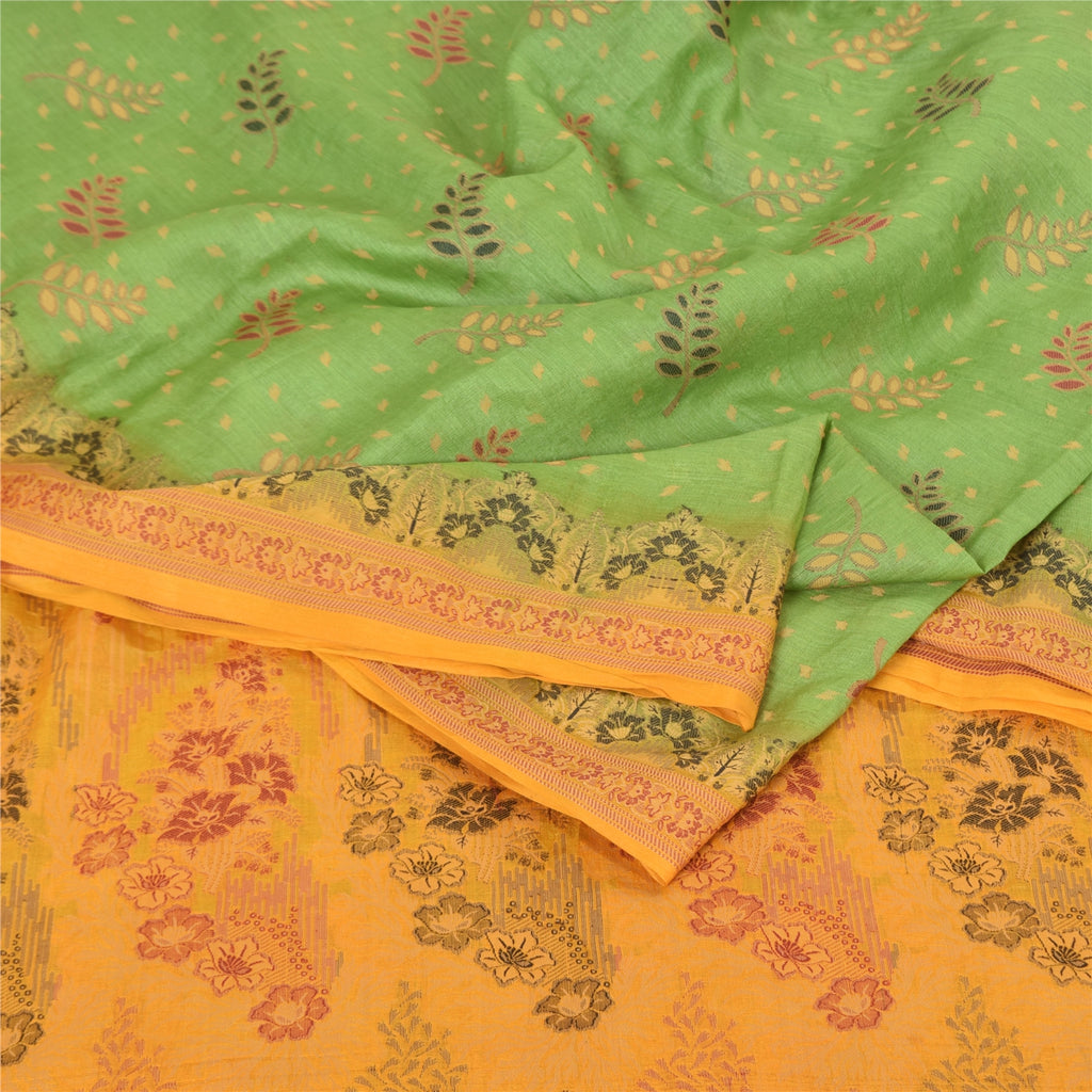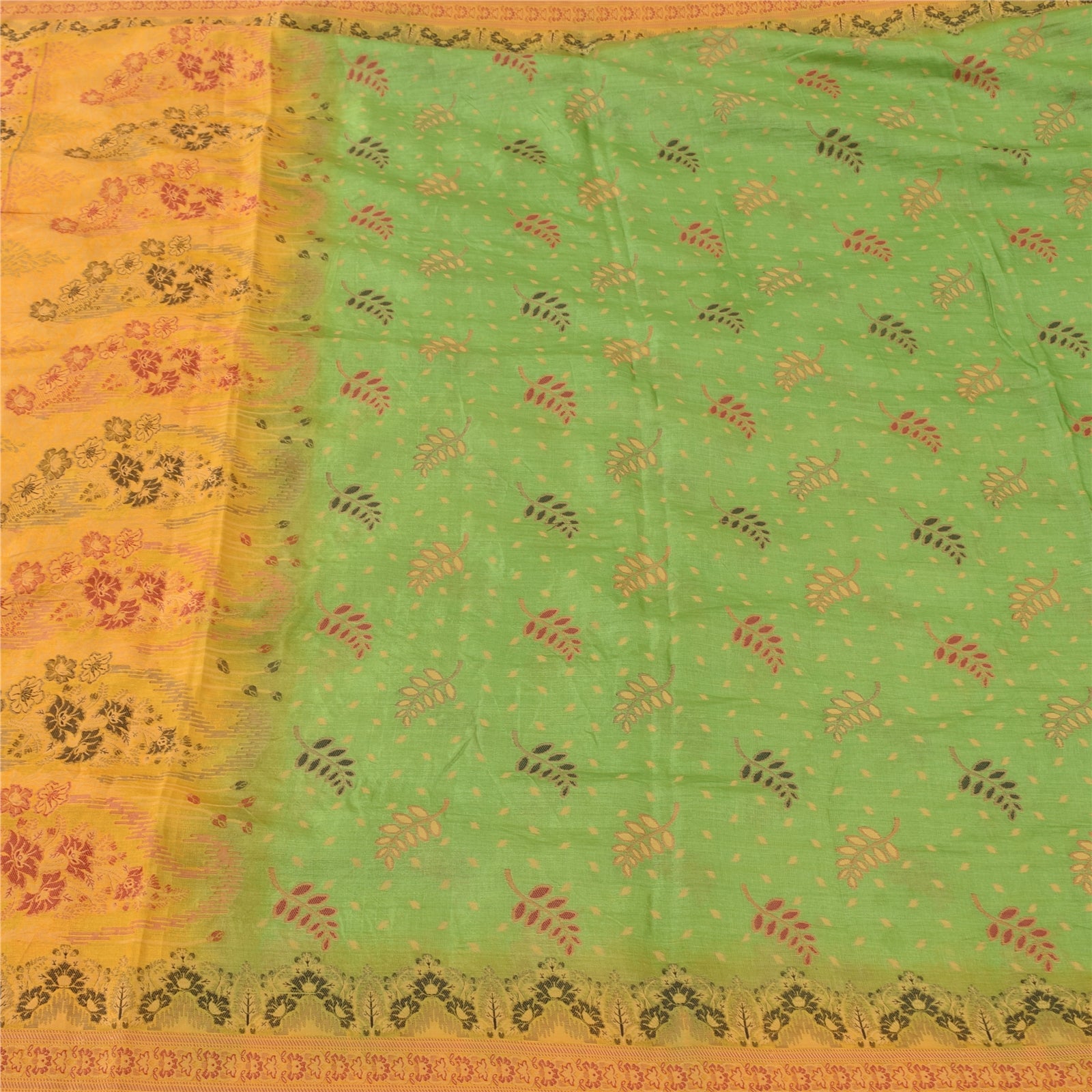 Sanskriti Vintage Green/Yellow Sarees Pure Silk Hand Woven Sari 5yd Craft Sustainable Fabric