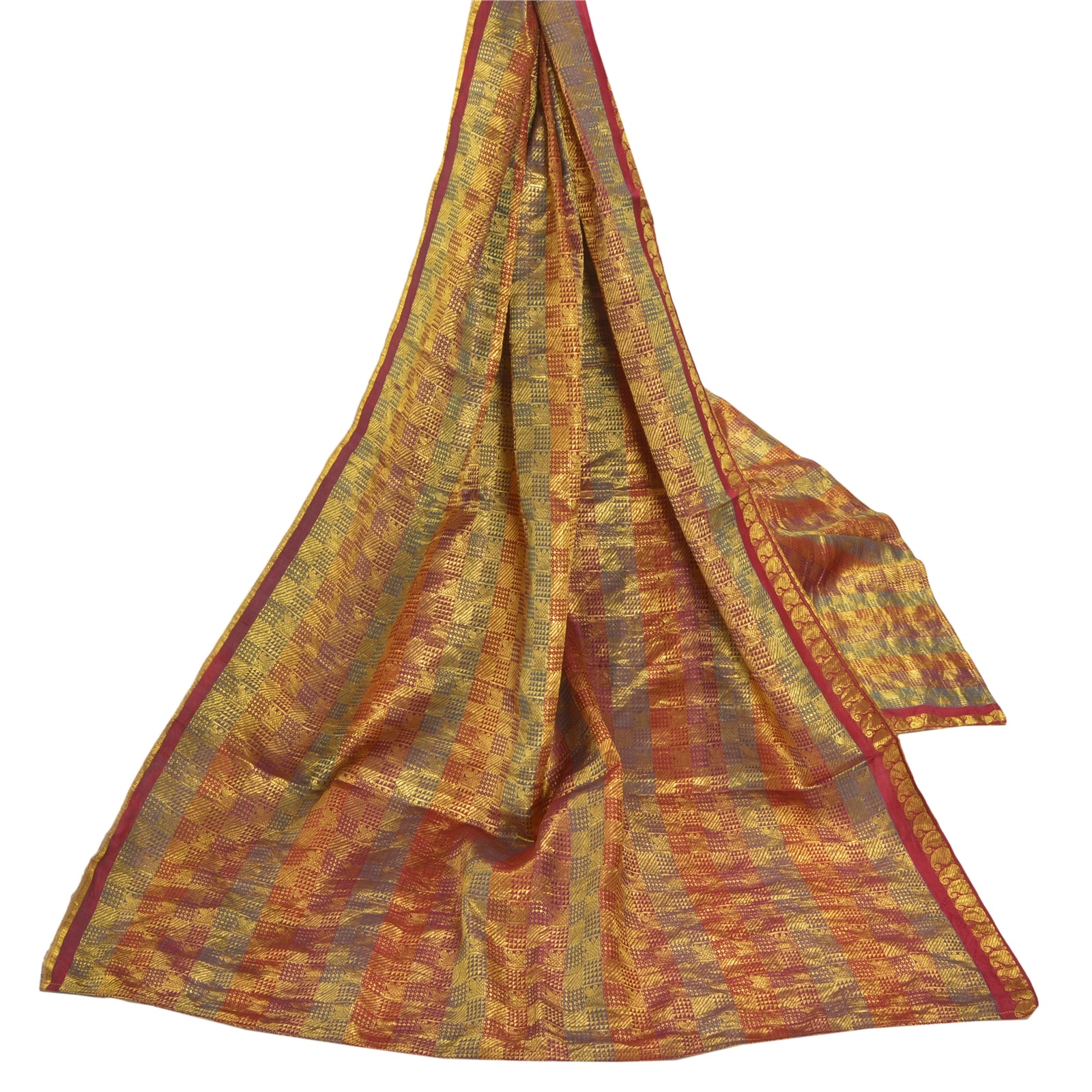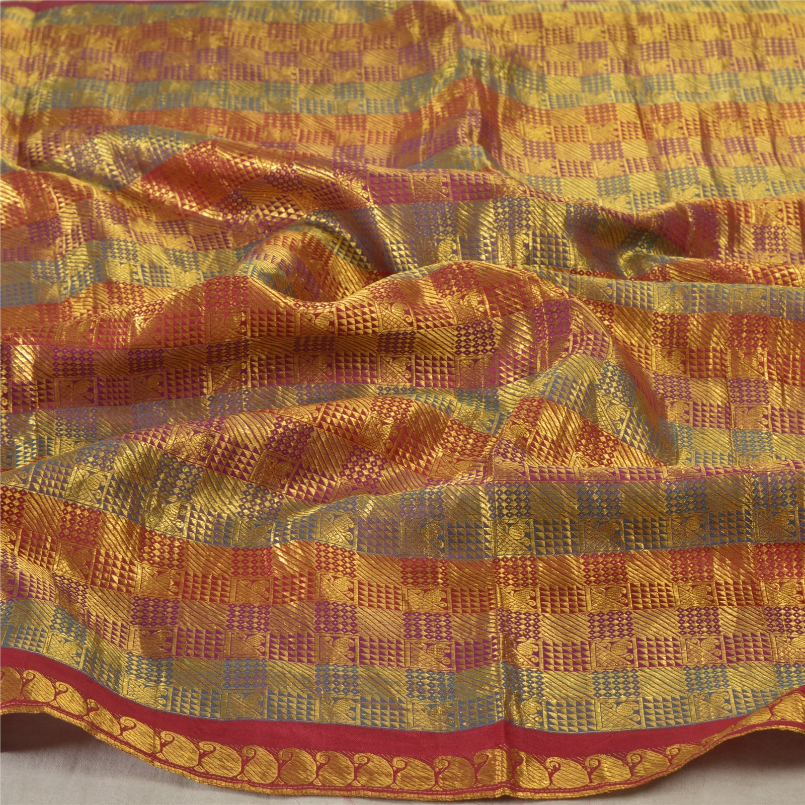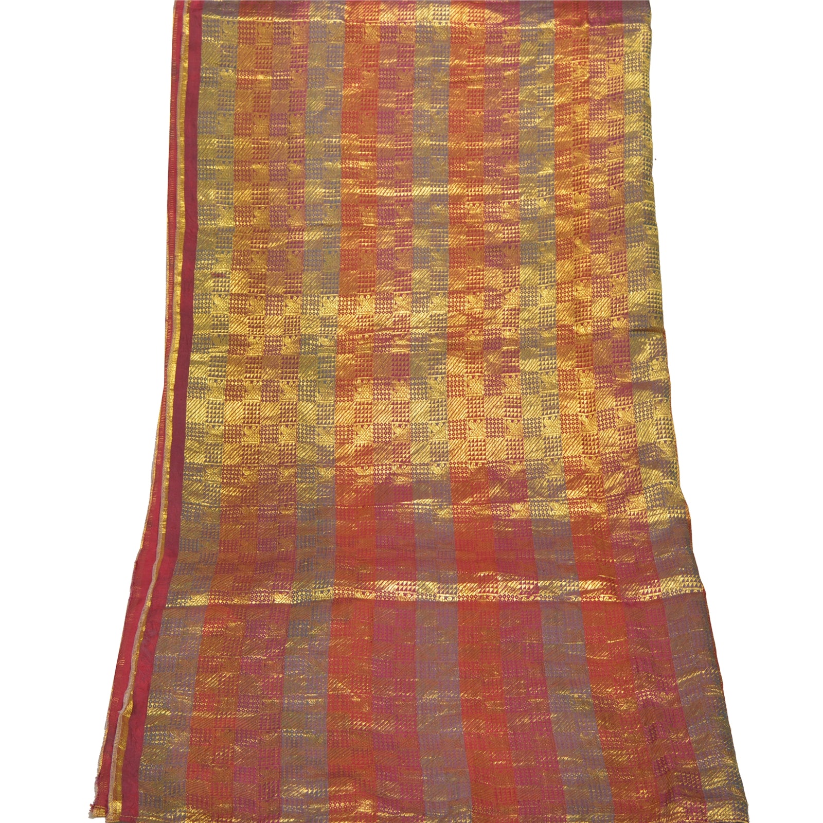 Sanskriti Vintage Heavy Dupatta 100% Pure Silk Woven Brocade Zari Work Stole