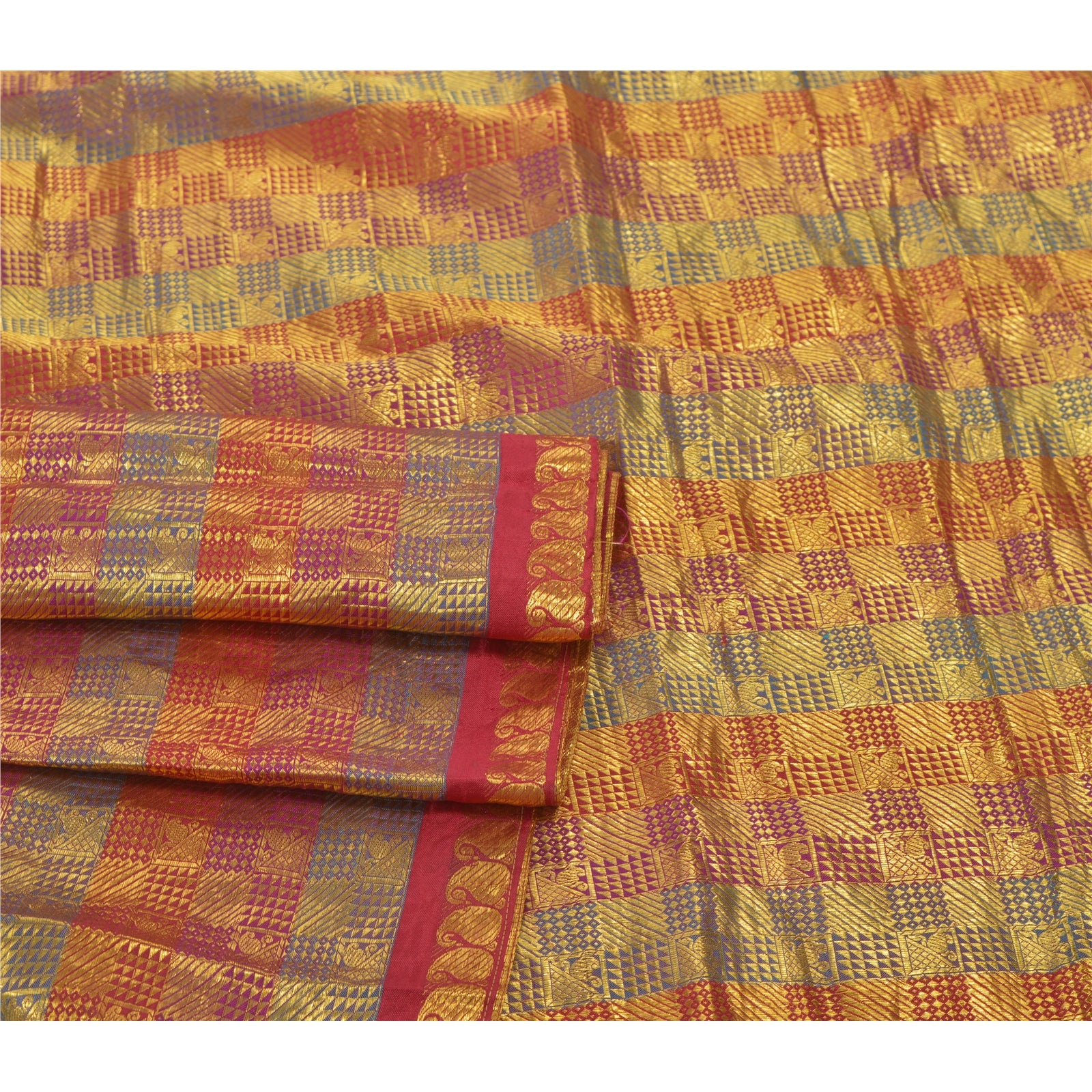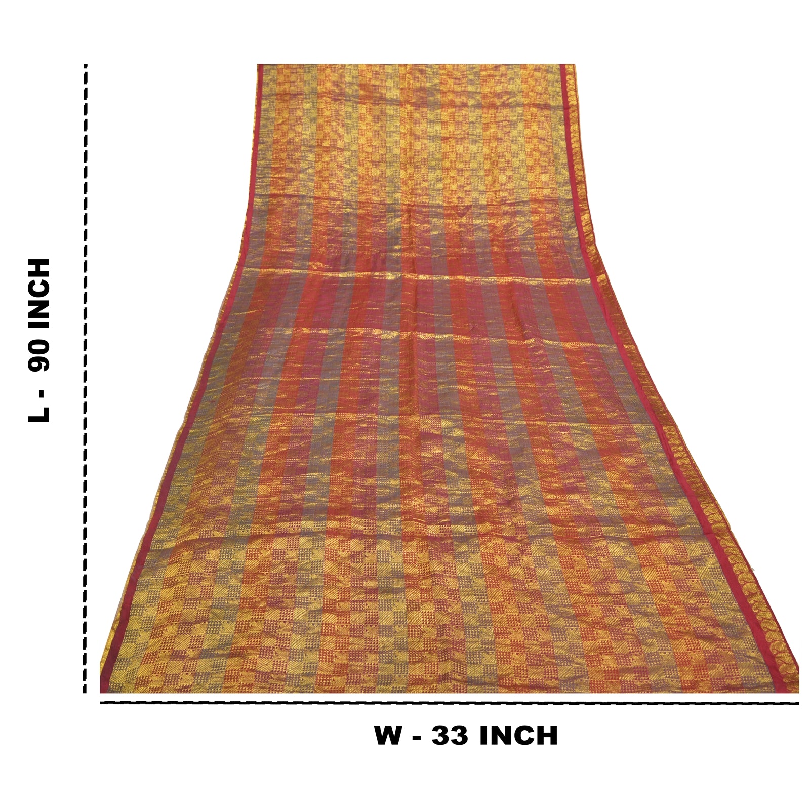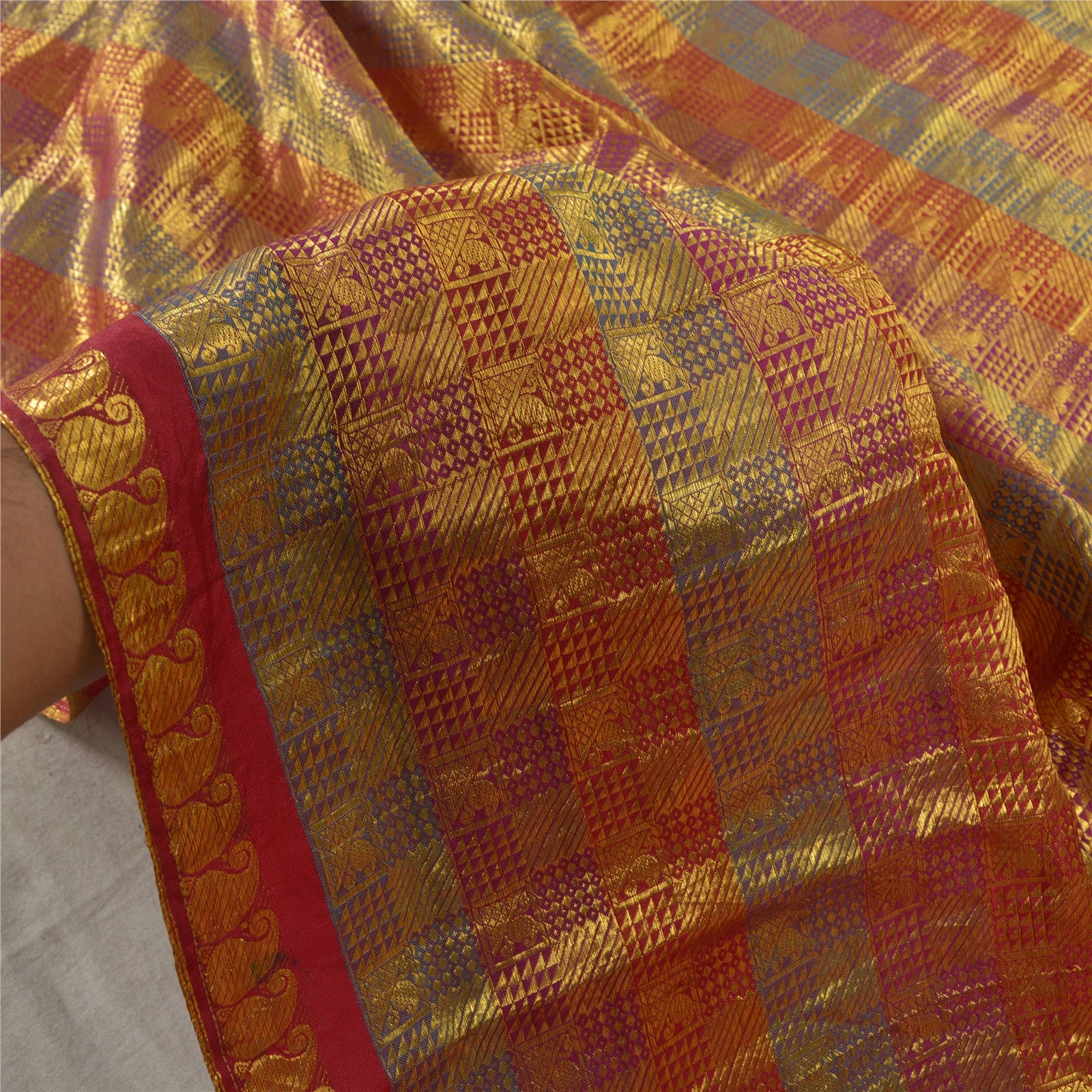 Sanskriti Vintage Heavy Dupatta 100% Pure Silk Woven Brocade Zari Work Stole