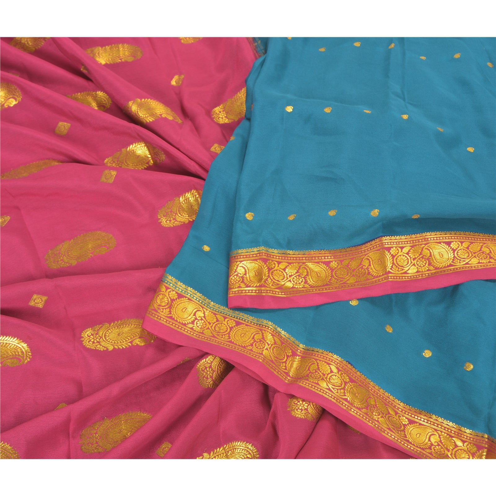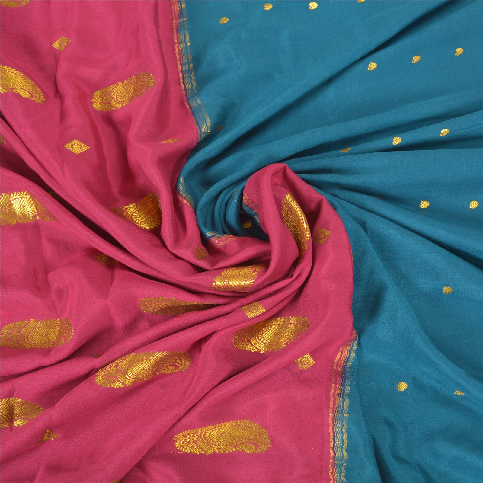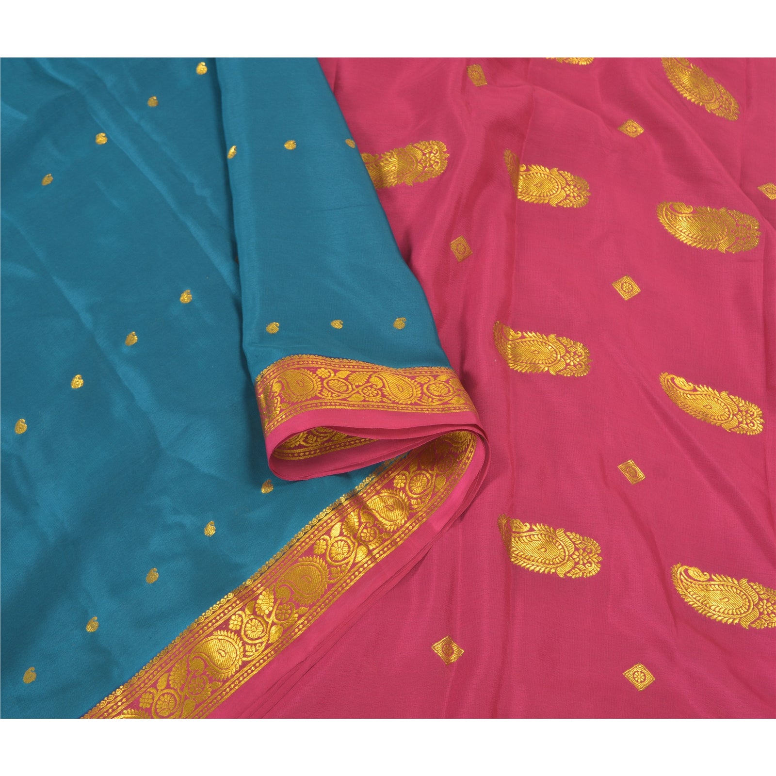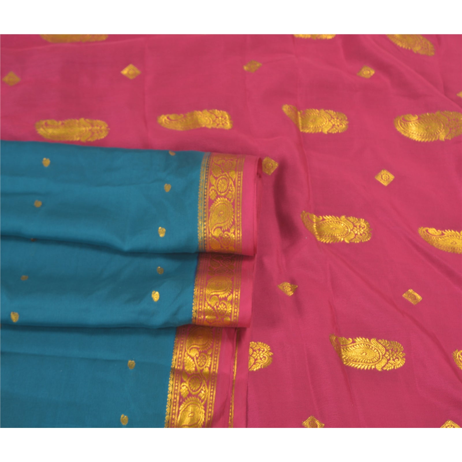 Sanskriti Offers This Vintage Green & Pink Color Woven Brocade/Banarasi Heavy Saree Which Is Crafted With 100% Pure Silk Base Sustainable Fabric. The pallu & border sari features floral & paisley design embellished with metallic golden color zari work. You can see similar zari work with floral design in center part of the sari.. This heavy saree can be used for various crafting ideas too. Use it for dress designing, as a throw, as window dressing, upholstery, table linen and much more. Let your creative juices flow!