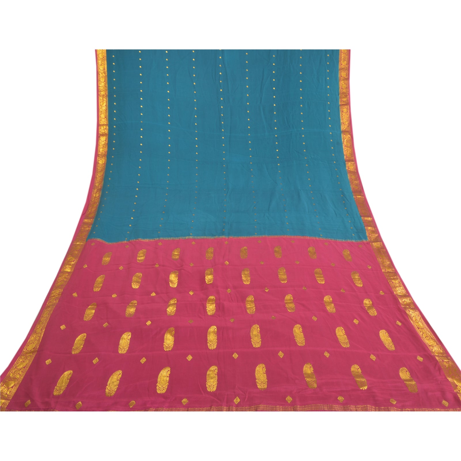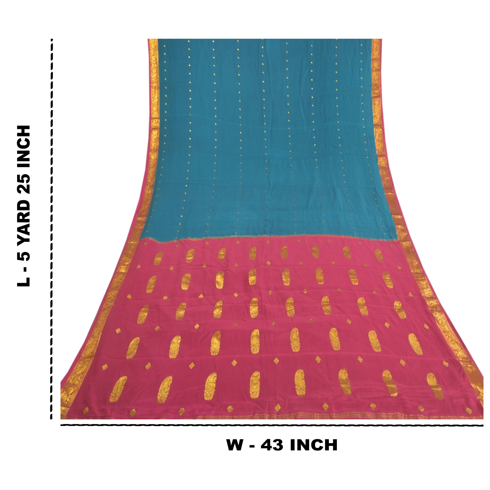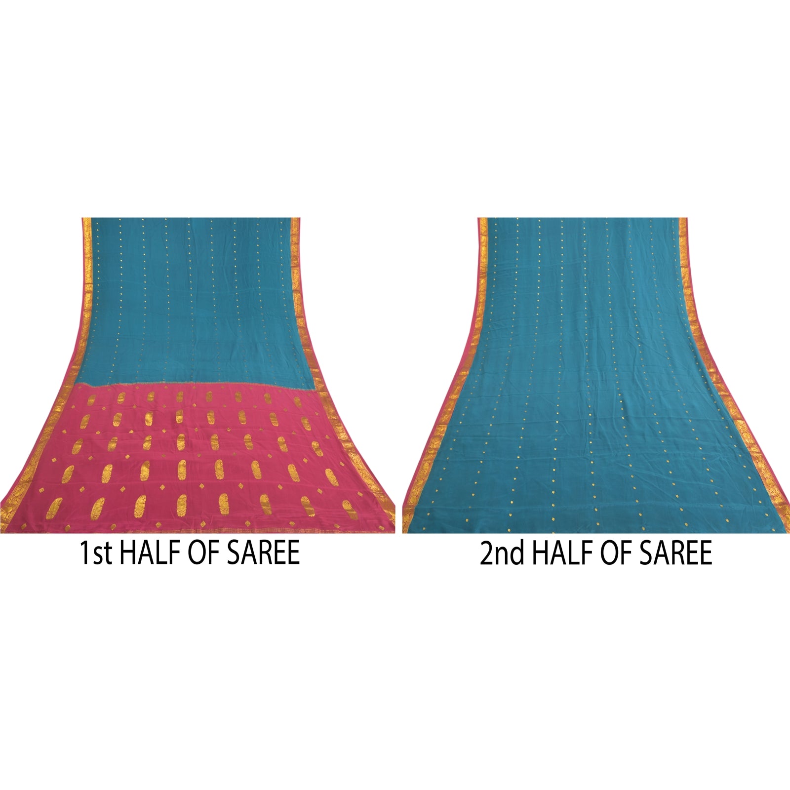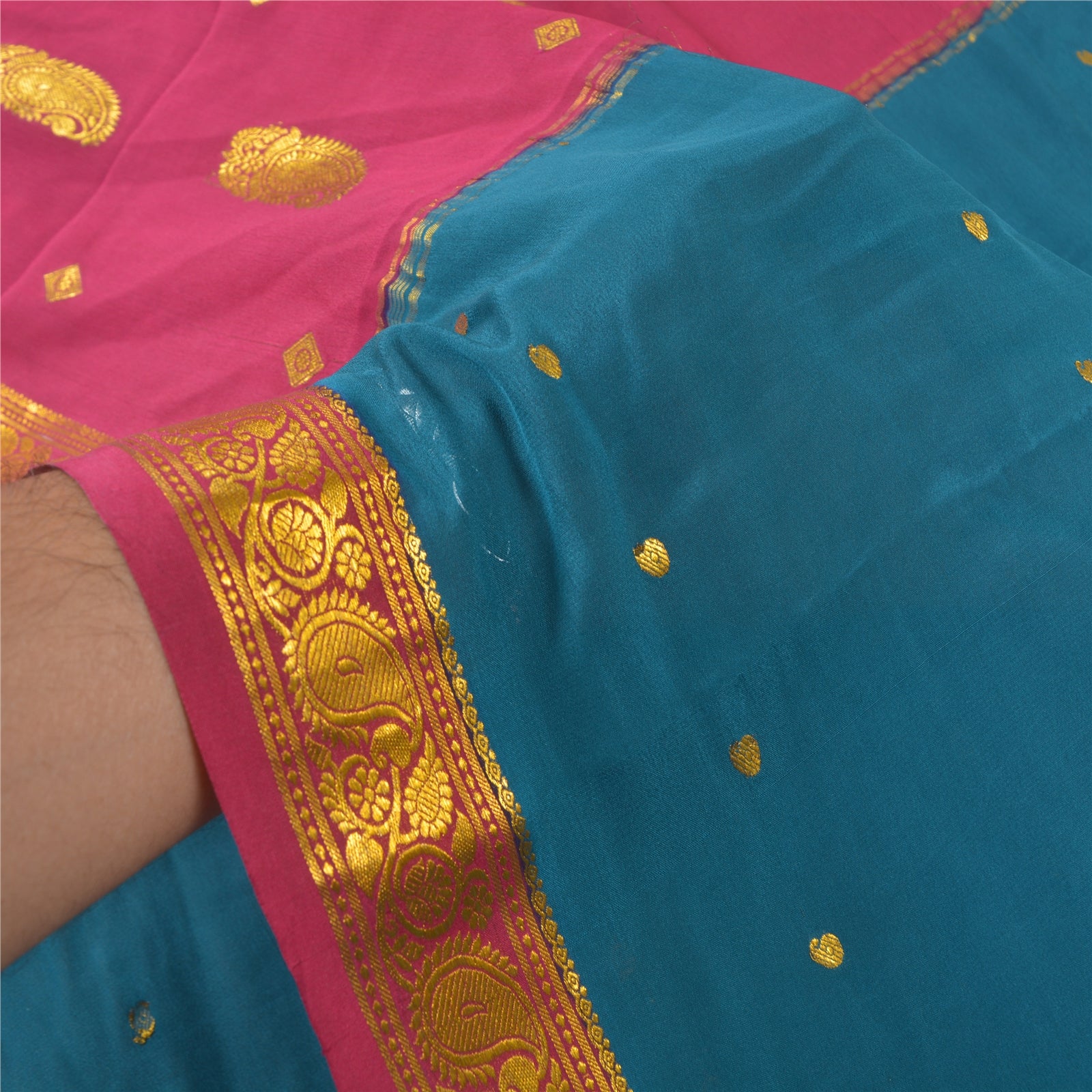 Sanskriti Offers This Vintage Green & Pink Color Woven Brocade/Banarasi Heavy Saree Which Is Crafted With 100% Pure Silk Base Sustainable Fabric. The pallu & border sari features floral & paisley design embellished with metallic golden color zari work. You can see similar zari work with floral design in center part of the sari.. This heavy saree can be used for various crafting ideas too. Use it for dress designing, as a throw, as window dressing, upholstery, table linen and much more. Let your creative juices flow!