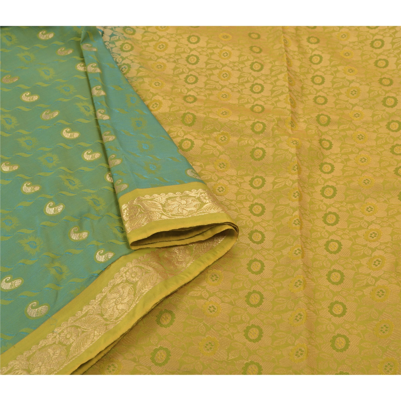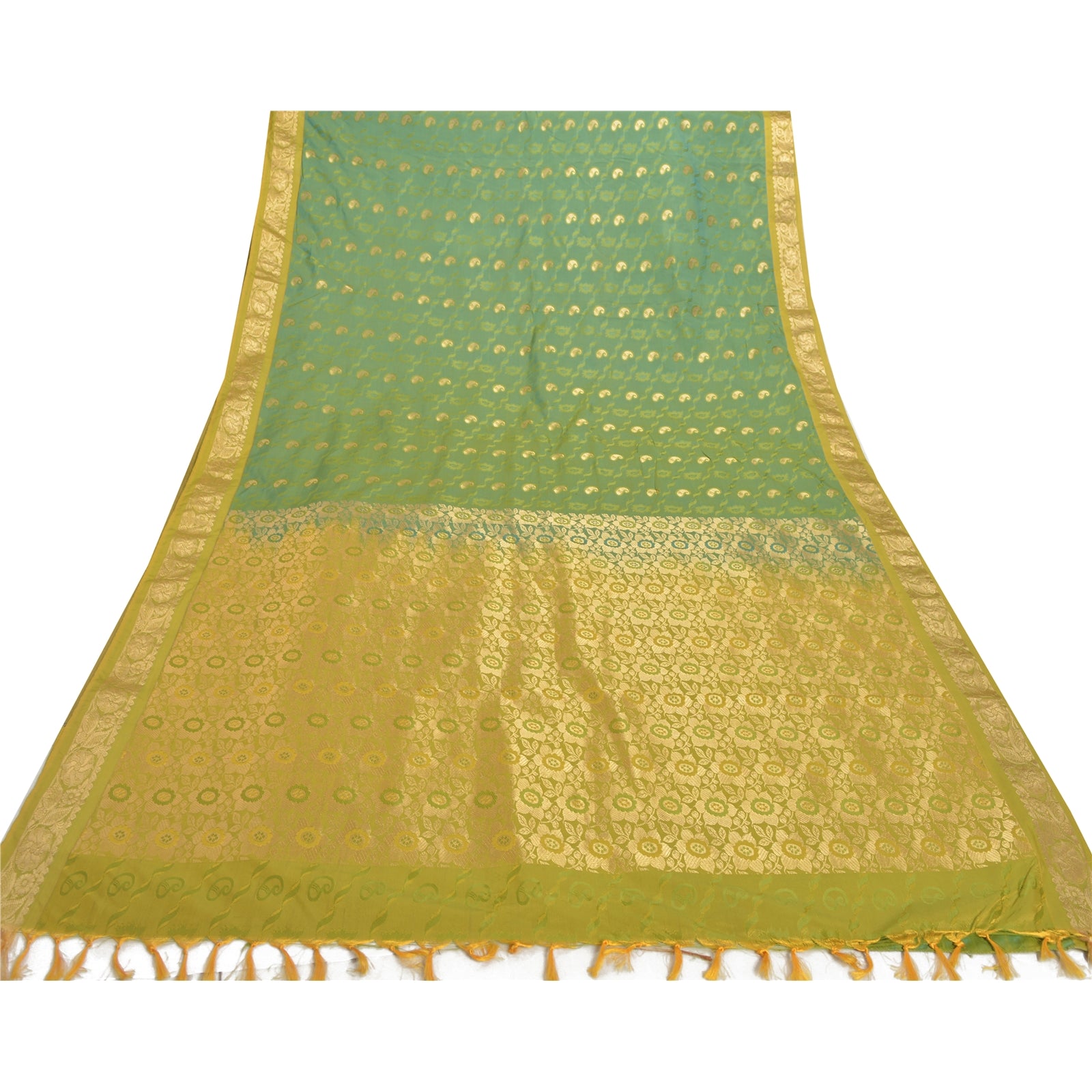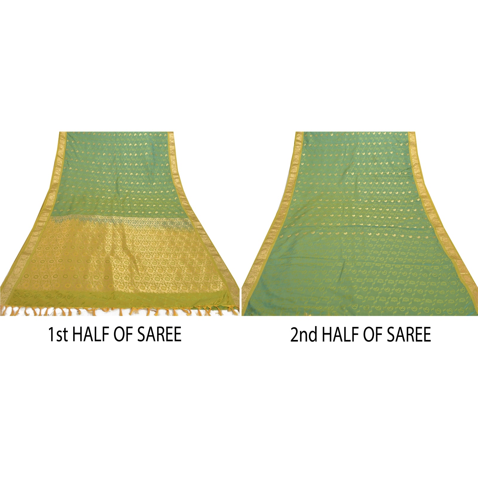 Sanskriti Vintage Heavy Wedding Sari Art Silk Green Woven Brocade Sarees Sustainable Fabric