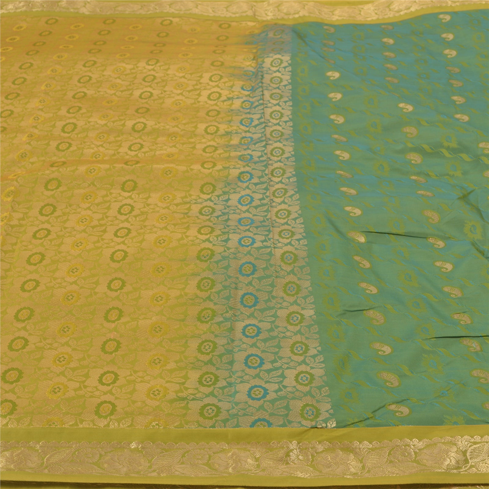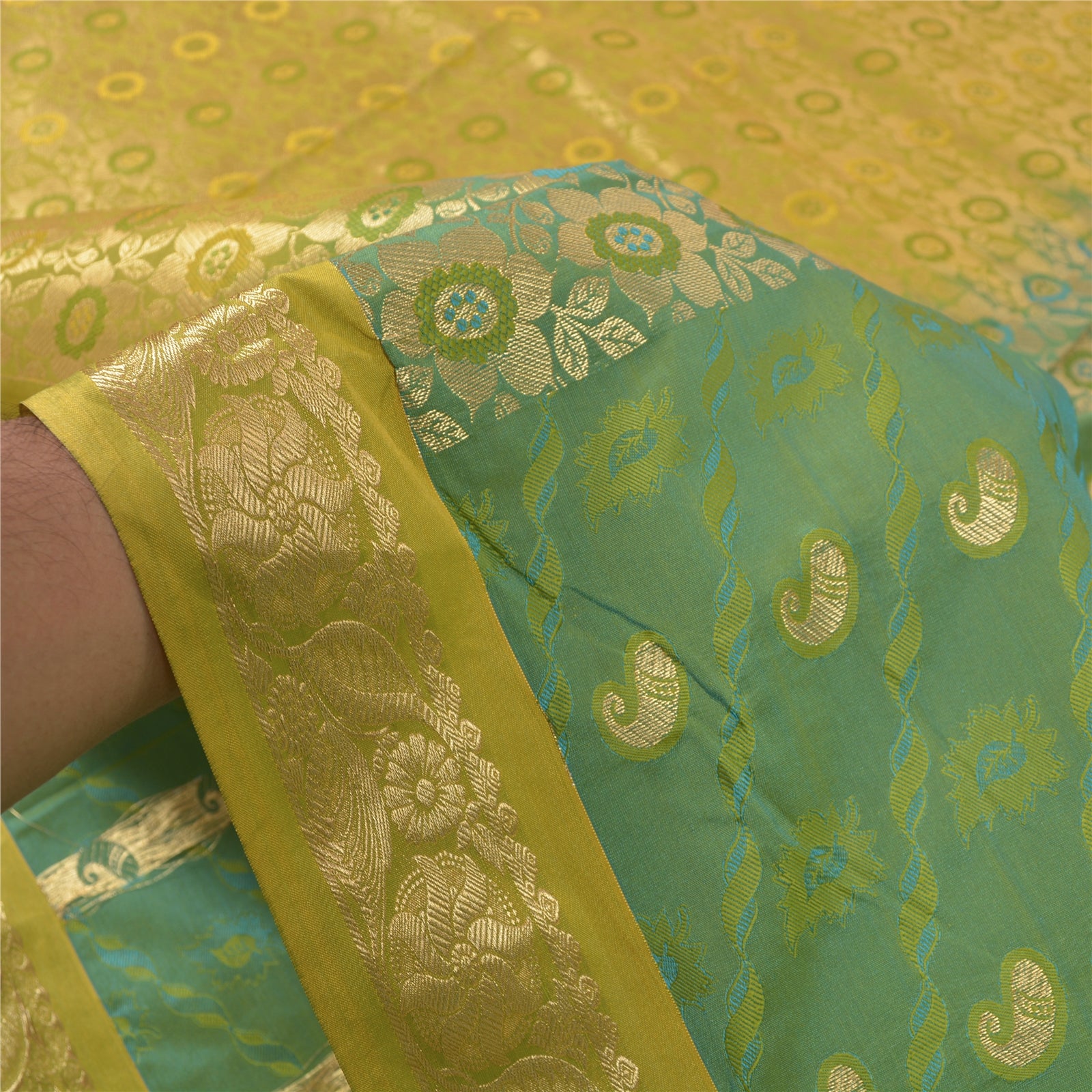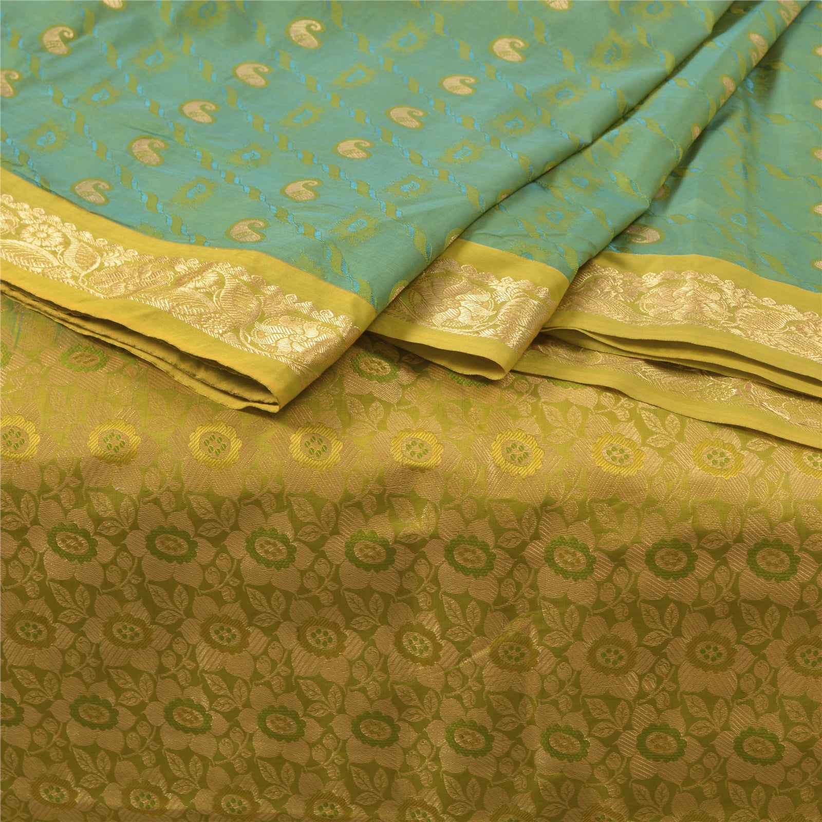 Sanskriti Vintage Heavy Wedding Sari Art Silk Green Woven Brocade Sarees Sustainable Fabric