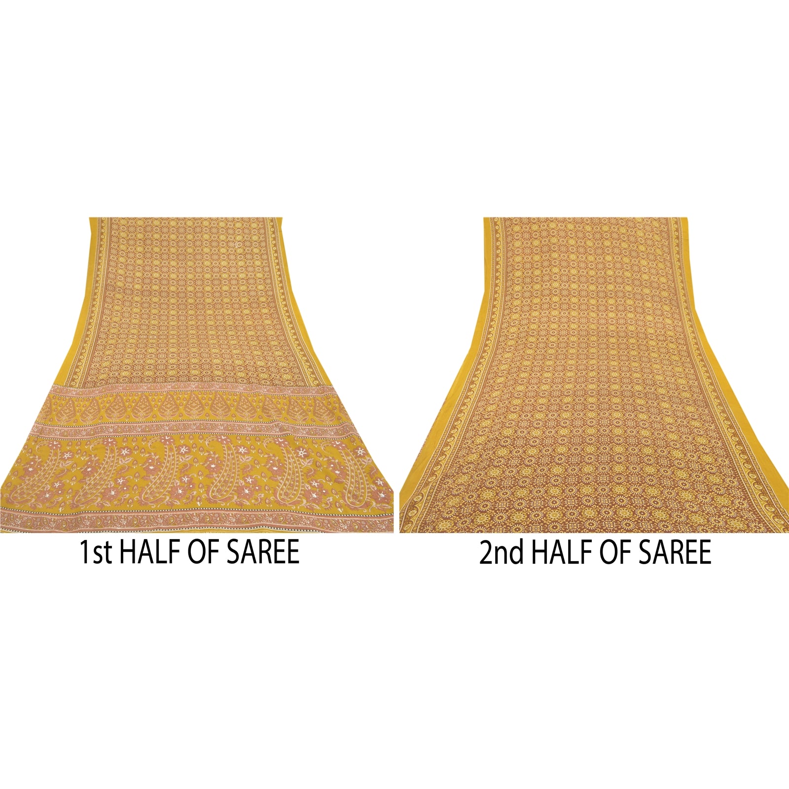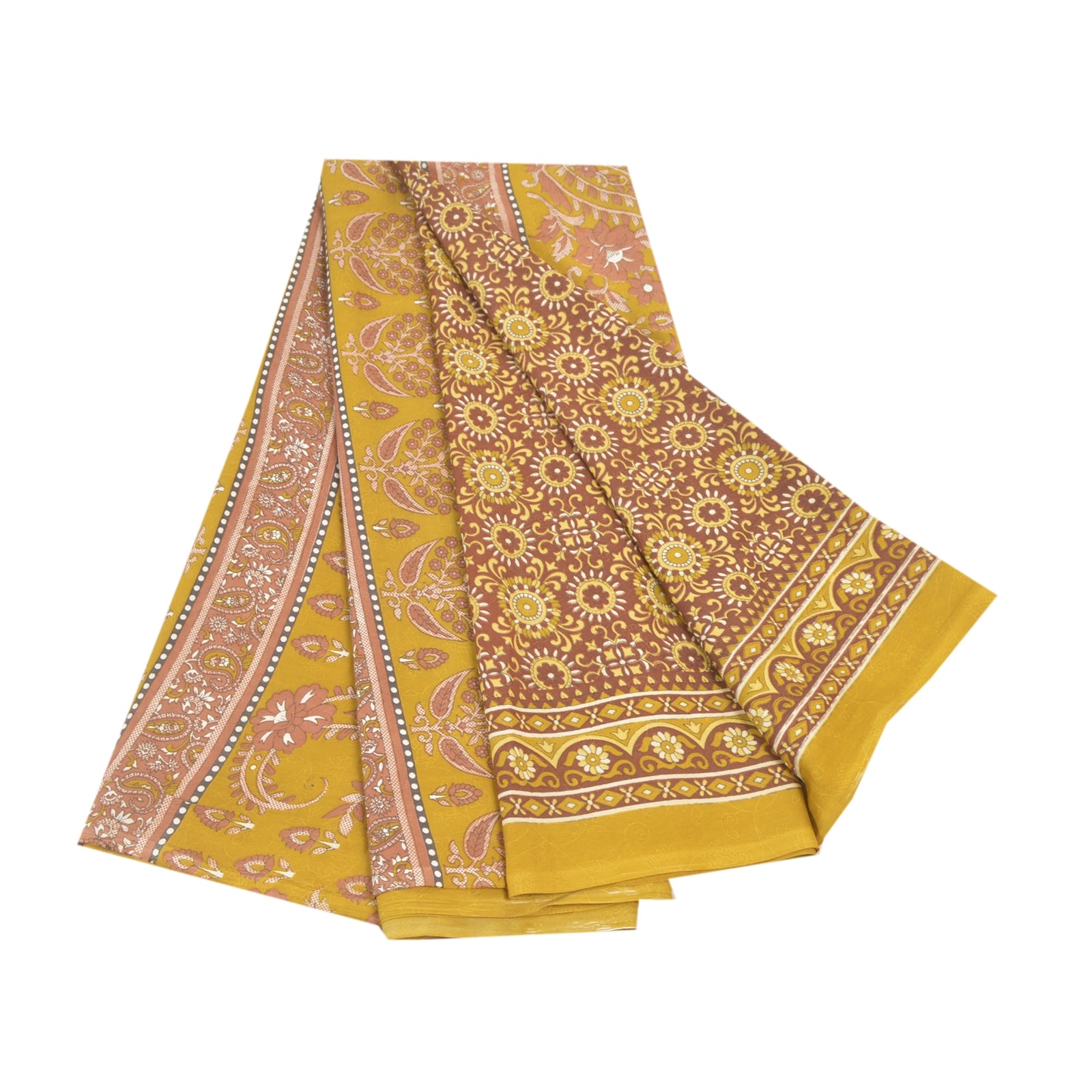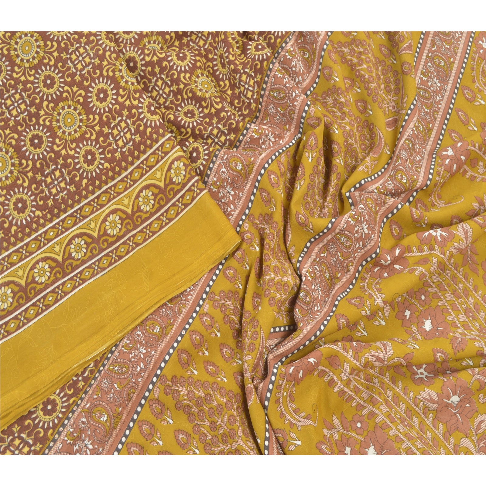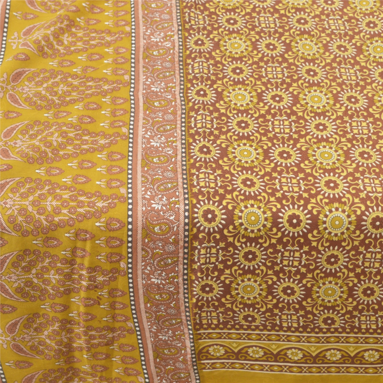 Sanskriti Vintage Indian Green Sarees Moss Crepe Printed Sari Sewing 5YD Sustainable Fabric