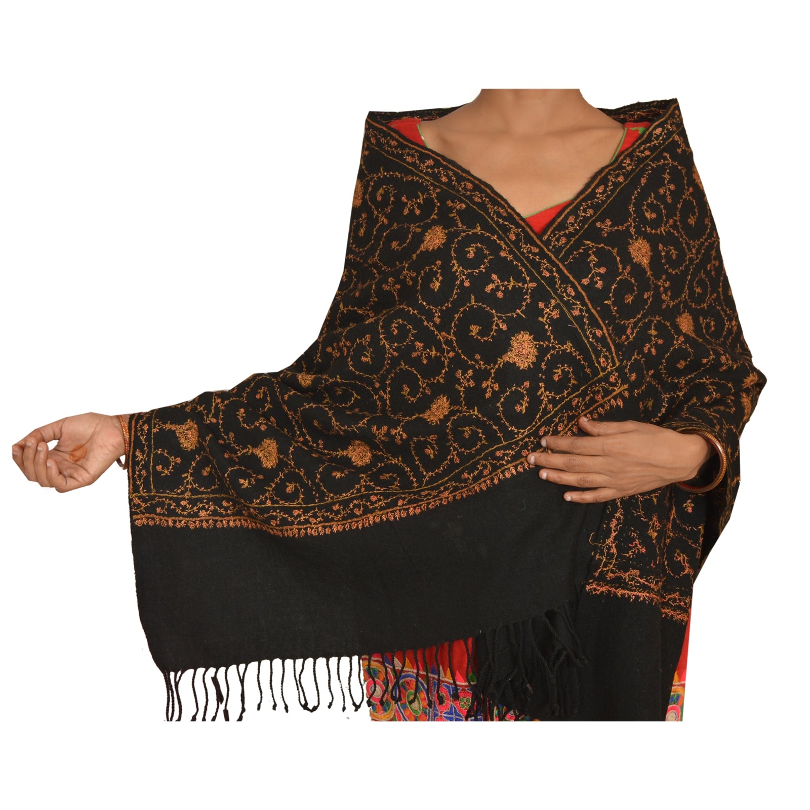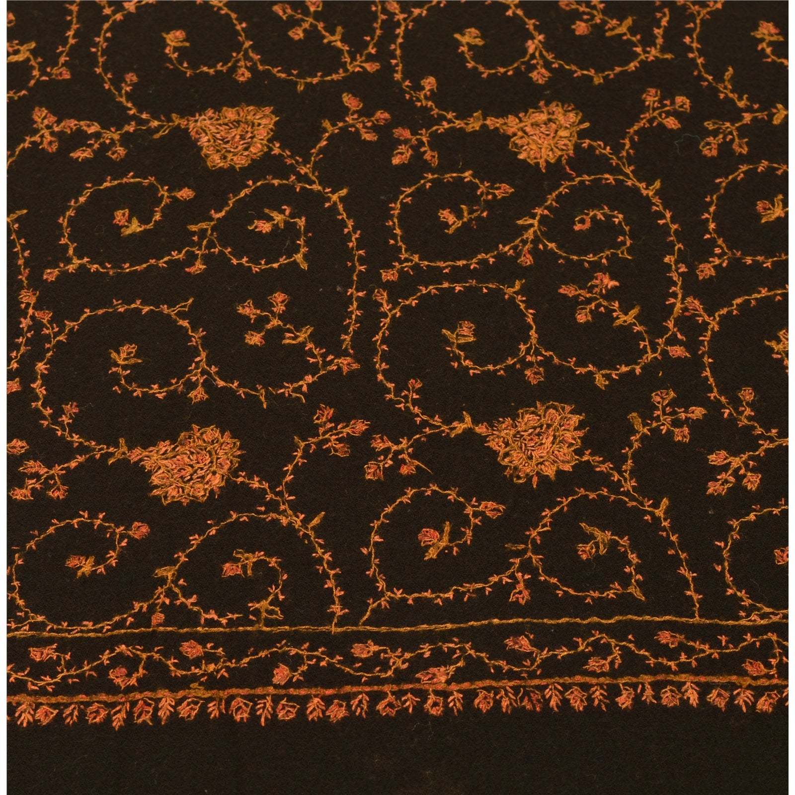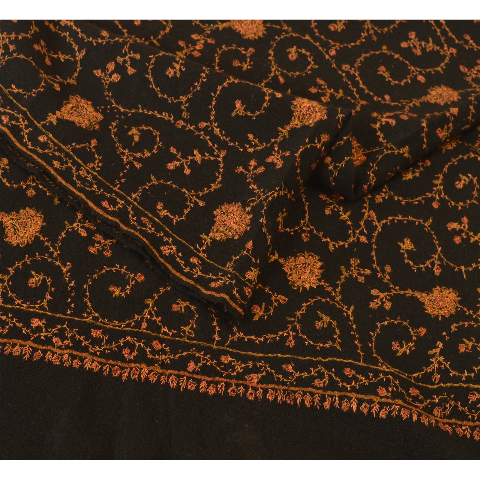 Beautiful hand embroidered sozni woolen shawl/scarf/stole. Cozy and comfortable, this shawl has a beautiful floral design in shades of peach & cream Shawl has black fringes on border. Wear this versatile piece as a scarf, stole or wrap. International buyers please note: Import duties, taxes, and charges are not included in the item price or postage cost. These charges are the buyer's responsibility. Please check with your country's customs office to determine what these additional costs will be prior to bidding or buying. Buyer will pay custom duty/tax. It is calculated and charged differently by every country. As a seller I do not have any control over it. VAT or sales tax is calculated by the platform at the time of checkout. Customs charge is payable at the time of delivery.