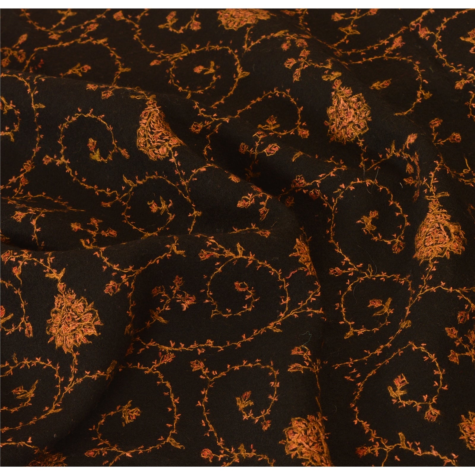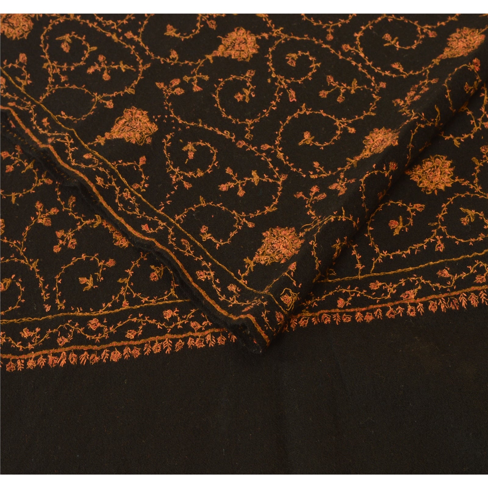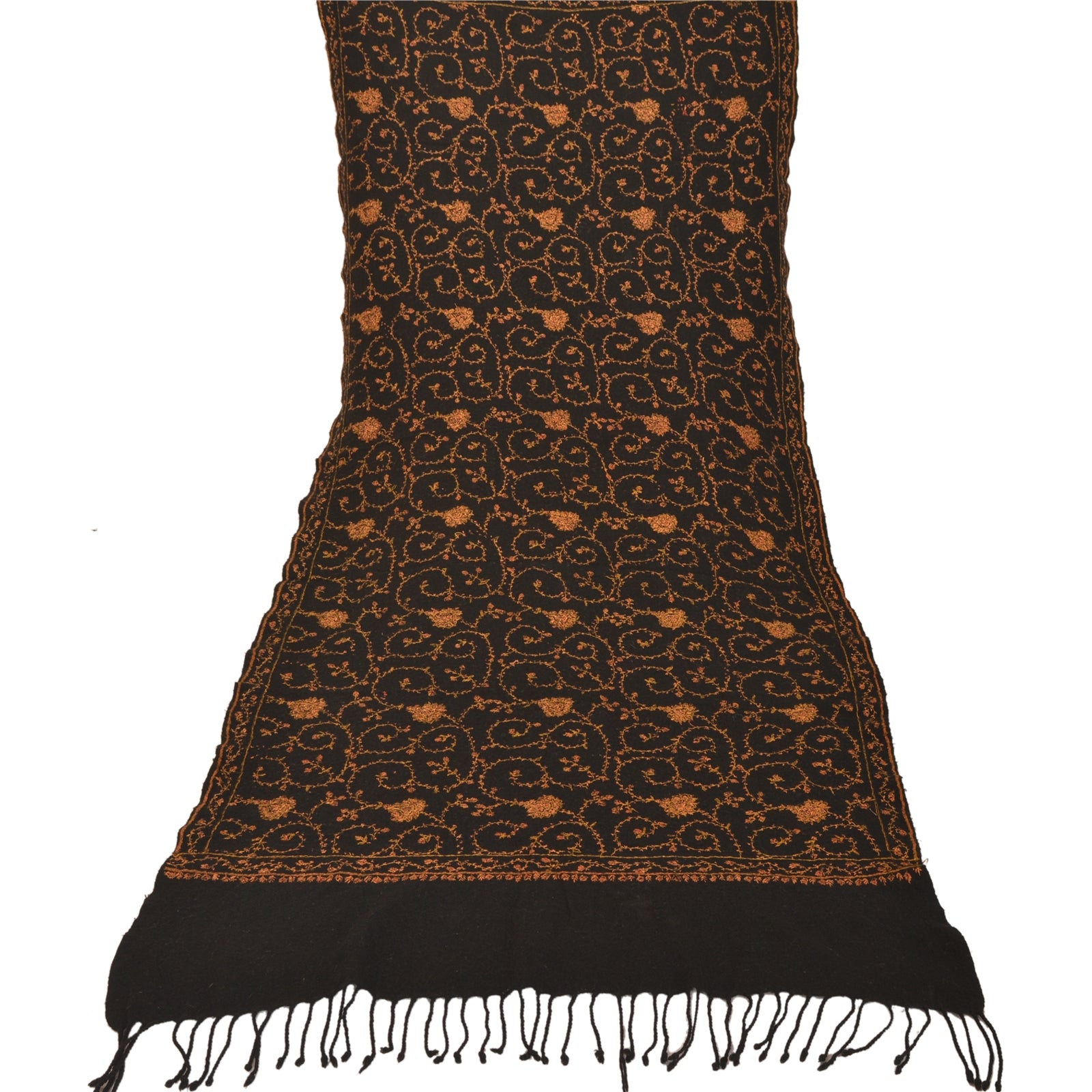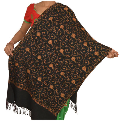 Sanskriti Vintage Indian Hand Embroidered Woolen Black Shawl Scarf Stole Warm