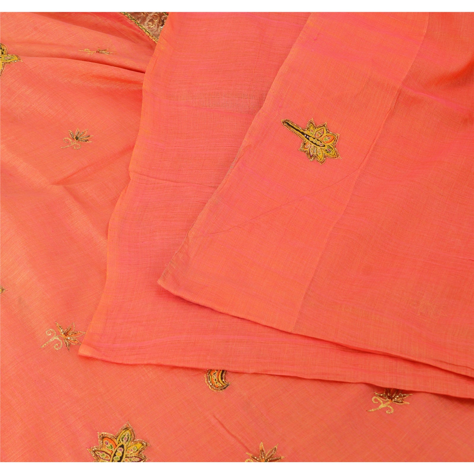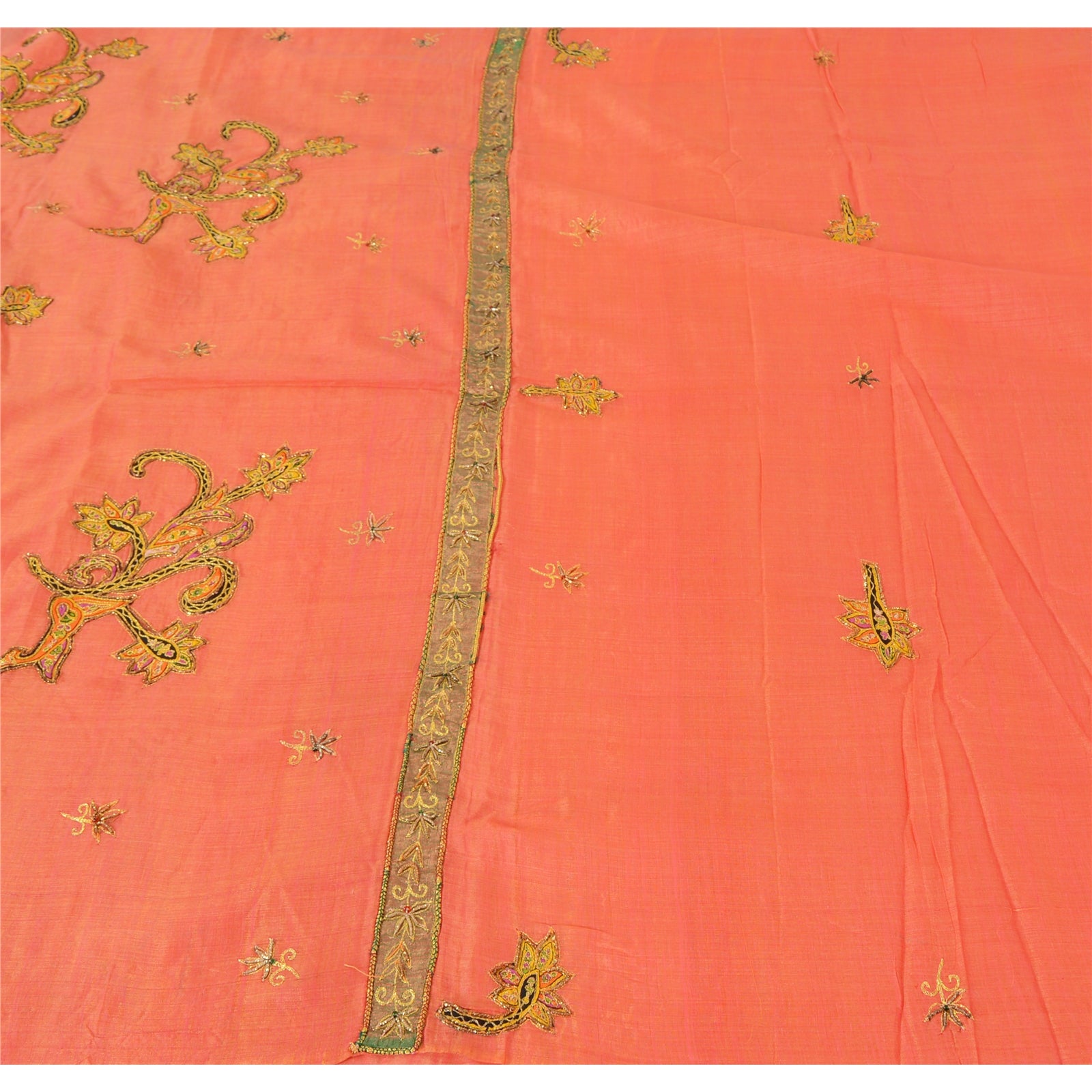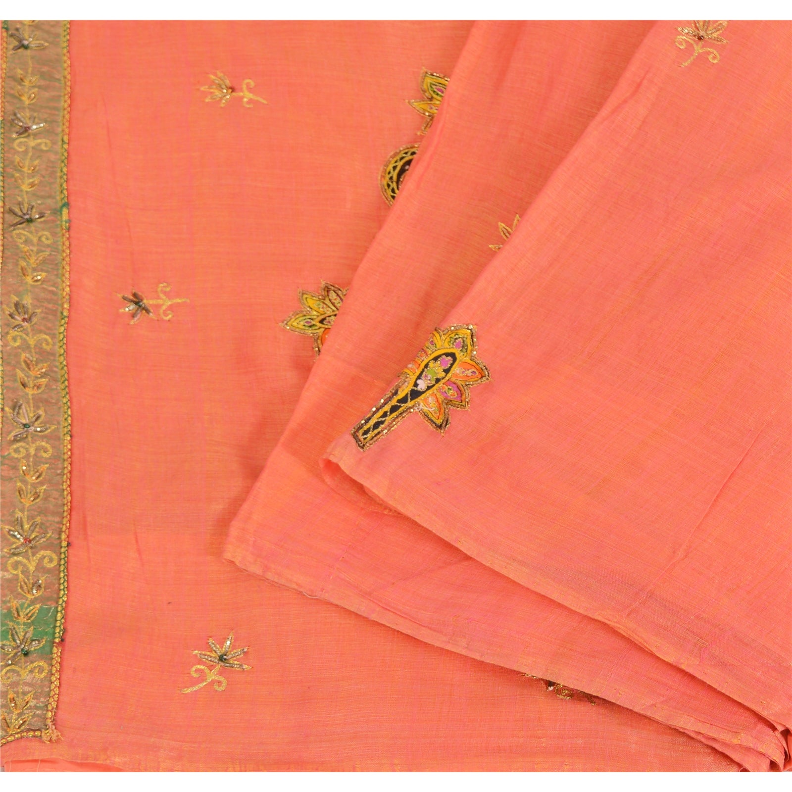 Sanskriti Vintage Indian Peach Sarees Cotton Silk Hand Beaded Sari Craft Fabric