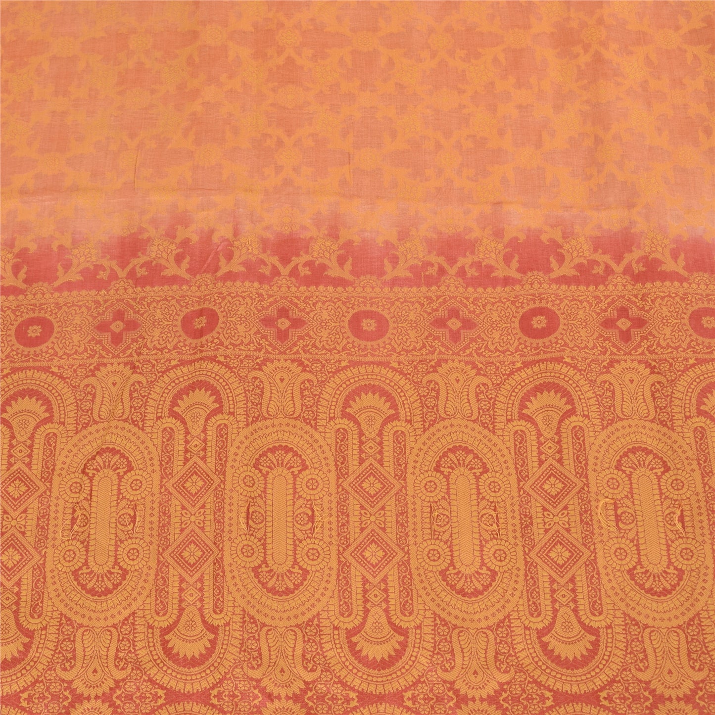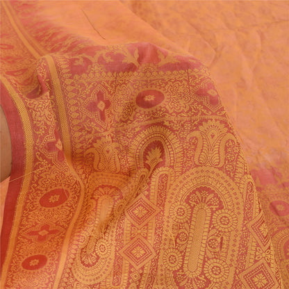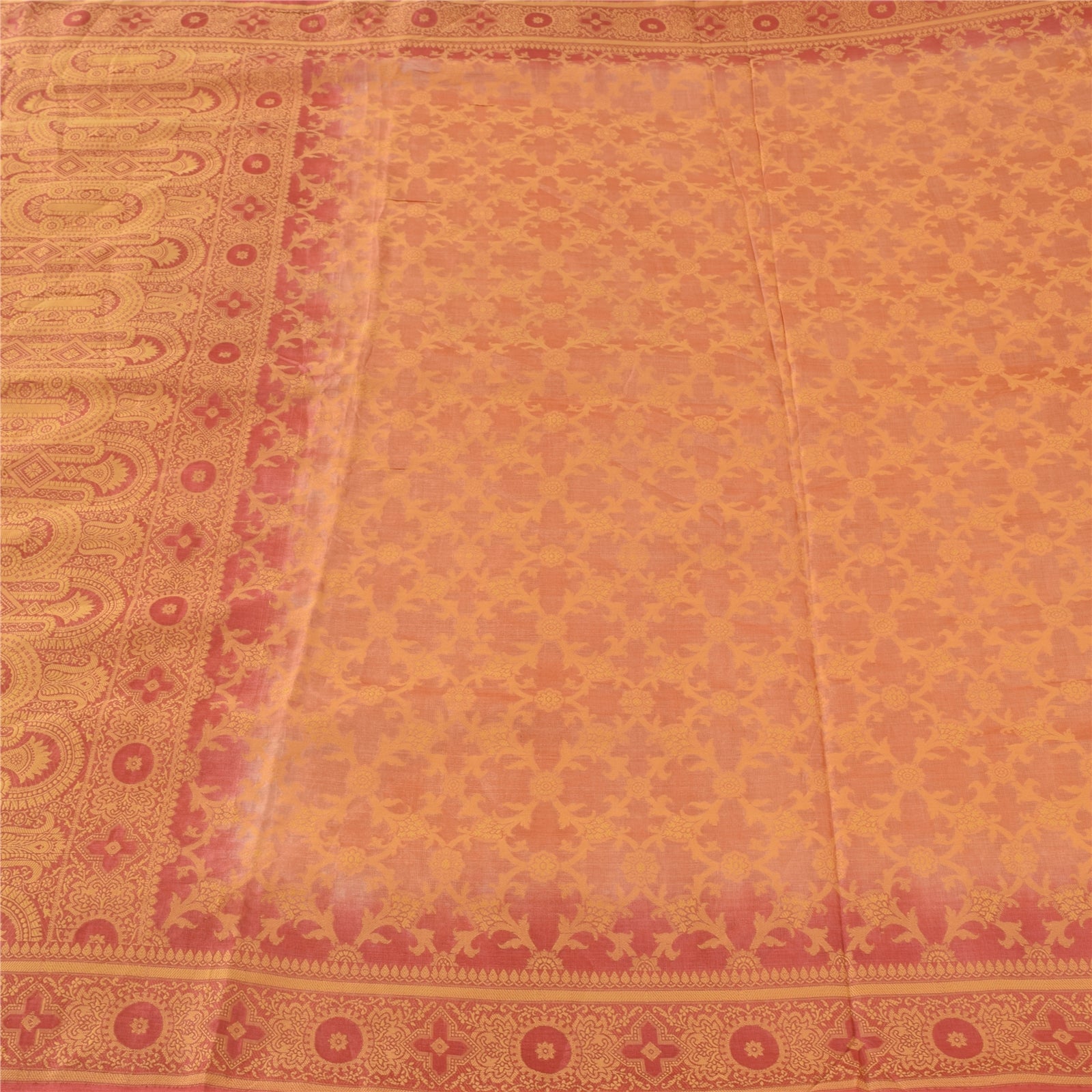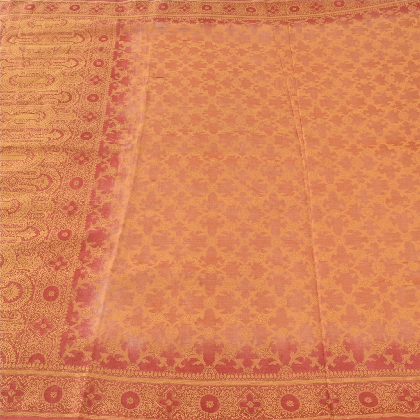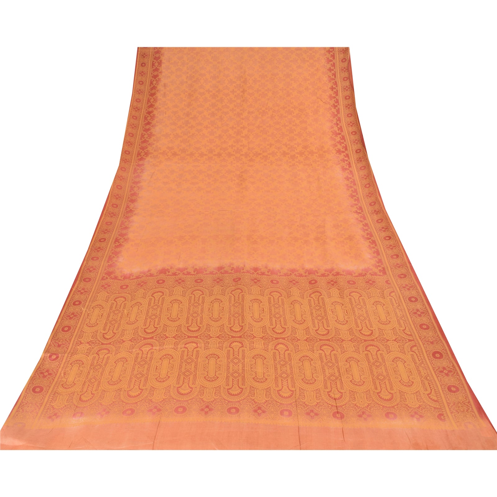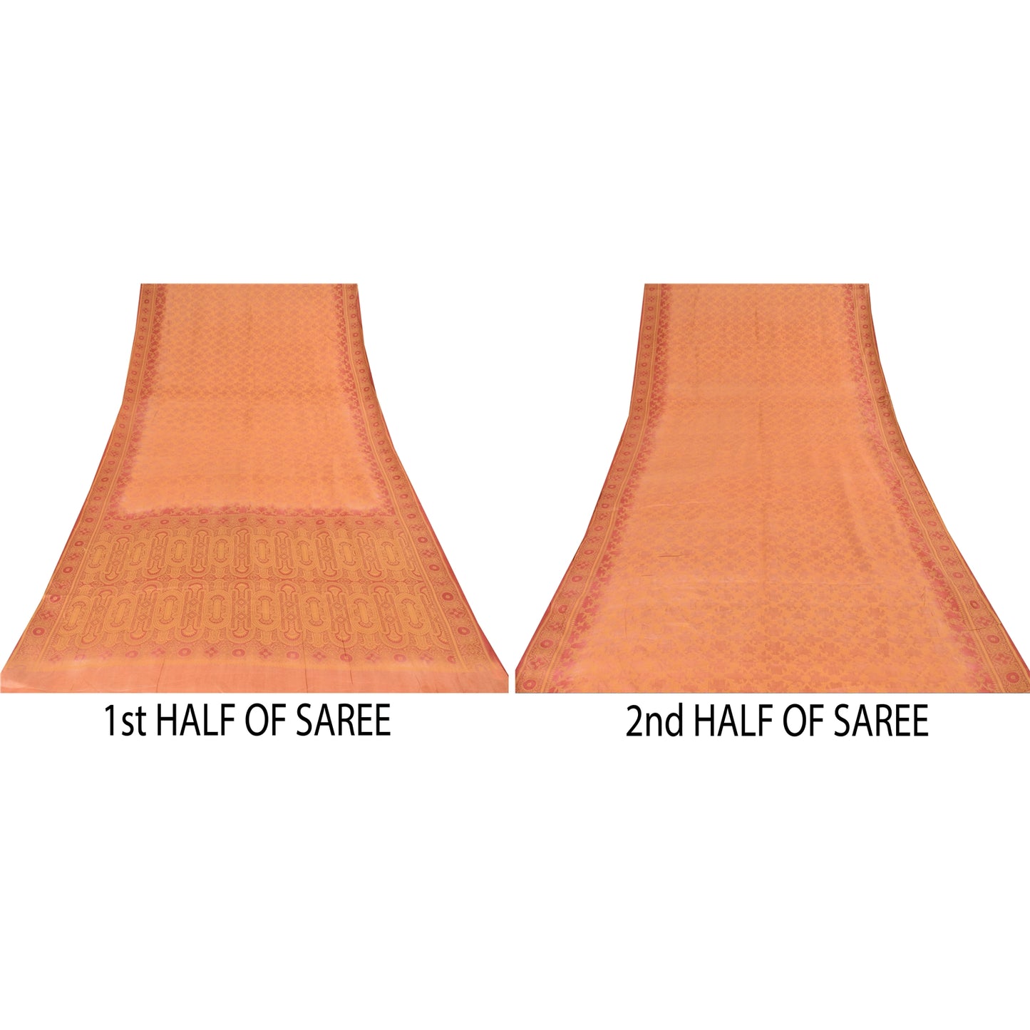 Sanskriti Vintage Indian Peach Sarees Pure Silk Woven Premium Sari Craft Sustainable Fabric
