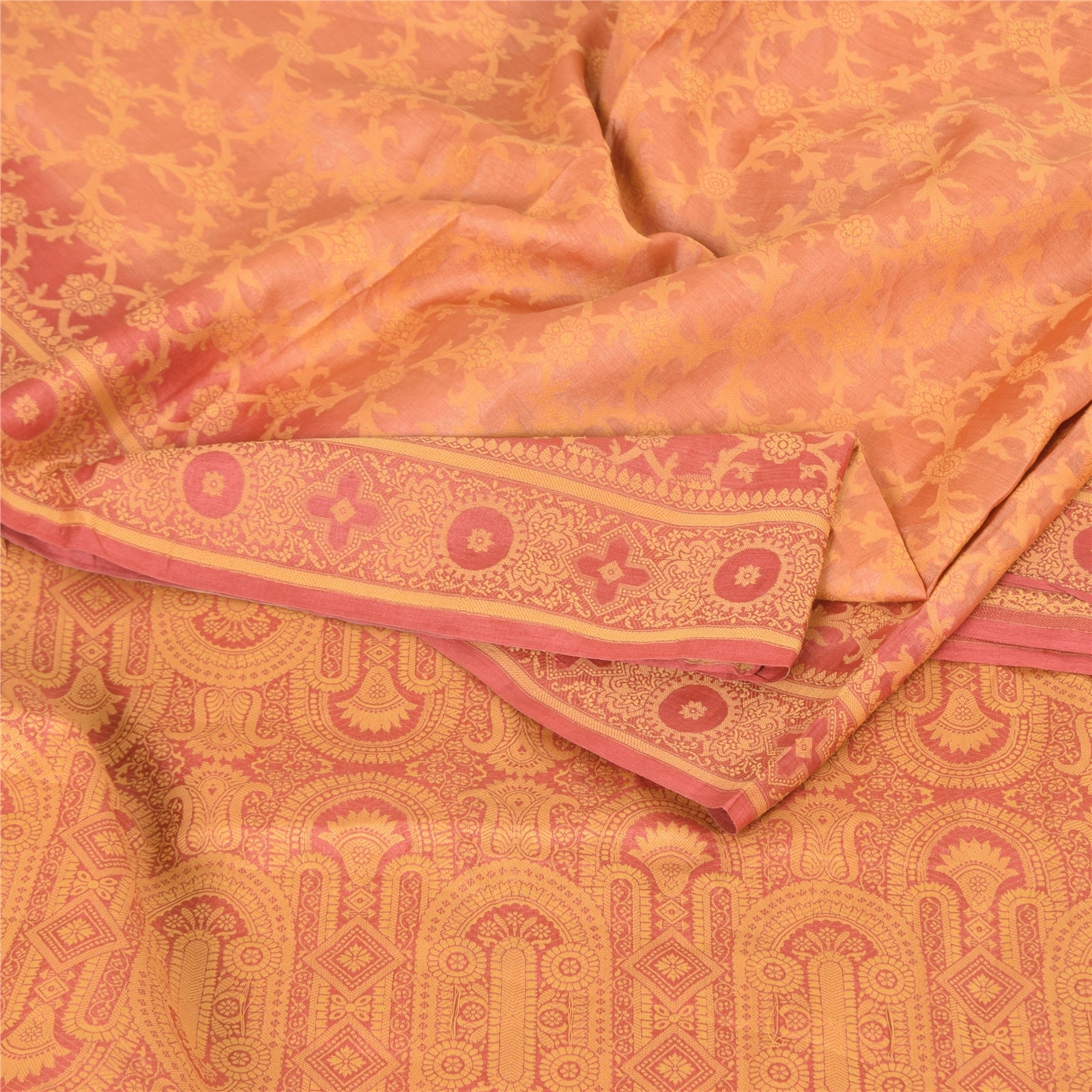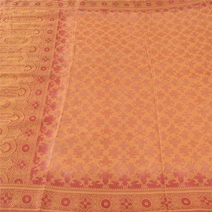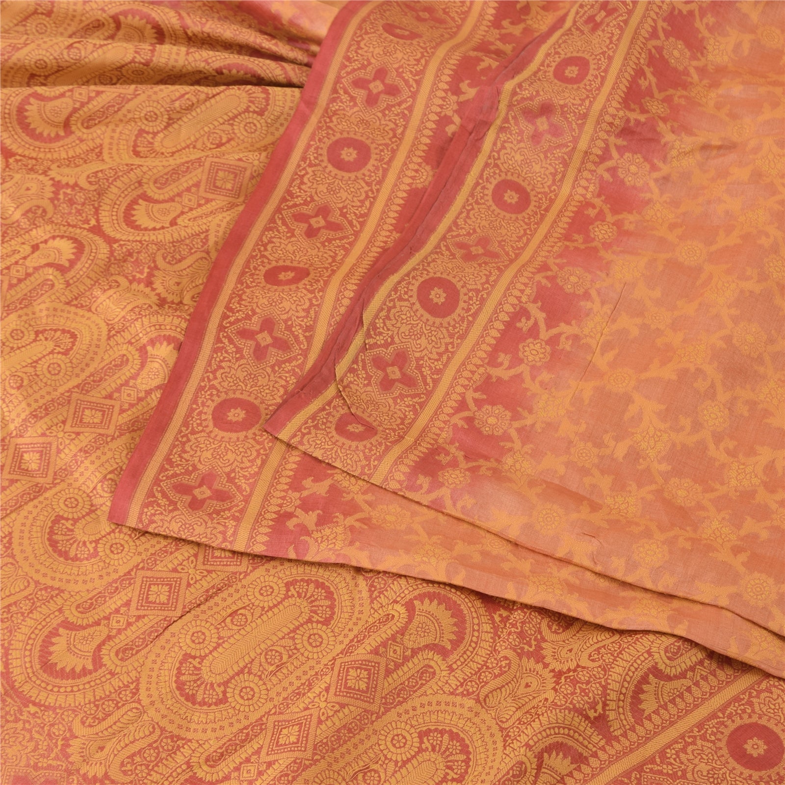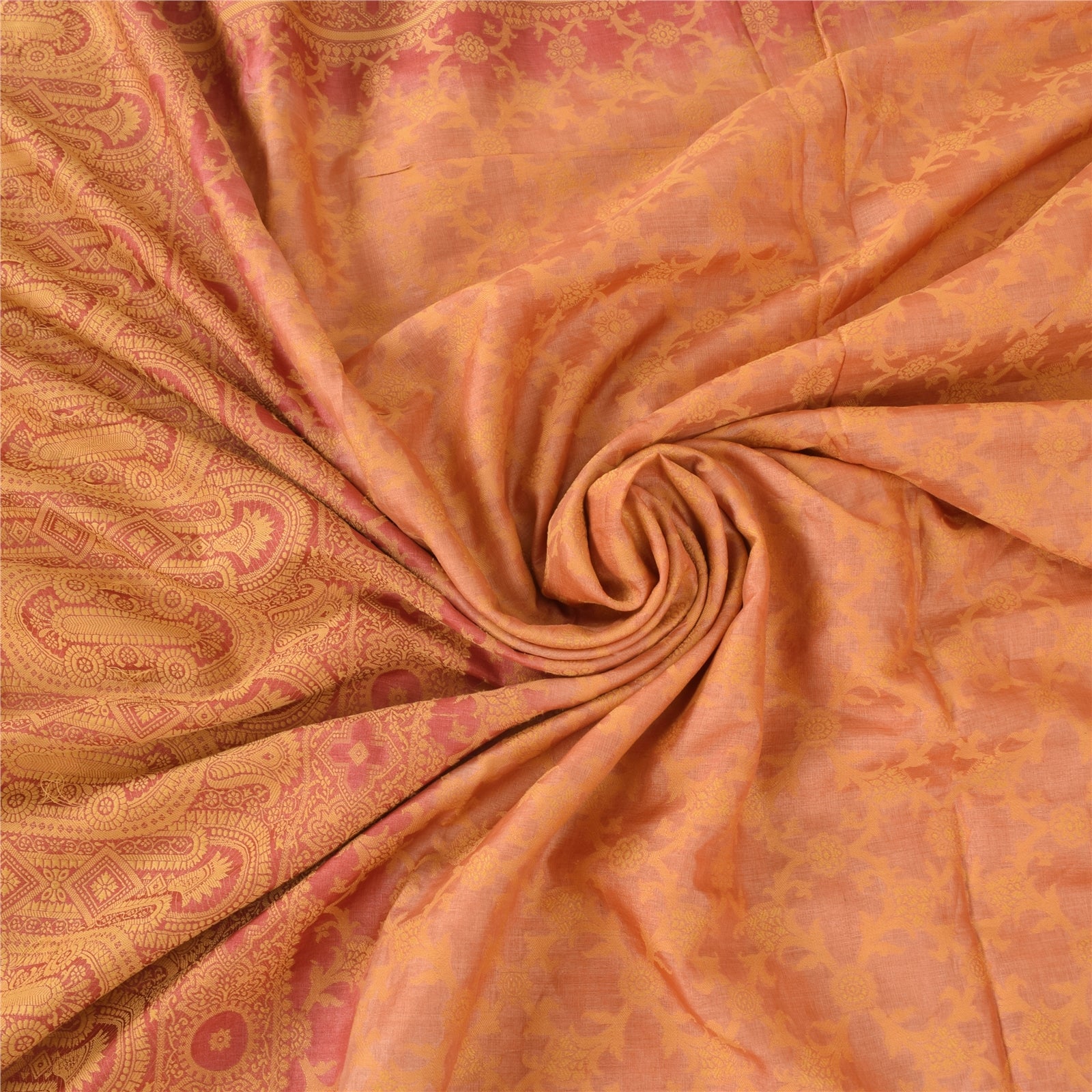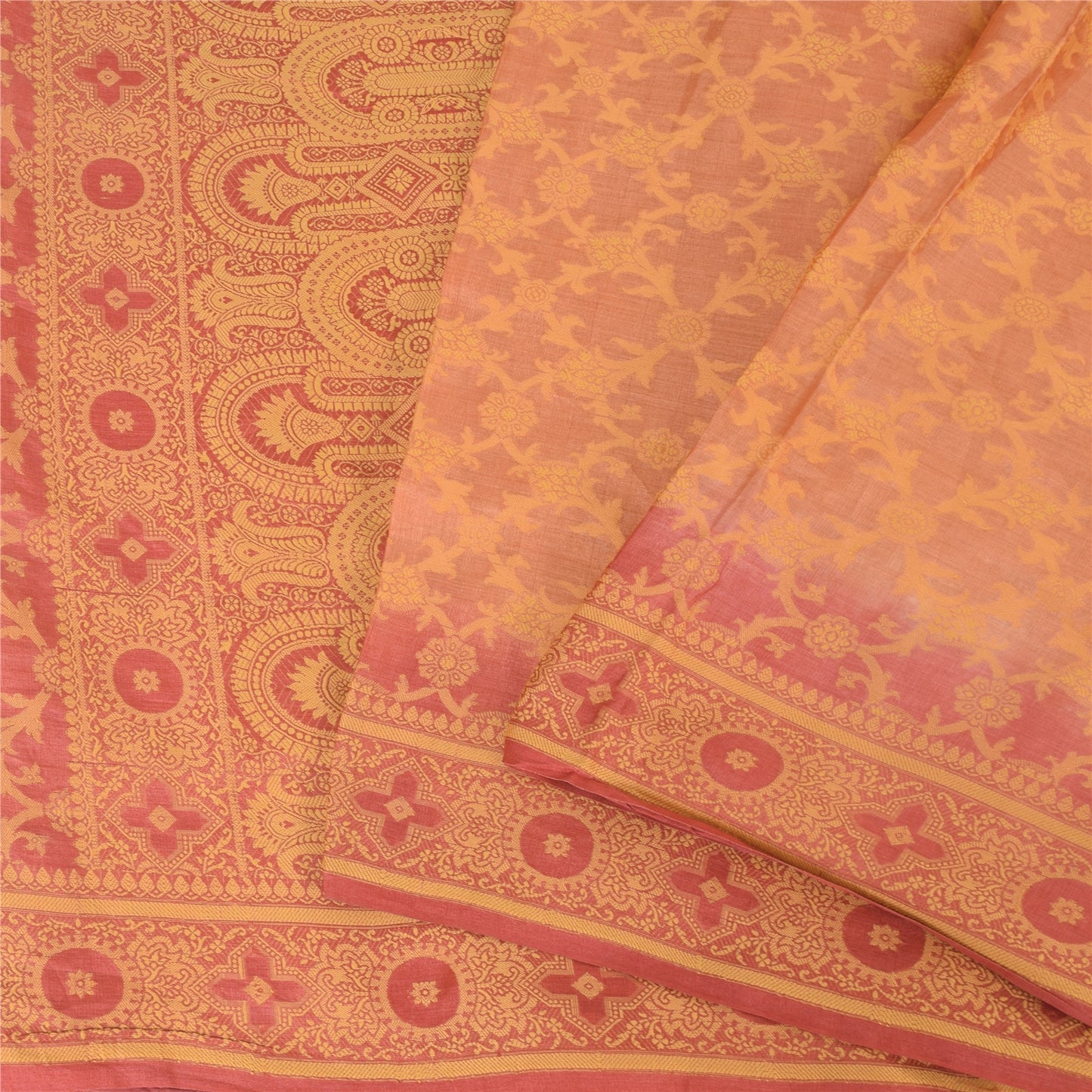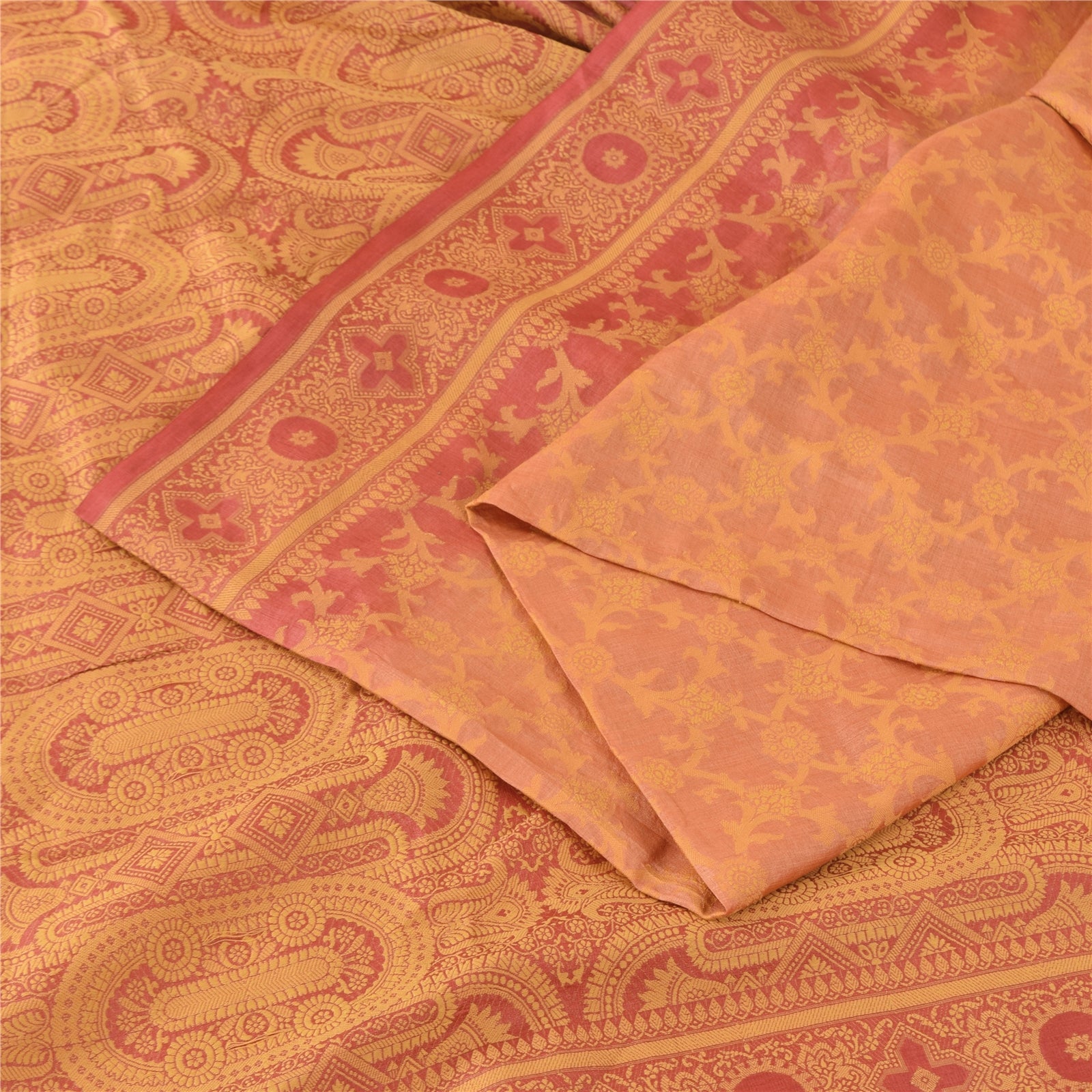 Sanskriti Vintage Indian Peach Sarees Pure Silk Woven Premium Sari Craft Sustainable Fabric