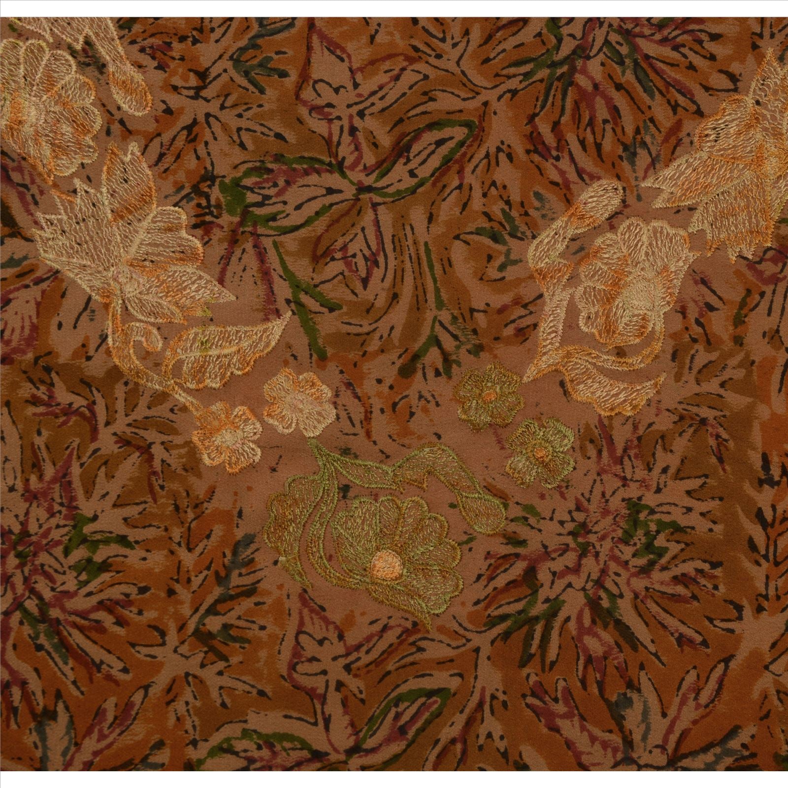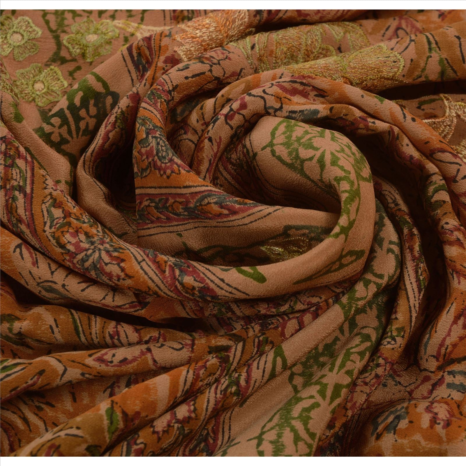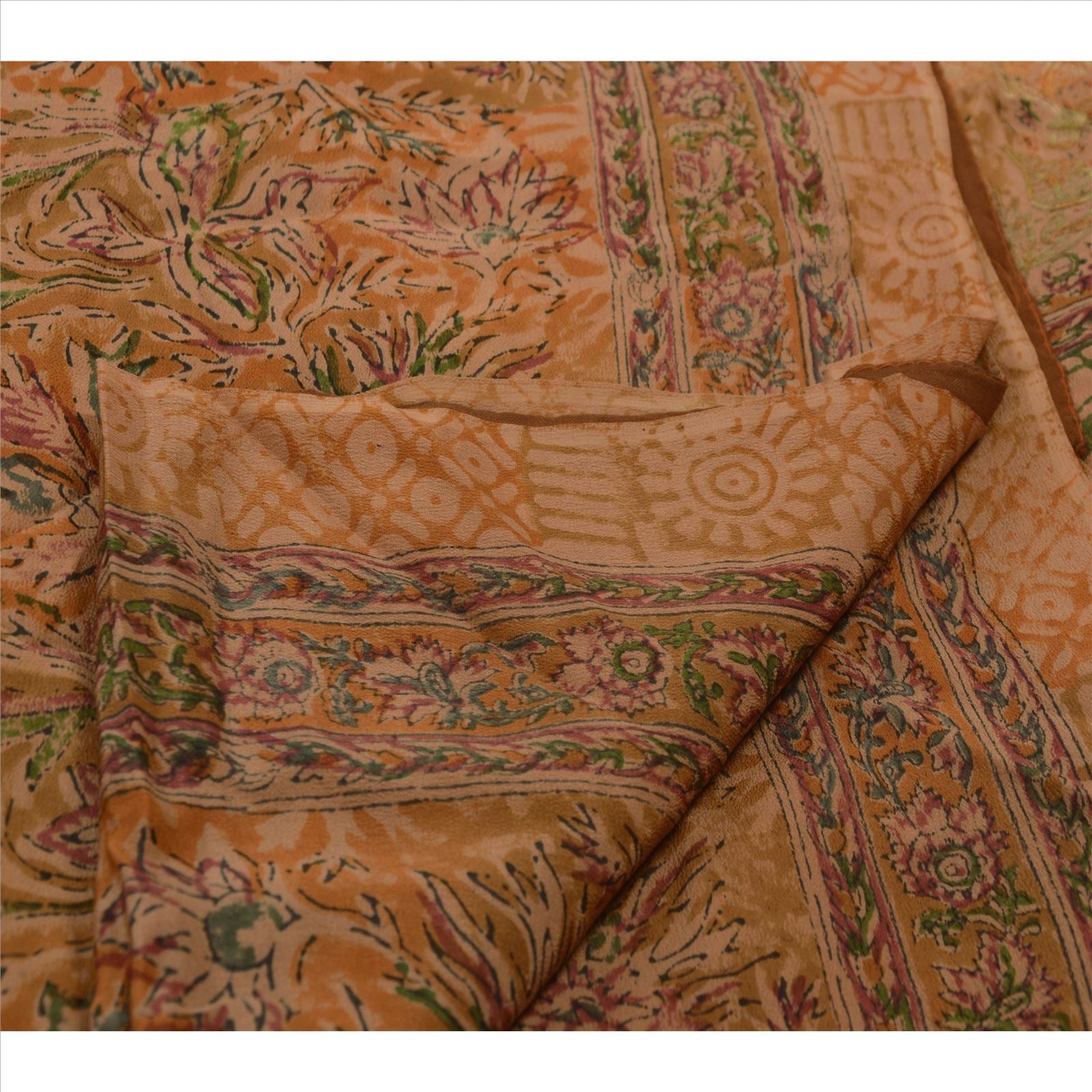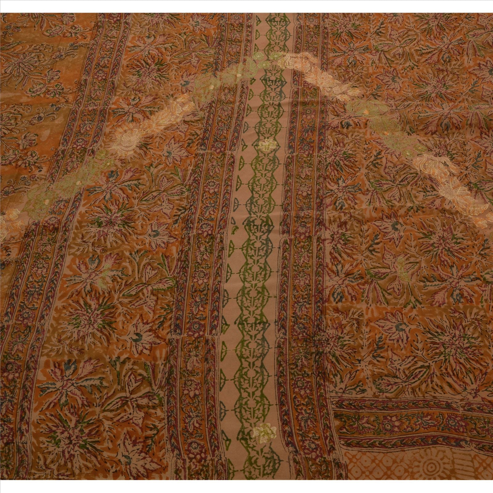 Sanskriti Vintage Indian Saree 100% Pure Crepe Silk Embroidered Sustainable Fabric Sari