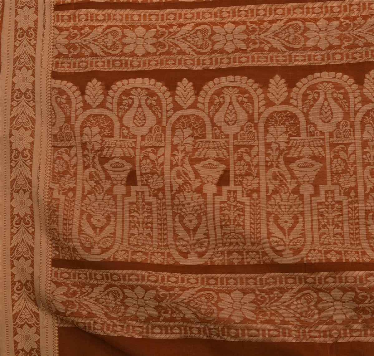 Sanskriti Vintage Indian Saree Art Silk Woven Brown Craft Sustainable Fabric Sari