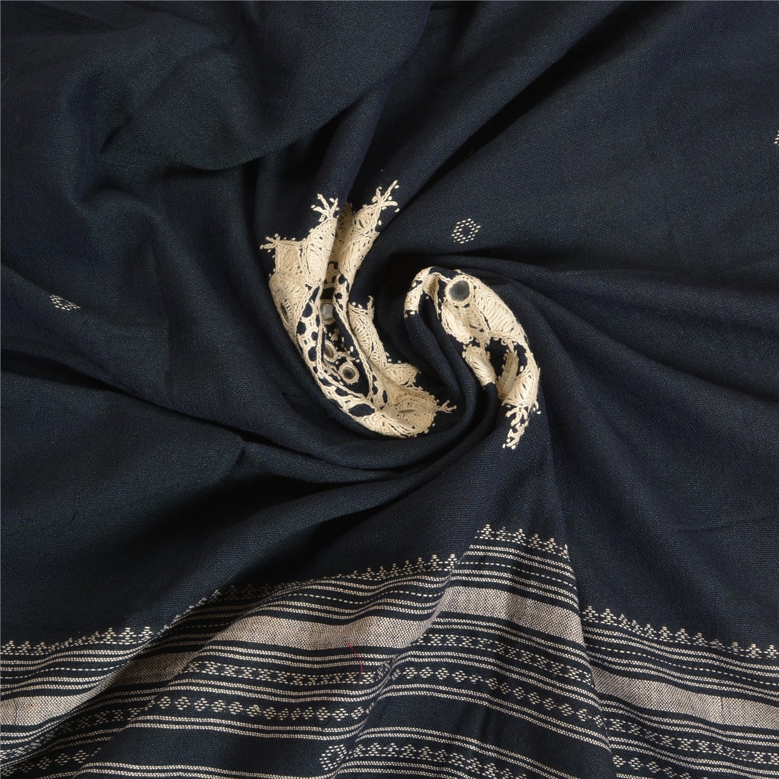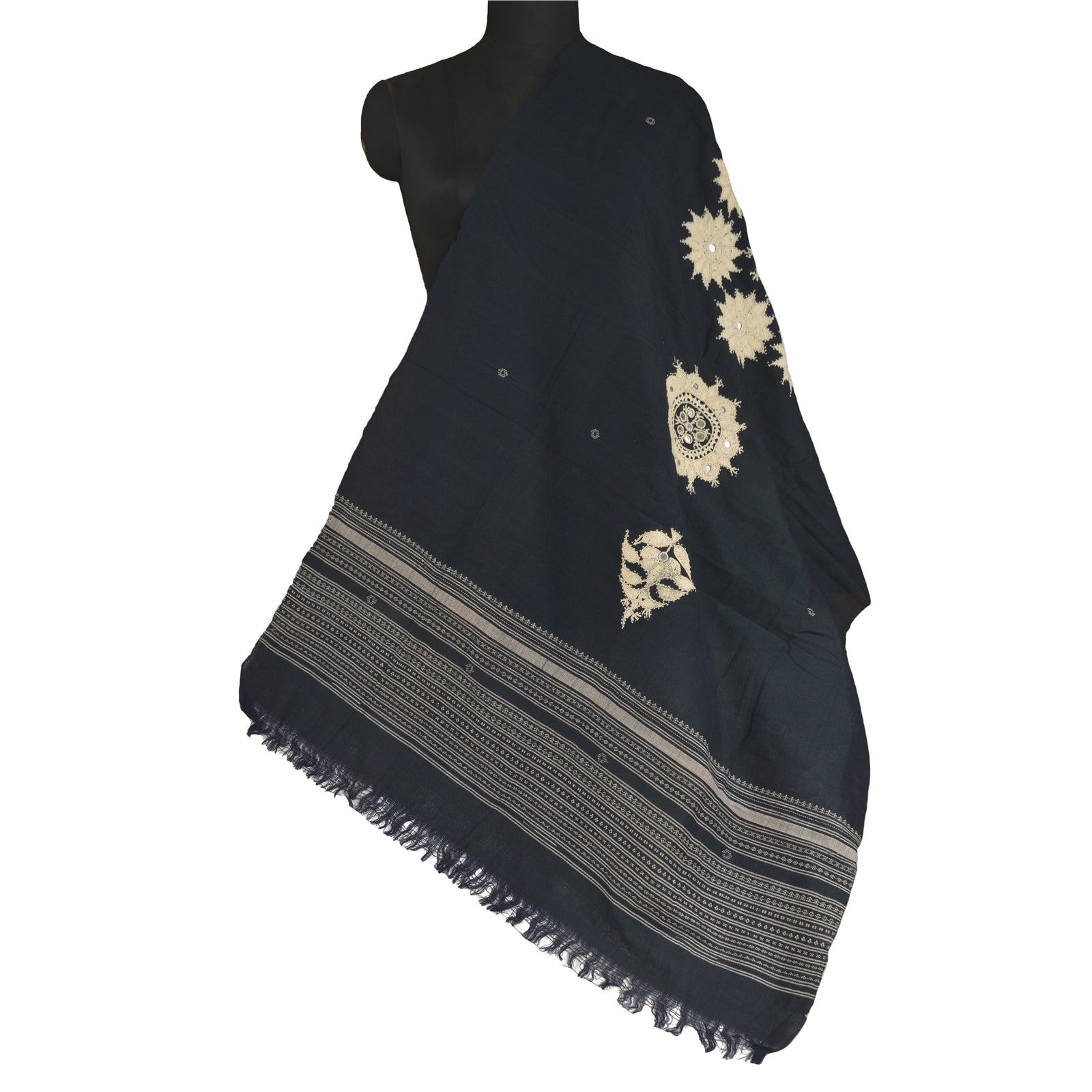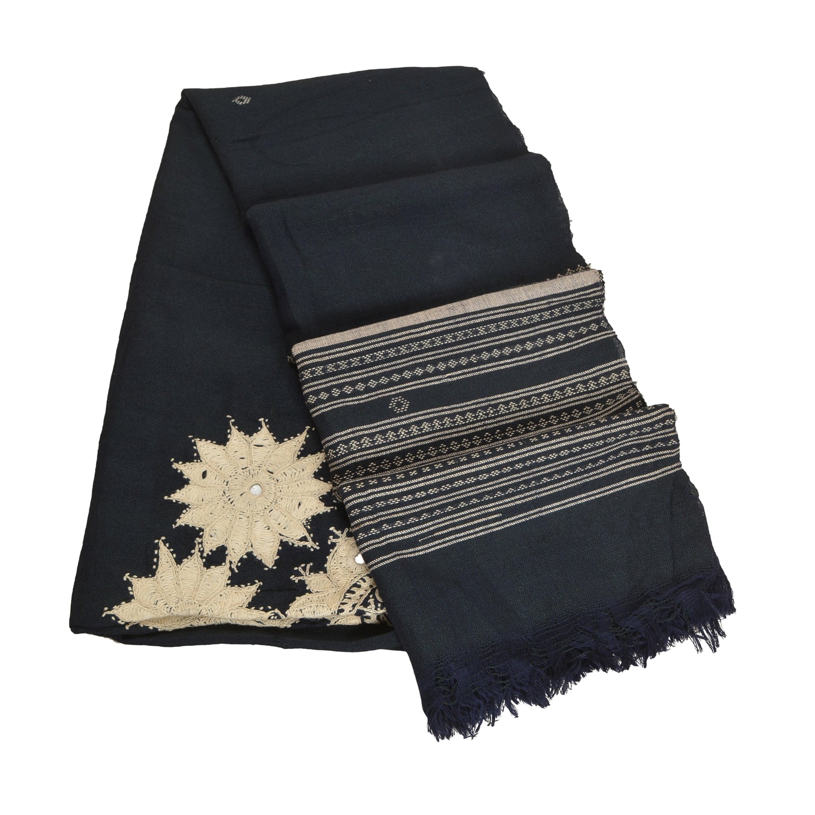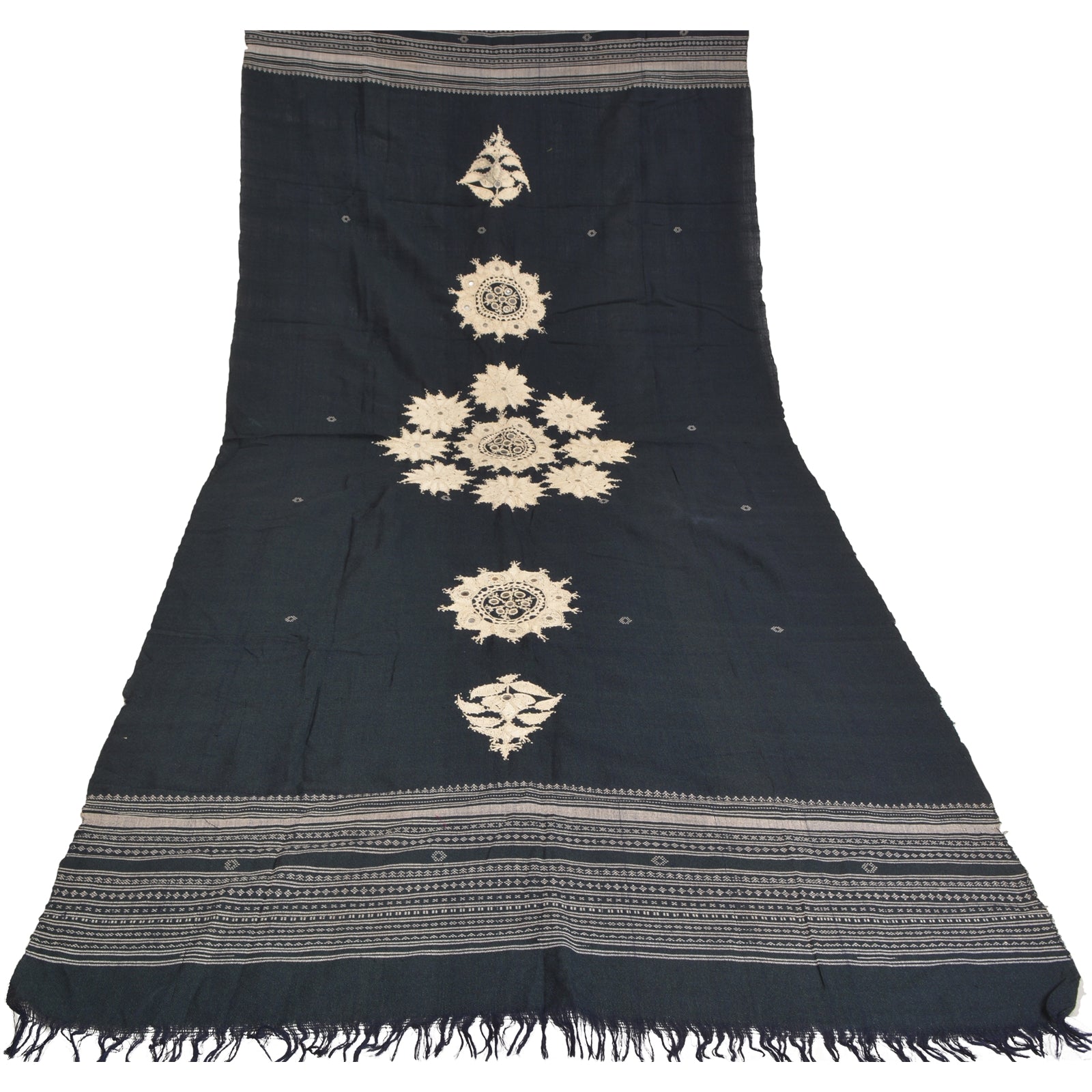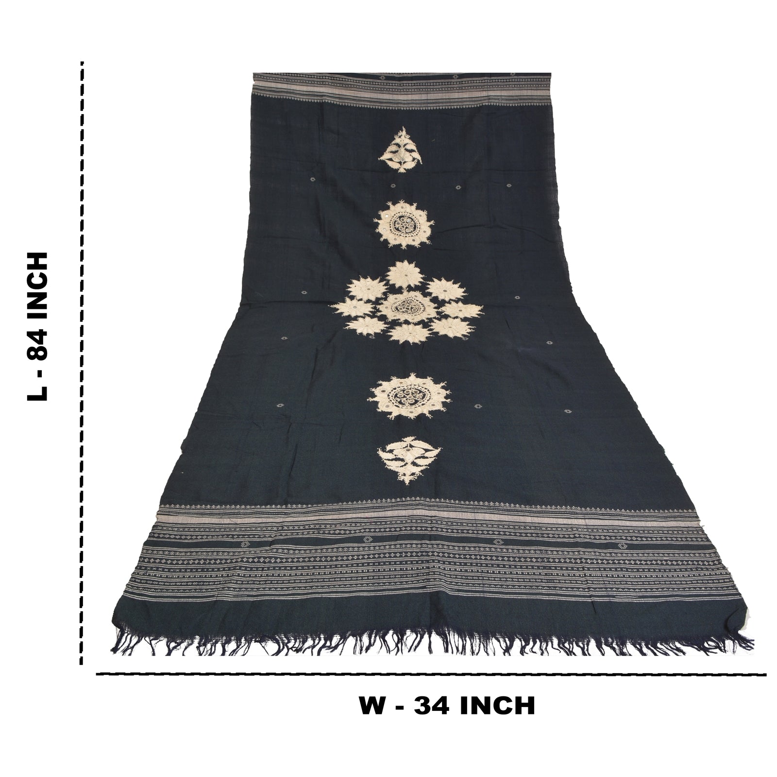 'THE ITEM COLOR OR SHADE MAY BE DARKER OR LIGHTER THAN THE PICTURE.' Beautiful vintage deep blue color pure woolen hand embroidered stole/shawl. Center part of the shawl has handmade crochet thread floral design with mirror work. Border part of white woven thread work with soft base Sustainable Fabric is really enhancing beauty of the shawl. Shawl has matching fringes on both ends of borders. This cozy, warm and fuzzy stool is soft against skin due to the mellow woolen Sustainable Fabric. A truly gorgeous piece which will also make an admirable gift. 'International buyers please note: Import duties, taxes, and charges are not included in the item price or postage cost. These charges are the buyer's responsibility. Please check with your country's customs office to determine what these additional costs will be prior to bidding or buying. Buyer will pay custom duty/tax. It is calculated and charged differently by every country. As a seller I do not have any control over it. VAT or sales tax is calculated by the platform at the time of checkout. Customs charge is payable at the time of delivery.'