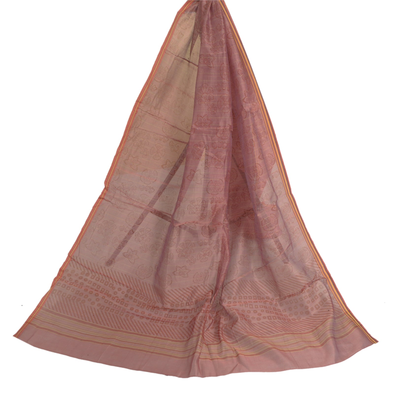 Sanskriti Vintage Long Dupatta Stole Cotton Silk Pink Hand-Block Printed Scarves