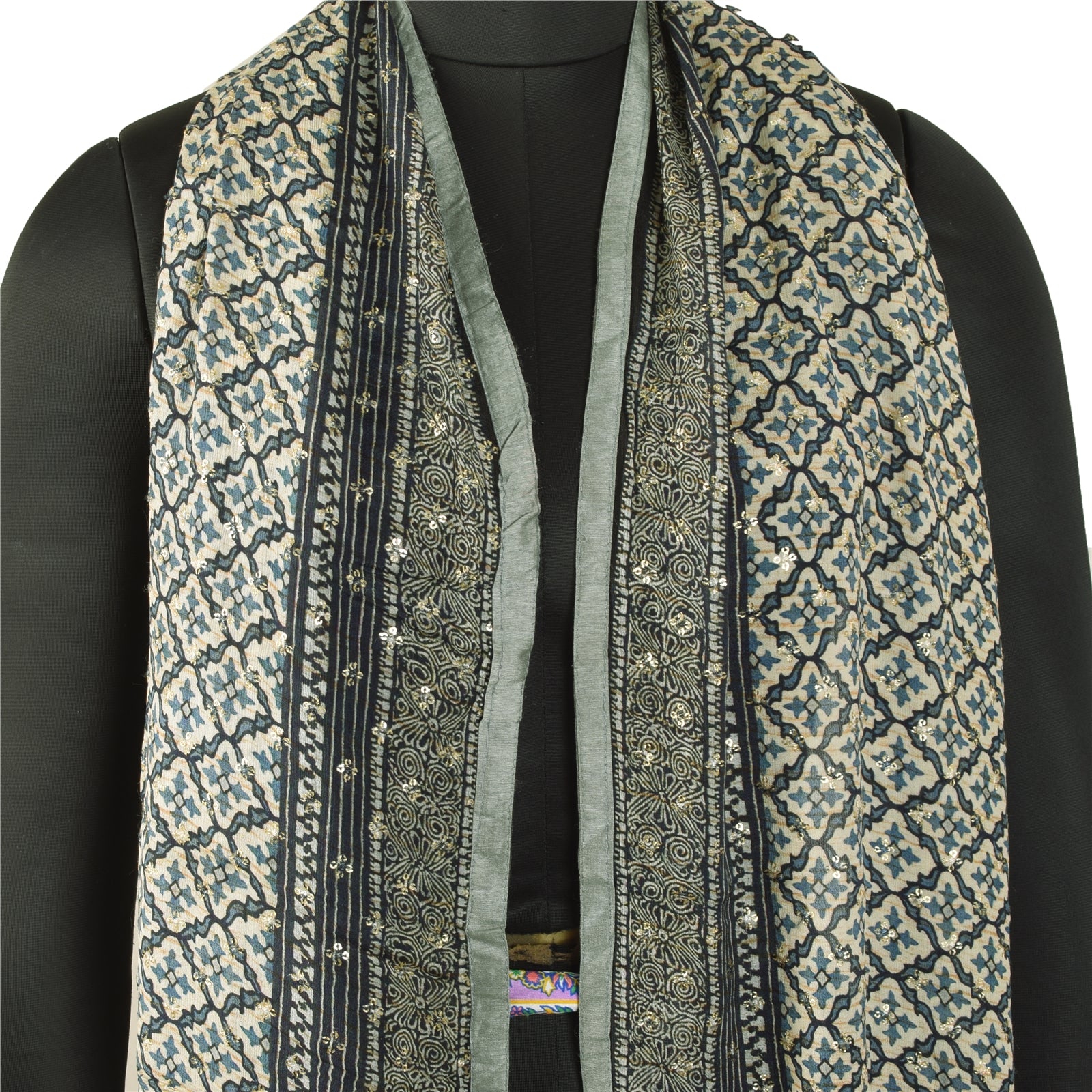 Sanskriti Vintage Long Dupatta/Stole Pure Blue Hand Beaded Sequins Scarf Veil