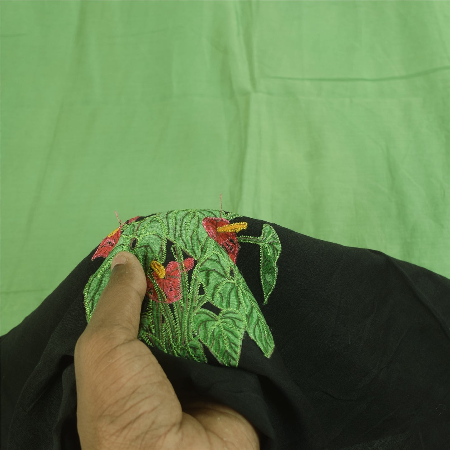 THE ITEM COLOR OR SHADE MAY BE DARKER OR LIGHTER THAN THE PICTURE. Beautiful green colored pure cotton embordered applique work long scarf/dupatta. Border of dupatta has floral design with thread work with Sustainable Fabric patch. Solid green color in center part of dupatta. This dupatta/stole can be used for various crafting ideas too. Use it for dress designing, as a throw, as window dressing, upholstery, table linen and much more. Let your creative juices flow. These Items are pre-owned and well preserved. Shipping Note: International buyers please note: Import duties, taxes, and charges are not included in the item price or postage cost. These charges are the buyer's responsibility. Please check with your country's customs office to determine what these additional costs will be prior to bidding or buying. Buyer will pay custom duty/tax. It is calculated and charged differently by every country. As a seller I do not have any control over it. VAT or sales tax is calculated by the platform at the time of checkout. Customs charge is payable at the time of delivery.' dc-55186