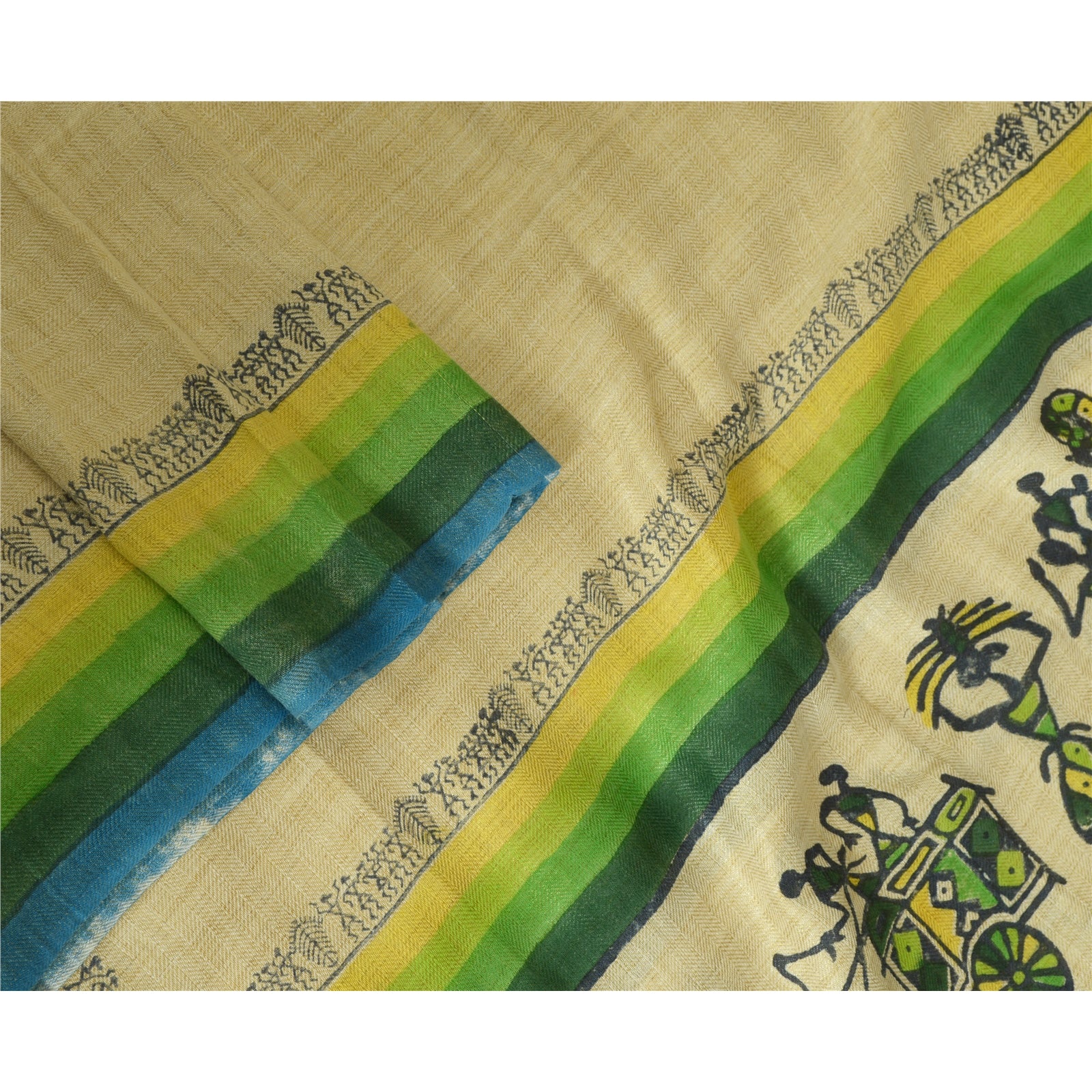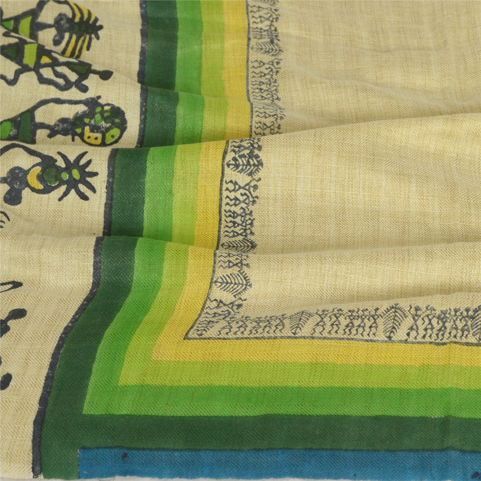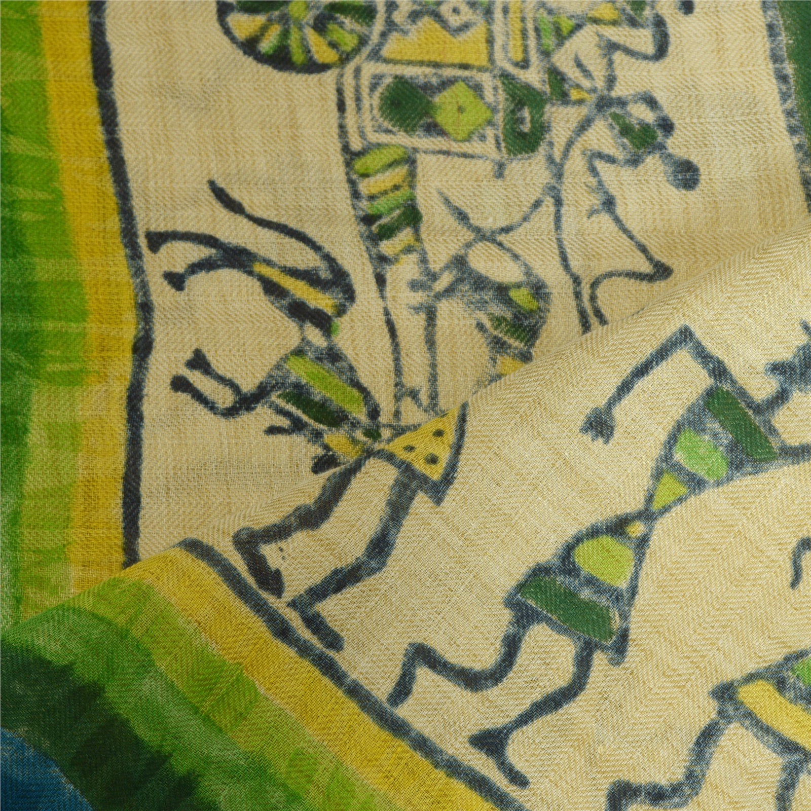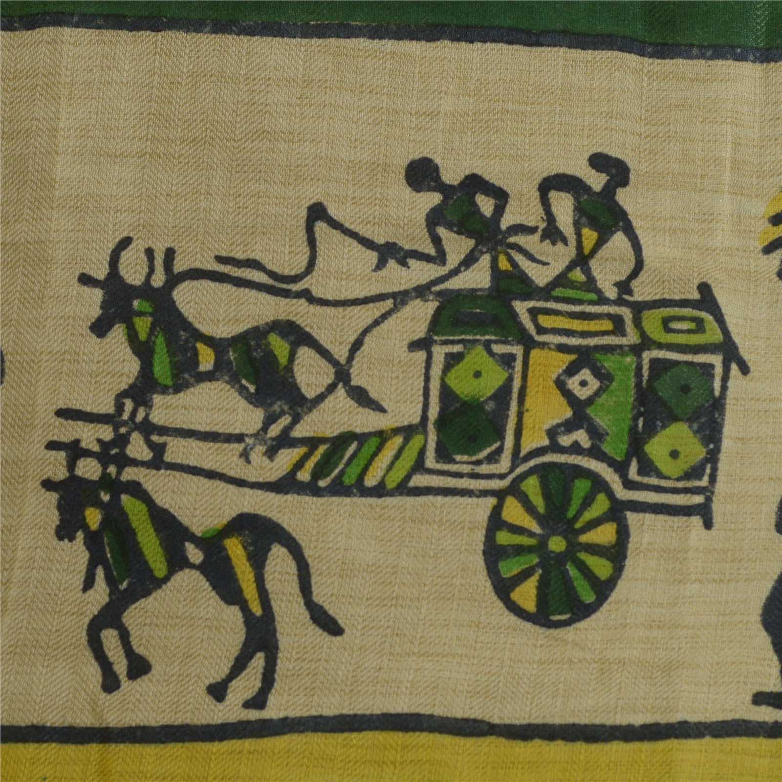 Sanskriti Vintage Long Dupatta Stole Pure Cotton Ivory/Green Warli Printed Shawl