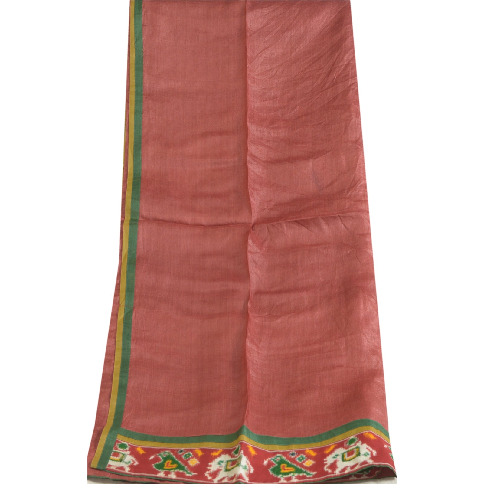 'THE ITEM COLOR OR SHADE MAY BE DARKER OR LIGHTER THAN THE PICTURE.' Attractive shade of brick red colored 100% pure silk woven patola ikat long scarf/dupatta. Border has multi color Sustainable Fabric patch work with woven ikat animal design is really enhancing beauty of the dupatta/stole. As the item is Vintage, some minor stains and defects are expected. This dupatta/stole can be used for various crafting ideas too. Use it for dress designing, as a throw, as window dressing, upholstery, table linen and much more. Let your creative juices flow. International buyers please note: Import duties, taxes, and charges are not included in the item price or postage cost. These charges are the buyer's responsibility. Please check with your country's customs office to determine what these additional costs will be prior to bidding or buying. Buyer will pay custom duty/tax. It is calculated and charged differently by every country. As a seller I do not have any control over it. VAT or sales tax is calculated by the platform at the time of checkout. Customs charge is payable at the time of delivery.'