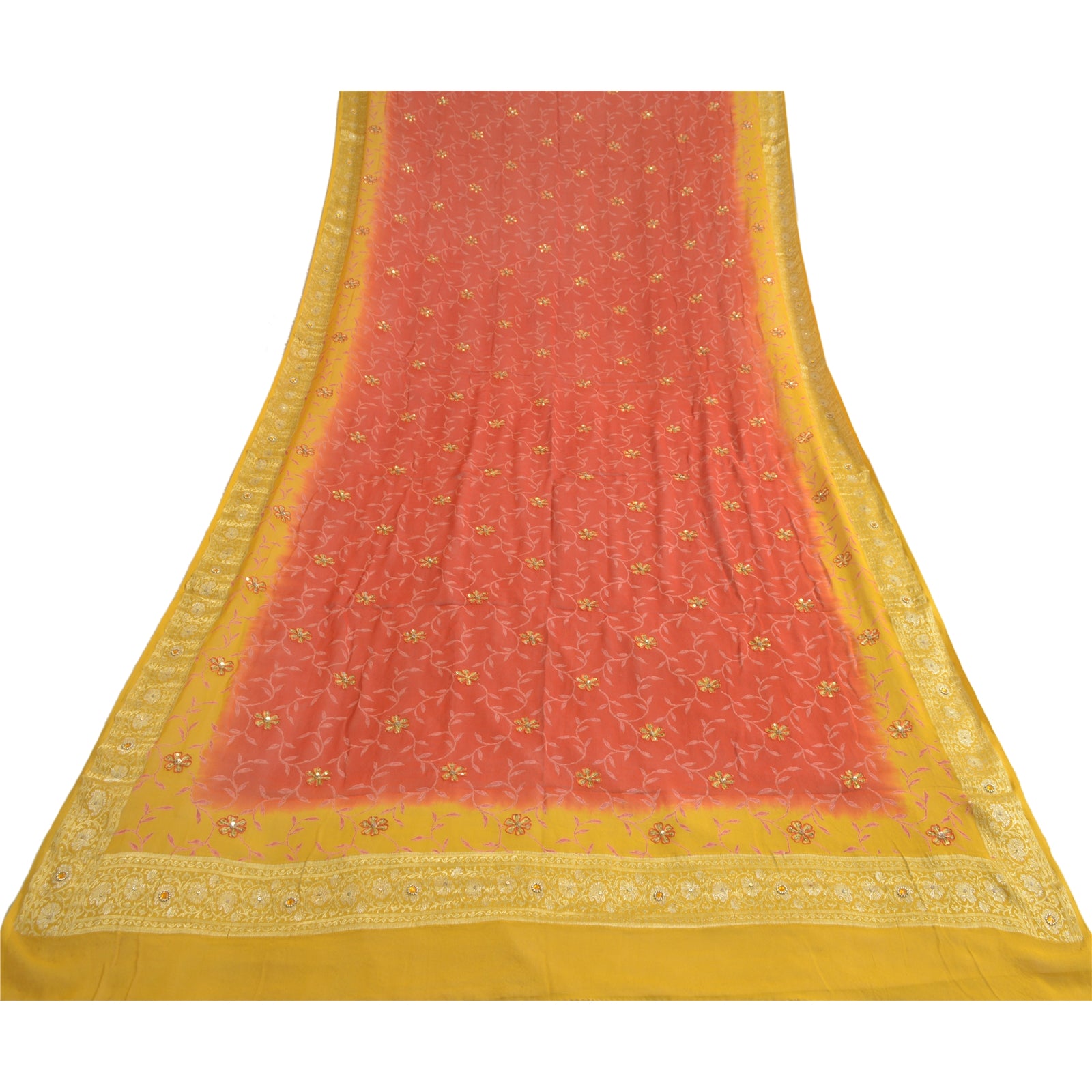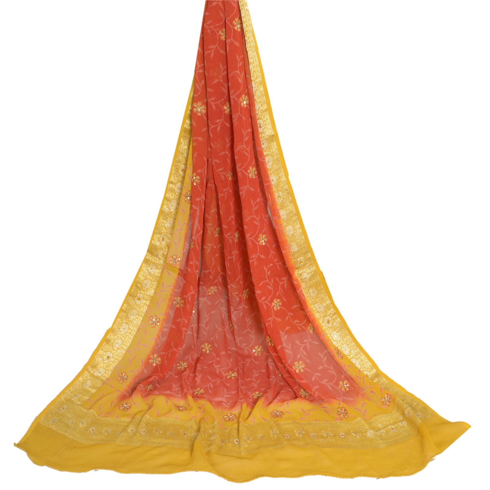 'THE ITEM COLOR OR SHADE MAY BE DARKER OR LIGHTER THAN THE PICTURE.' Beautiful red & mustard colored 100% pure georgette silk hand embroidered printed long scarf/dupatta. Center portion of the dupatta printed floral design with sequins work. Border has woven floral design which are embellished with golden sequins/beads, orange rhinestones work is really enhancing beauty of the dupatta/stole. This dupatta/stole can be used for various crafting ideas too. Use it for dress designing, as a throw, as window dressing, upholstery, table linen and much more. Let your creative juices flow. International buyers please note: Import duties, taxes, and charges are not included in the item price or postage cost. These charges are the buyer's responsibility. Please check with your country's customs office to determine what these additional costs will be prior to bidding or buying. Buyer will pay custom duty/tax. It is calculated and charged differently by every country. As a seller I do not have any control over it. VAT or sales tax is calculated by the platform at the time of checkout. Customs charge is payable at the time of delivery.'