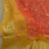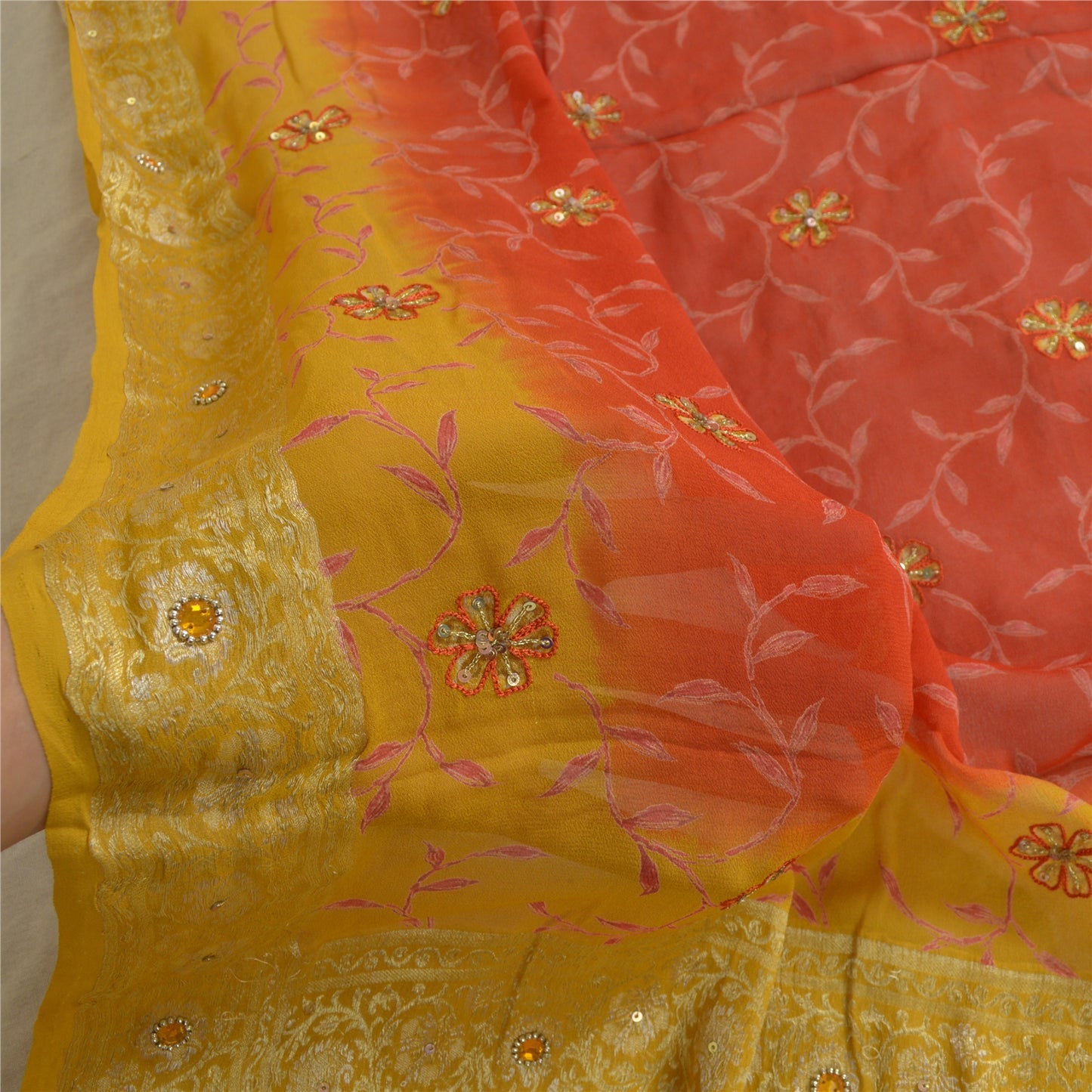 Sanskriti Vintage Long Red/Mustard Dupatta/Stole Pure Georgette Silk Hand Beaded