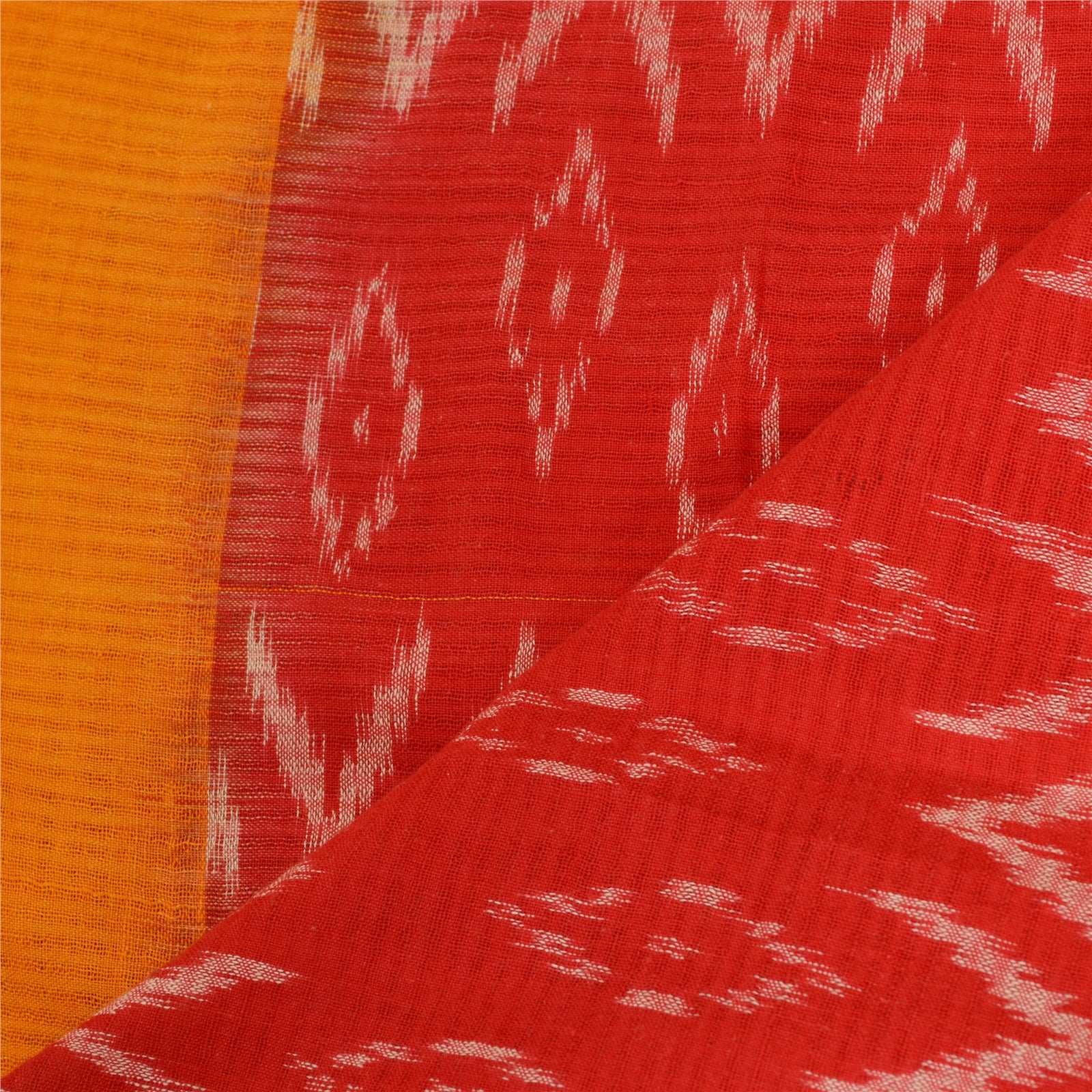 Sanskriti Vintage Long Stole Red/Saffron Pure Cotton Hand-Woven Sambalpuri Ikat
