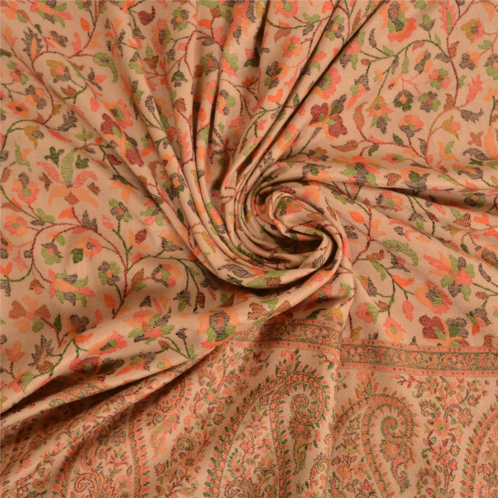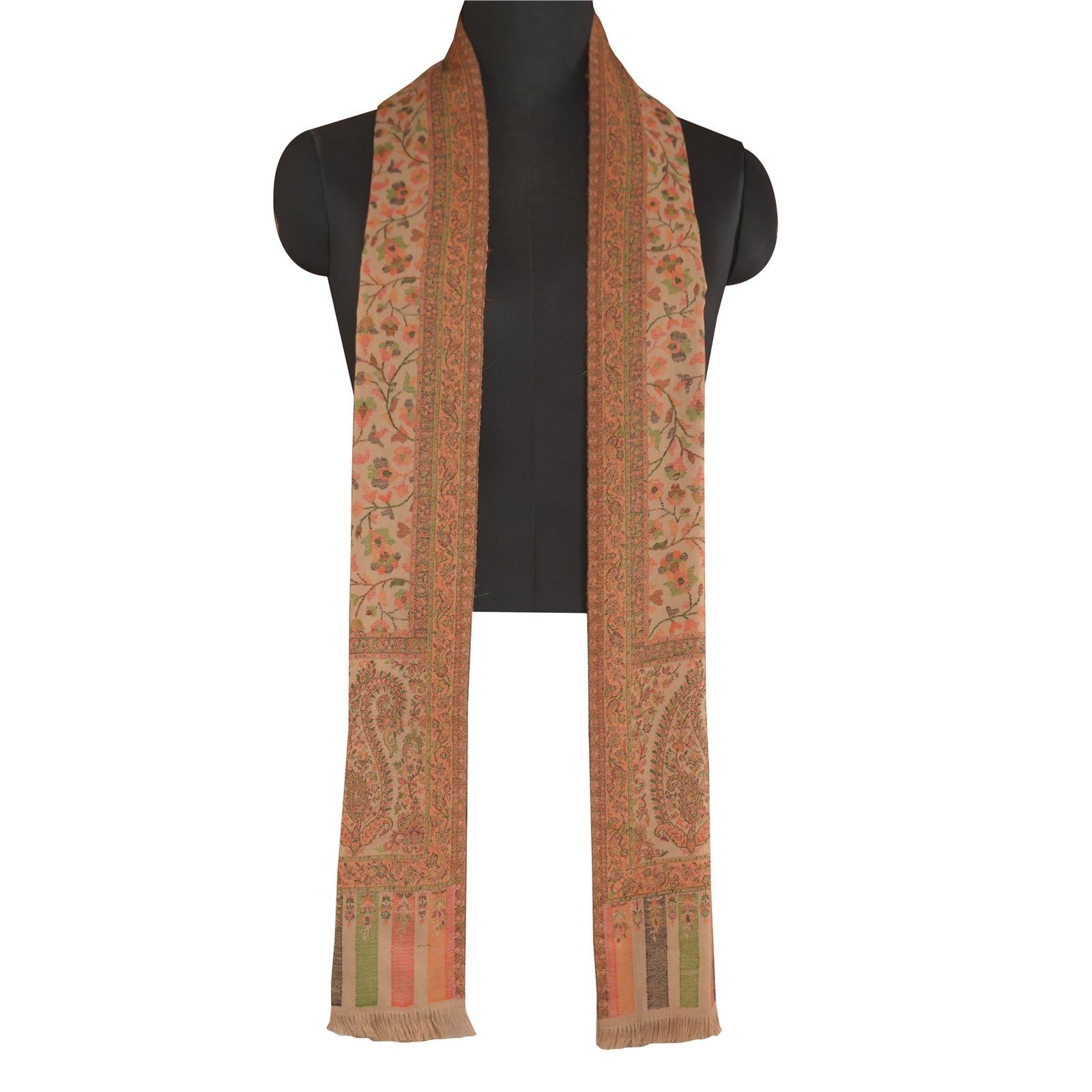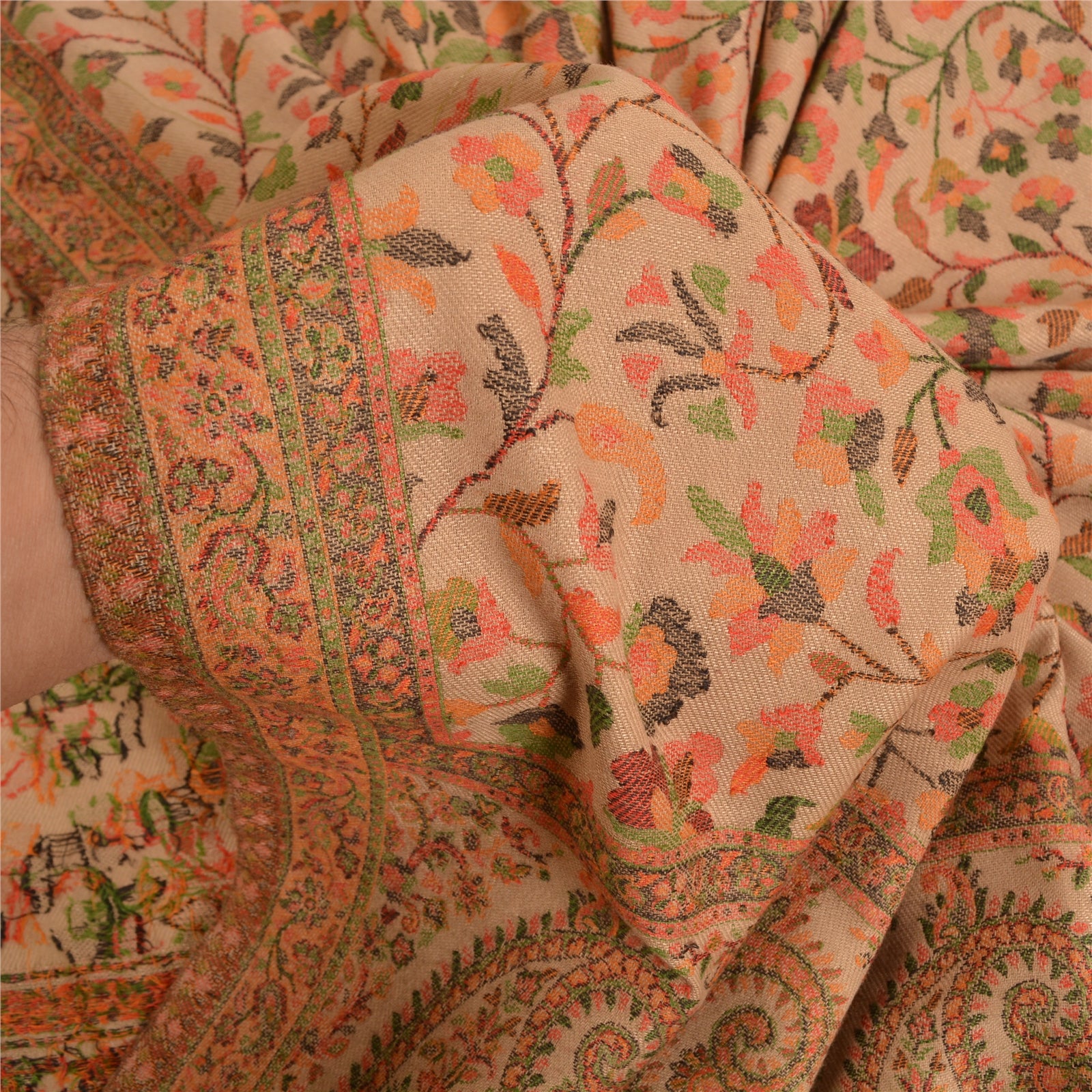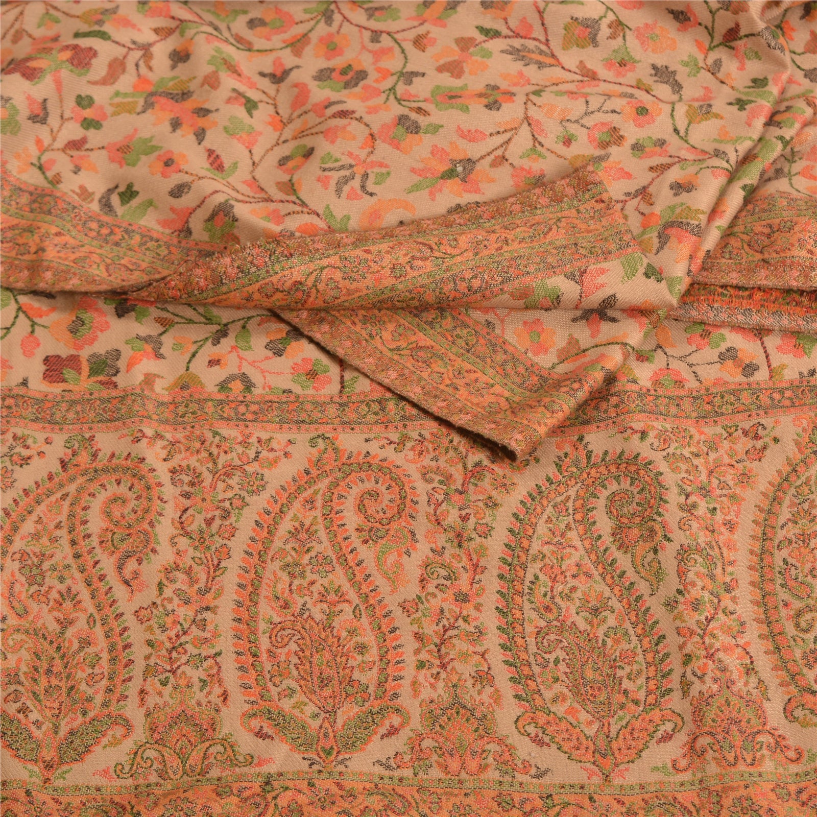 Sanskriti Vintage Long Woollen Beige Shawl Woven Scarf Throw Soft Stole