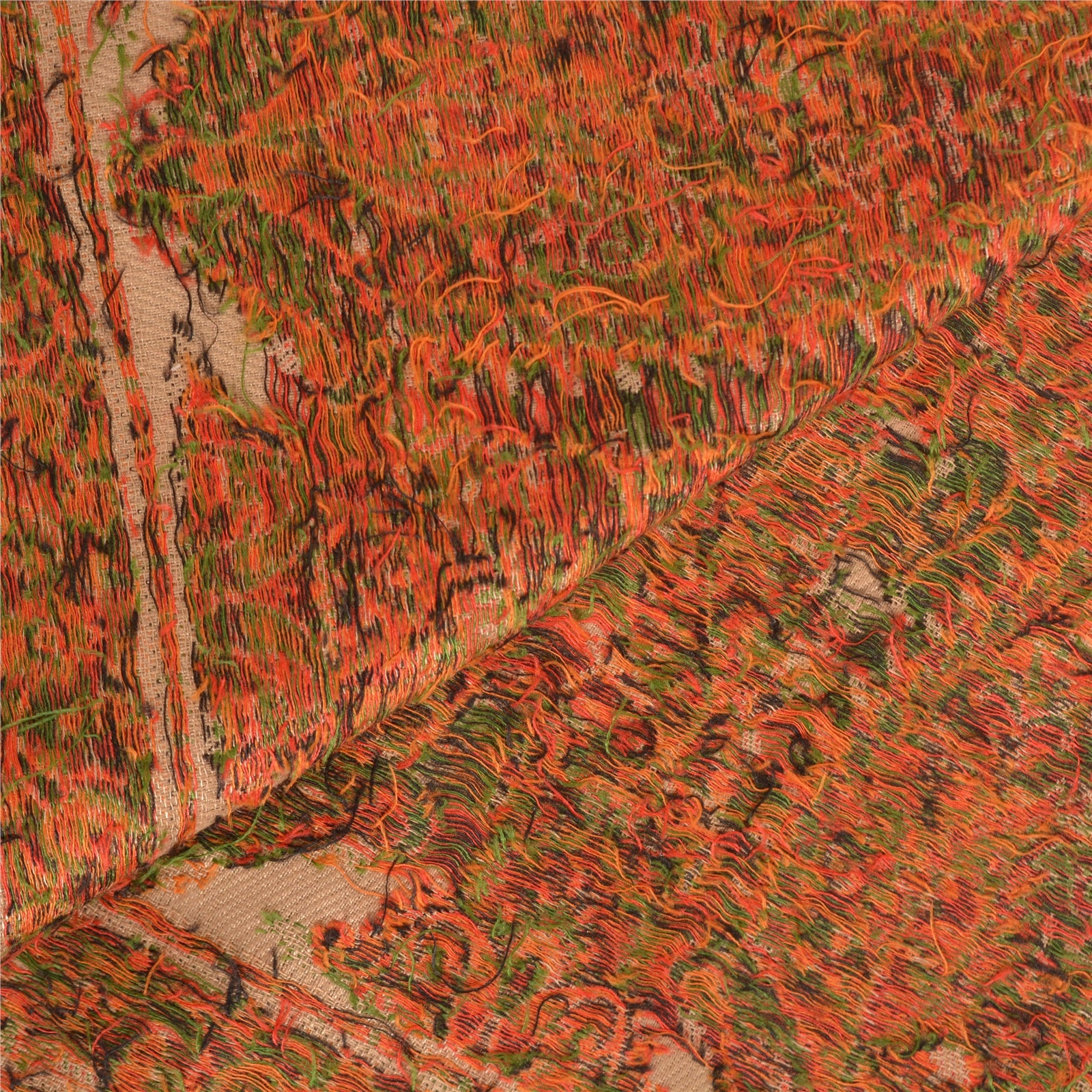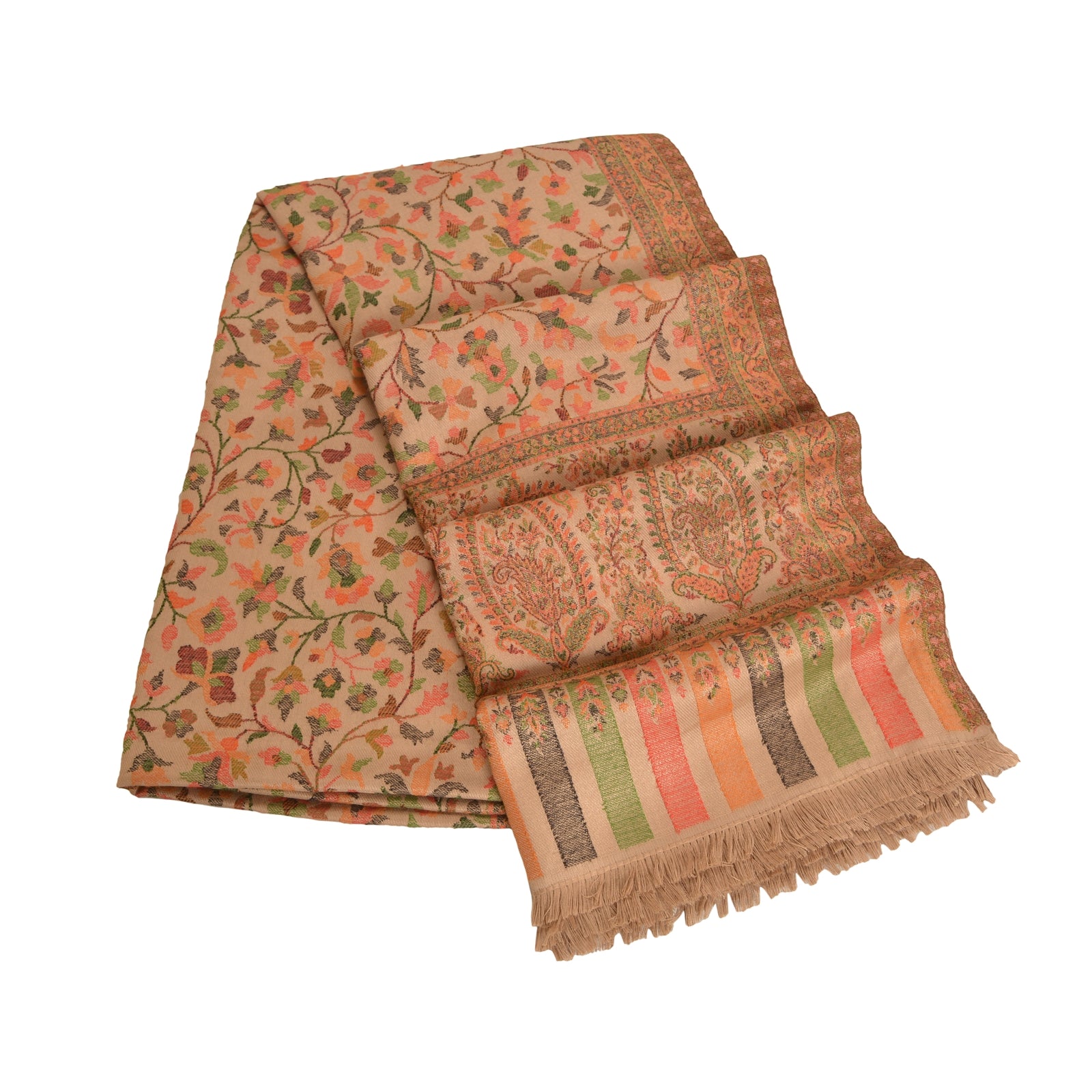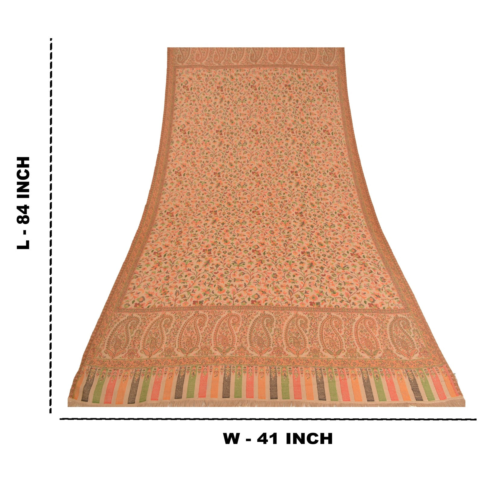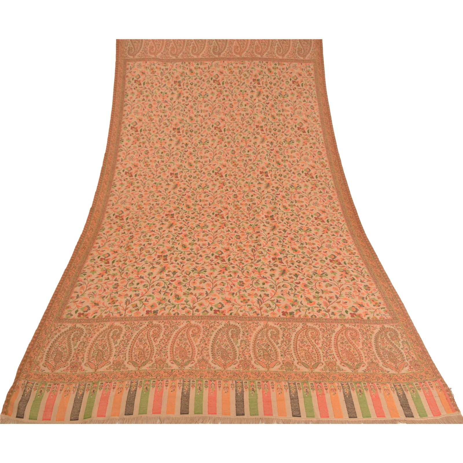 Sanskriti Vintage Long Woollen Beige Shawl Woven Scarf Throw Soft Stole