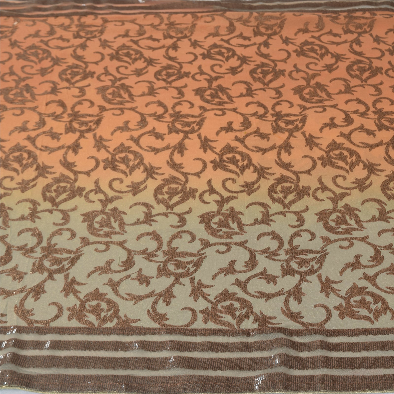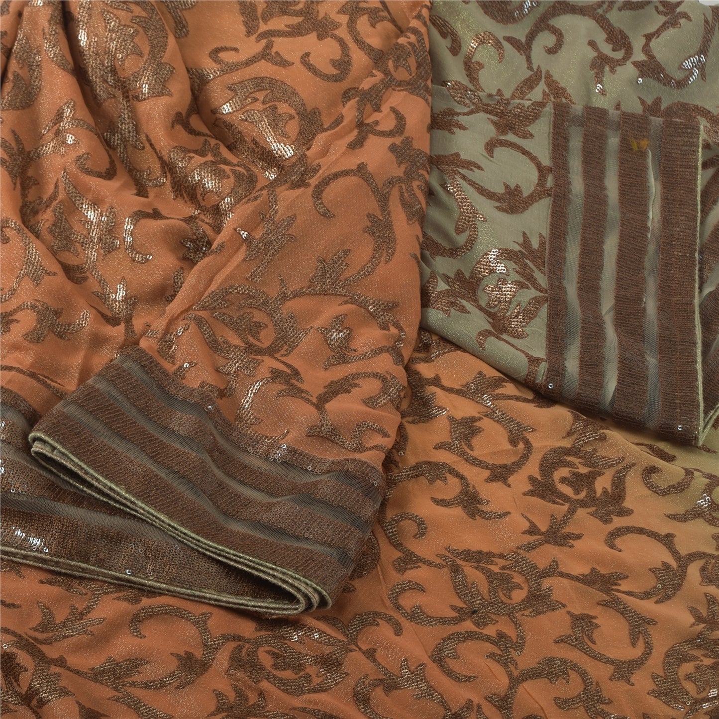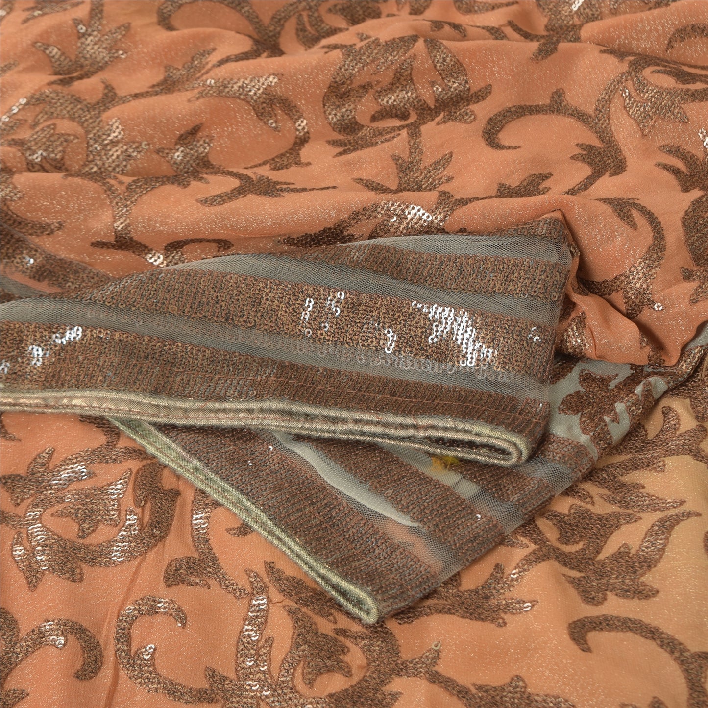 THE ITEM COLOR OR SHADE MAY BE DARKER OR LIGHTER THAN THE PICTURE.' An Awesome Sari In 100% Pure Silk Peach/Blue Colored Hand Embroidered Sari/Sustainable Fabric. Pallu & Border Features floral design embellished with black/golden sequins work & brown thread work. You Can See Center Portion Of The Sari Has Similar Thread Work With Floral Design This unique vintage saree can be used for various crafting ideas for example design a dress, use it as a throw, as window dressing, upholstery, table linen and much more. Let your creative juices flow and use this decorated Sustainable Fabric in multiple fashion Shipping note: International buyers please note: Import duties, taxes, and charges are not included in the item price or postage cost. These charges are the buyer's responsibility. Please check with your country's customs office to determine what these additional costs will be prior to bidding or buying. Buyer will pay custom duty/tax. It is calculated and charged differently by every country. As a seller I do not have any control over it. VAT or sales tax is calculated by the platform at the time of checkout. Customs charge is payable at the time of delivery. SKU: HS-7167