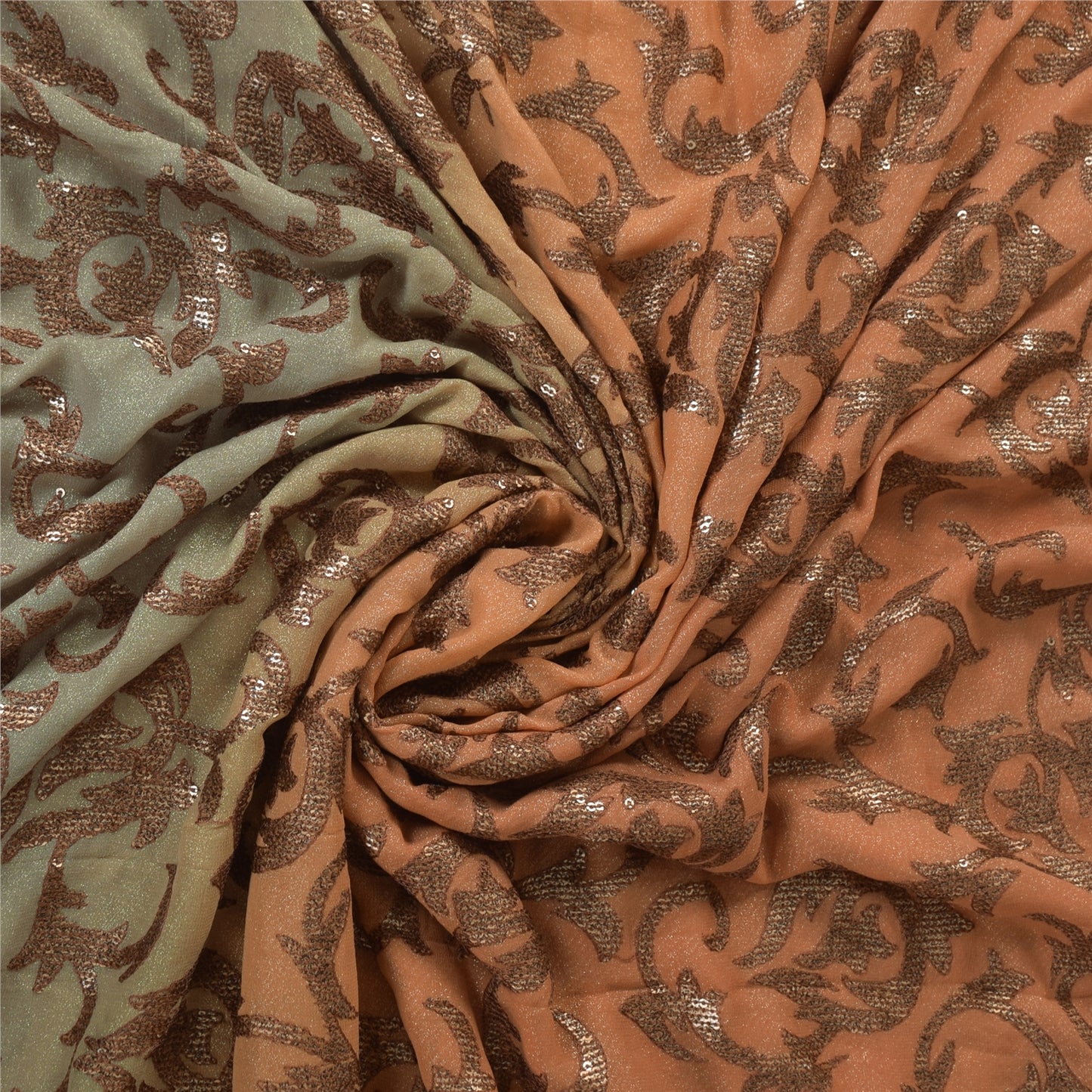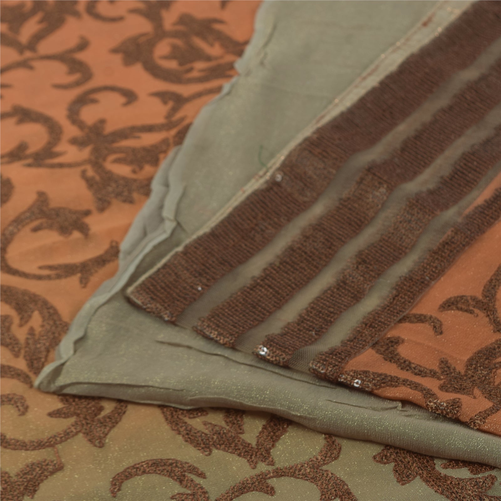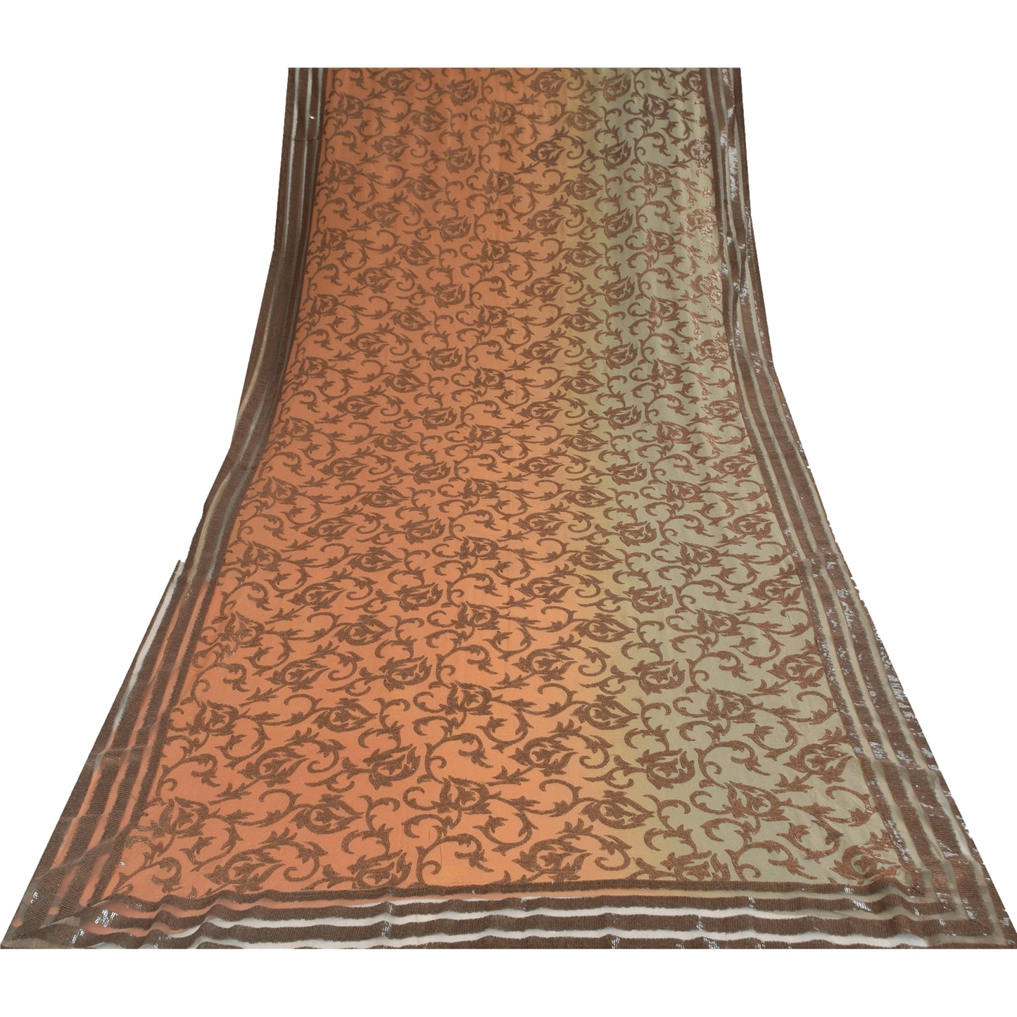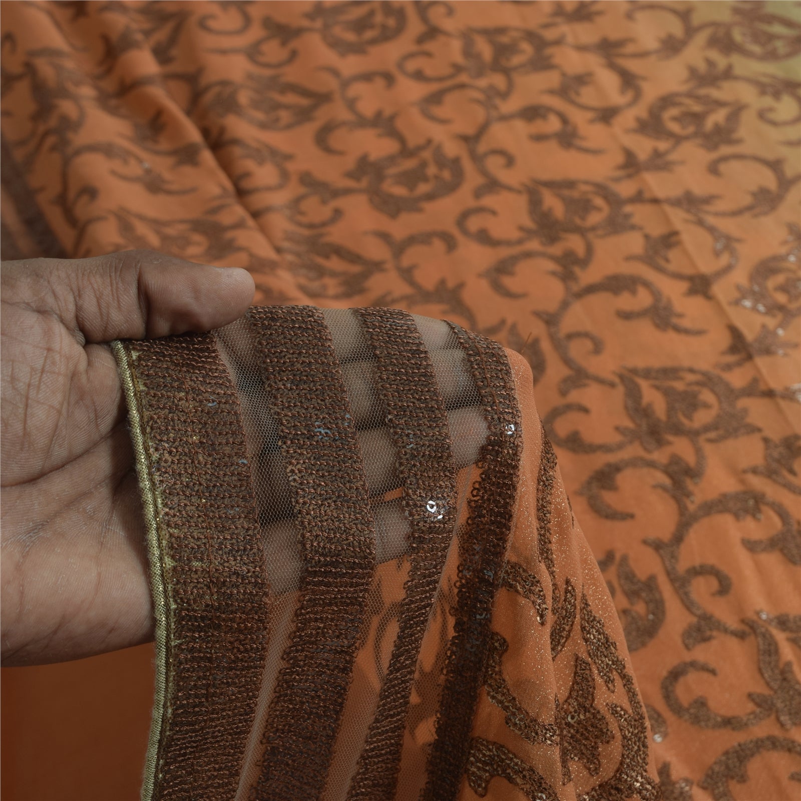 THE ITEM COLOR OR SHADE MAY BE DARKER OR LIGHTER THAN THE PICTURE.' An Awesome Sari In 100% Pure Silk Peach/Blue Colored Hand Embroidered Sari/Sustainable Fabric. Pallu & Border Features floral design embellished with black/golden sequins work & brown thread work. You Can See Center Portion Of The Sari Has Similar Thread Work With Floral Design This unique vintage saree can be used for various crafting ideas for example design a dress, use it as a throw, as window dressing, upholstery, table linen and much more. Let your creative juices flow and use this decorated Sustainable Fabric in multiple fashion Shipping note: International buyers please note: Import duties, taxes, and charges are not included in the item price or postage cost. These charges are the buyer's responsibility. Please check with your country's customs office to determine what these additional costs will be prior to bidding or buying. Buyer will pay custom duty/tax. It is calculated and charged differently by every country. As a seller I do not have any control over it. VAT or sales tax is calculated by the platform at the time of checkout. Customs charge is payable at the time of delivery. SKU: HS-7167
