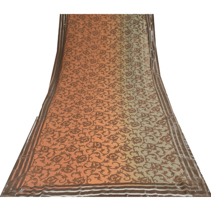 Sanskriti Vintage Peach/Blue Sarees Pure Silk Hand Beaded Sari 6yrd Craft Sustainable Fabric