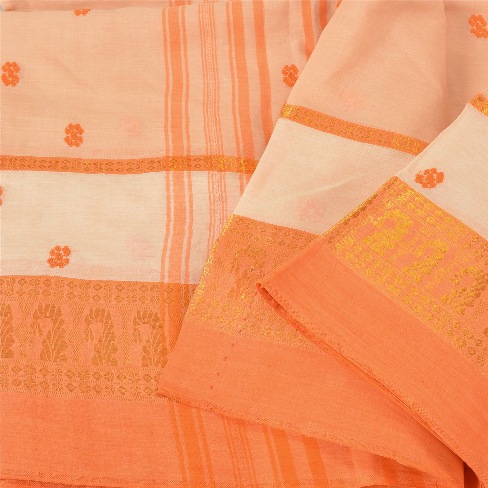 Sanskriti Vintage Peach Sarees 100% Pure Cotton Hand-Woven Premium Sari Sustainable Fabric