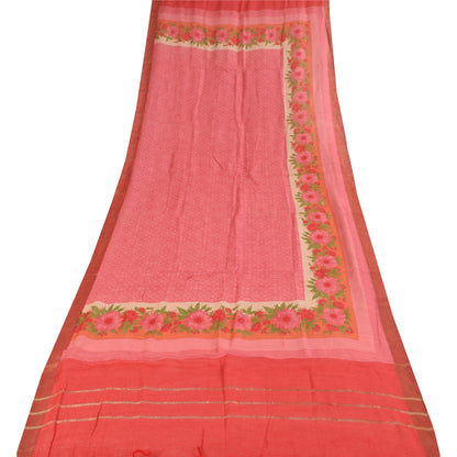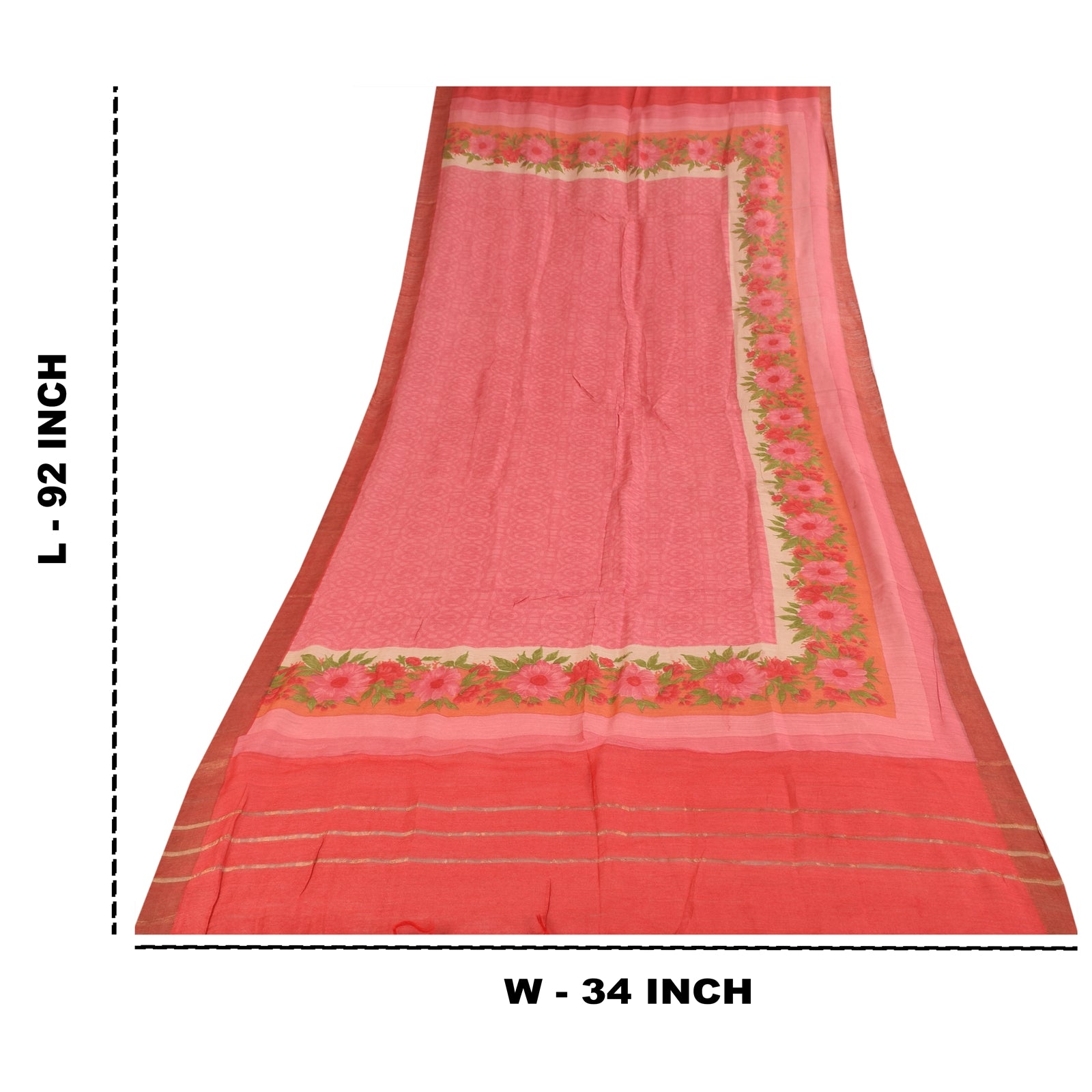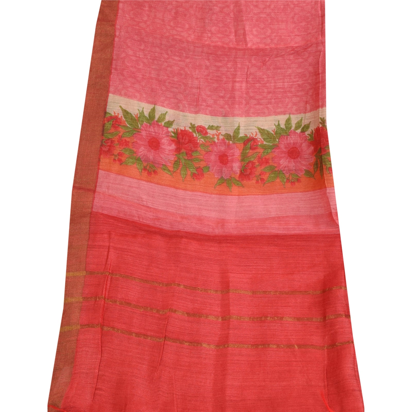 Sanskriti Vintage Pink Dupatta Long Stole Pure Silk Printed Premium Wrap Scarves