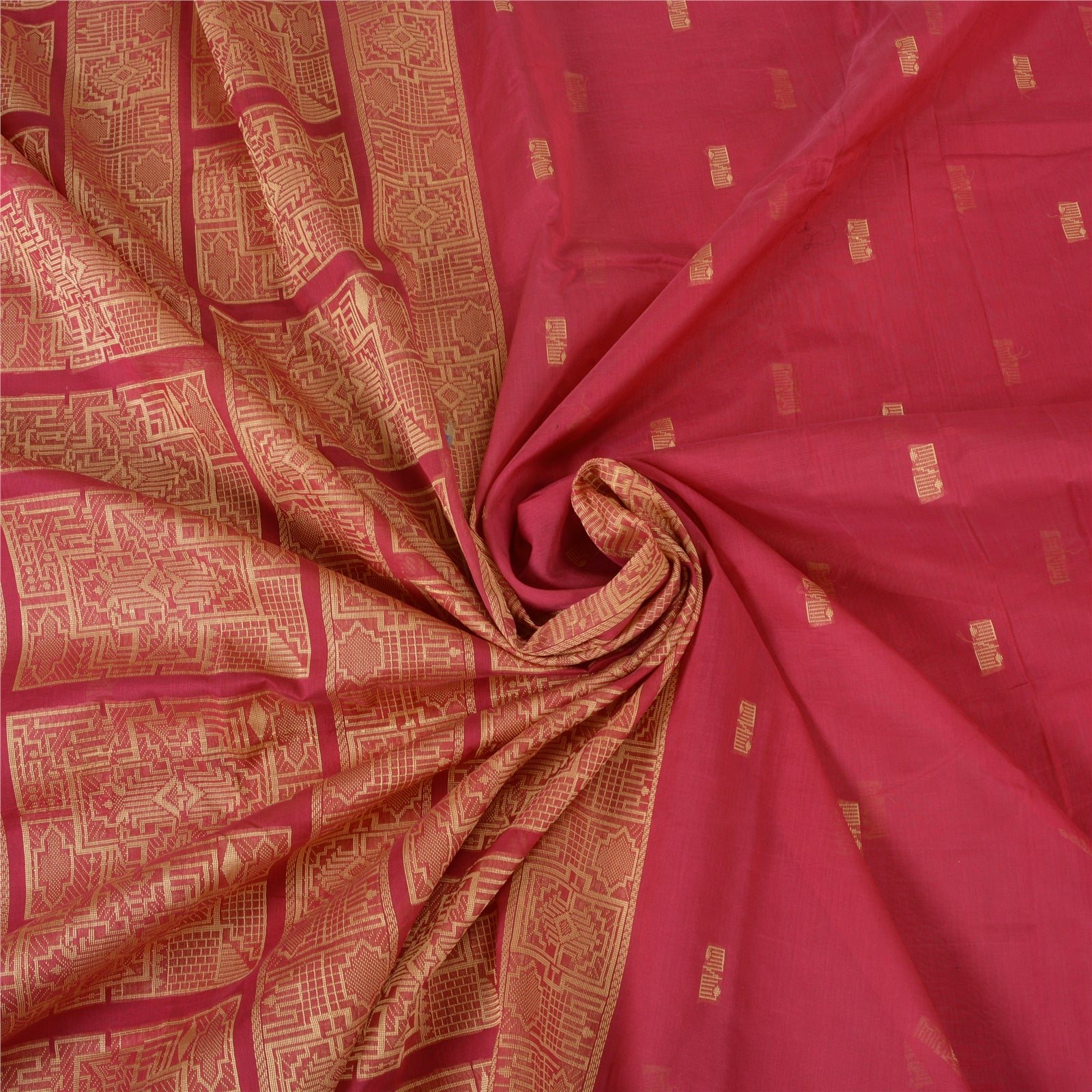 'THE ITEM COLOR OR SHADE MAY BE DARKER OR LIGHTER THAN THE PICTURE.' Beautiful pink colored blend silk woven sari. Pallu & border features cream woven thread work with floral & geometric design. The center of the saree has similar woven floral design. This saree can be used for various crafting ideas too. Use it for dress designing, as a throw, as window dressing, upholstery, table linen and much more. Let your creative juices flow. 'International buyers please note: Import duties, taxes, and charges are not included in the item price or postage cost. These charges are the buyer's responsibility. Please check with your country's customs office to determine what these additional costs will be prior to bidding or buying. Buyer will pay custom duty/tax. It is calculated and charged differently by every country. As a seller I do not have any control over it. VAT or sales tax is calculated by the platform at the time of checkout. Customs charge is payable at the time of delivery.'
