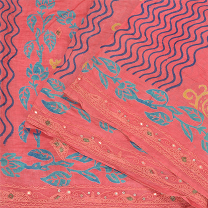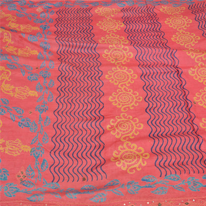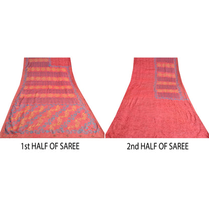 Sanskriti Vintage Pink Sarees Pure Silk Hand Beaded Craft Sustainable Fabric Printed Sari