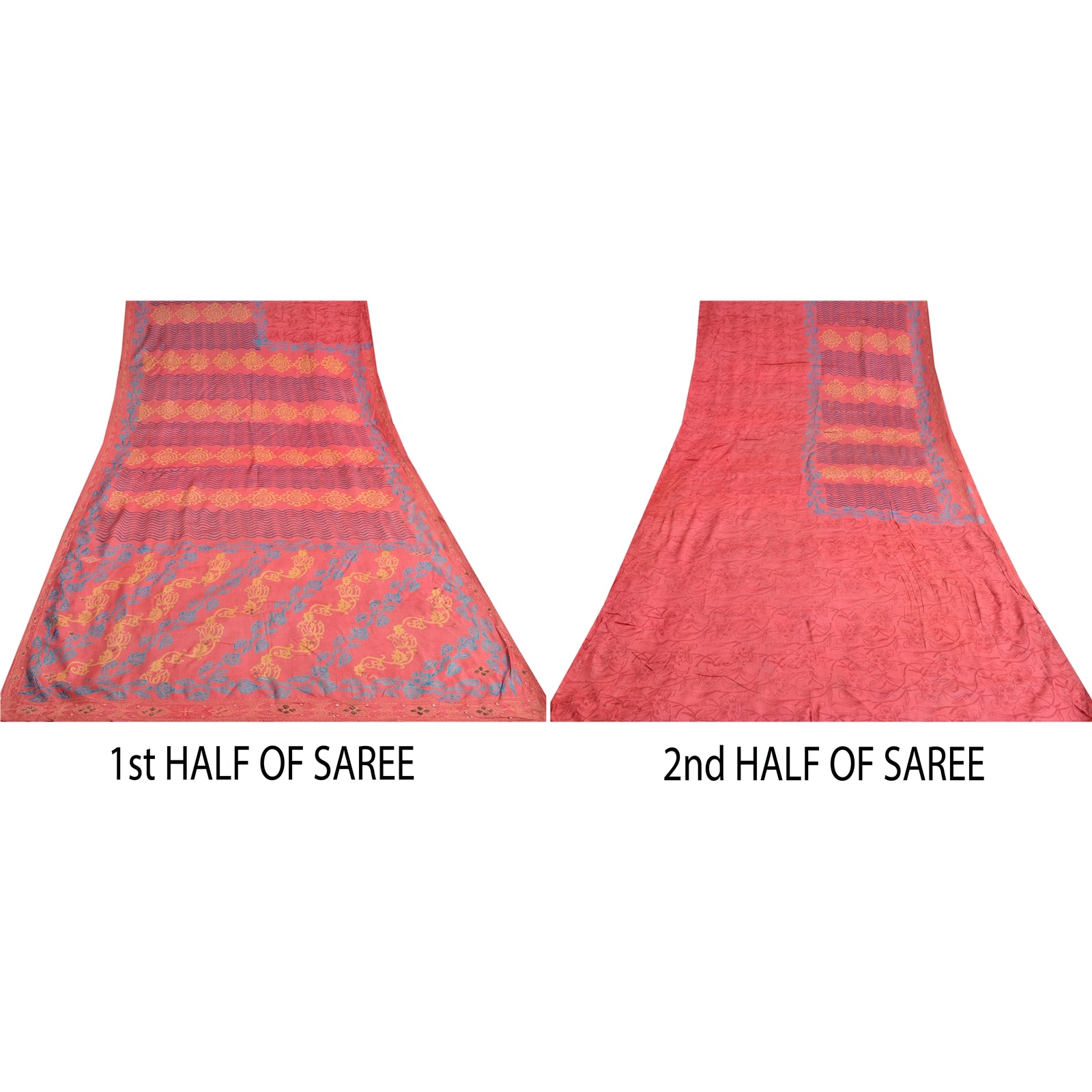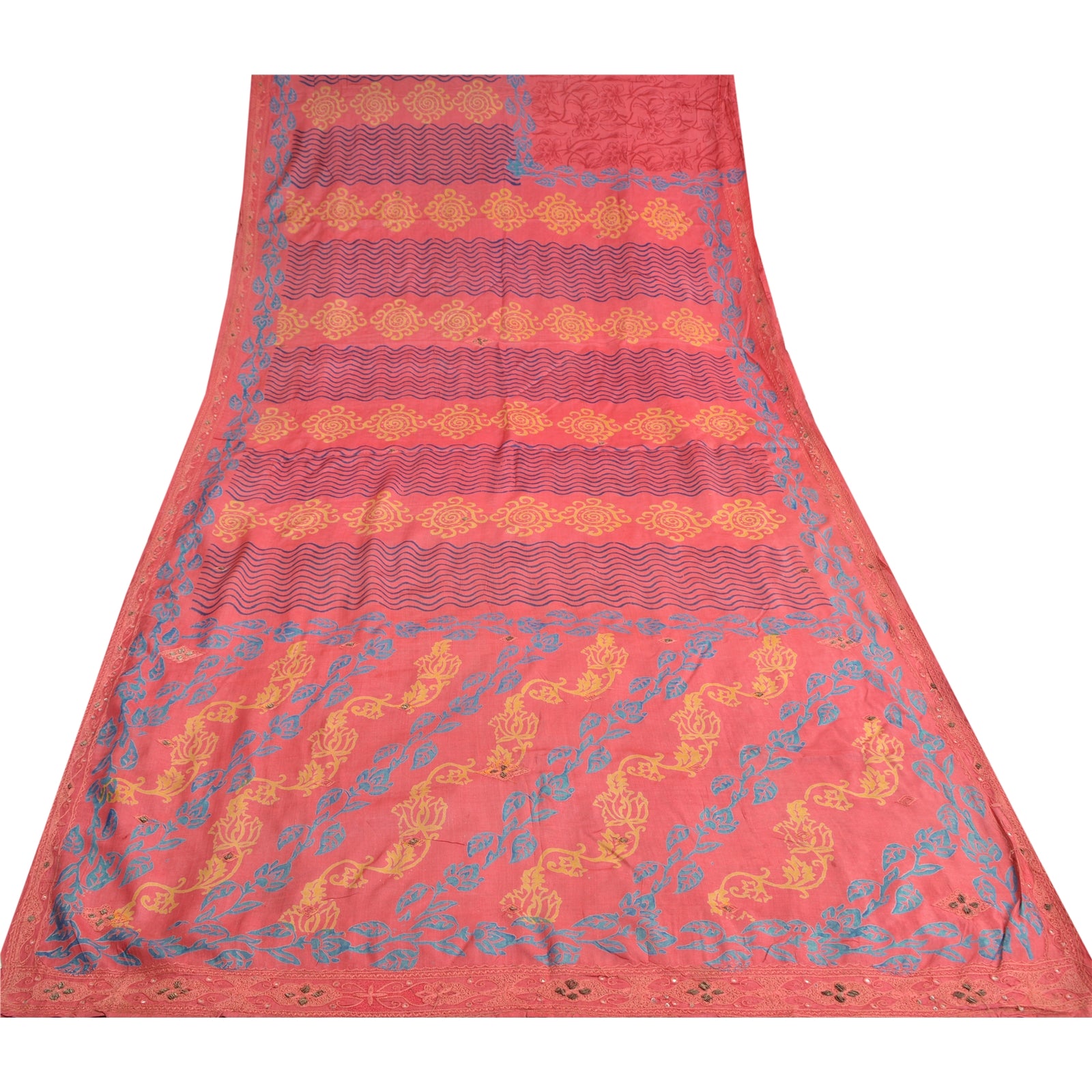 • Beautiful pink colored hand embroidered printed pure silk sari/Sustainable Fabric. • Pallu & Border features printed floral design embellished with pink thread work. • Pallu & border also has gold zardozi work, mirror work. • There are floral motifs with similar work in center part of sari. This unique vintage saree can be used for various crafting ideas even if you don't want to use it as a sari. Design a dress, use it as a throw, as window dressing, upholstery, sarongs, table linen and much more. Let your creative juices flow and use this decorated Sustainable Fabric in multiple fashion. International buyers please note: Import duties, taxes, and charges are not included in the item price or postage cost. These charges are the buyer's responsibility. Please check with your country's customs office to determine what these additional costs will be prior to bidding or buying. Buyer will pay custom duty/tax. It is calculated and charged differently by every country. As a seller I do not have any control over it. VAT or sales tax is calculated by the platform at the time of checkout. Customs charge is payable at the time of delivery.