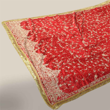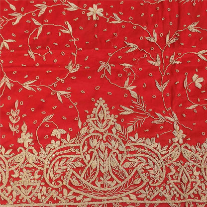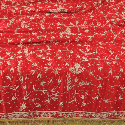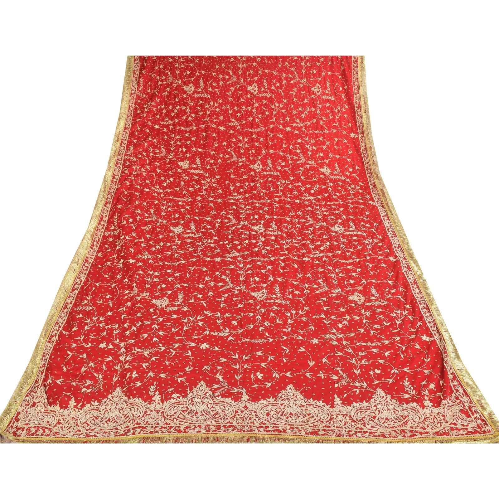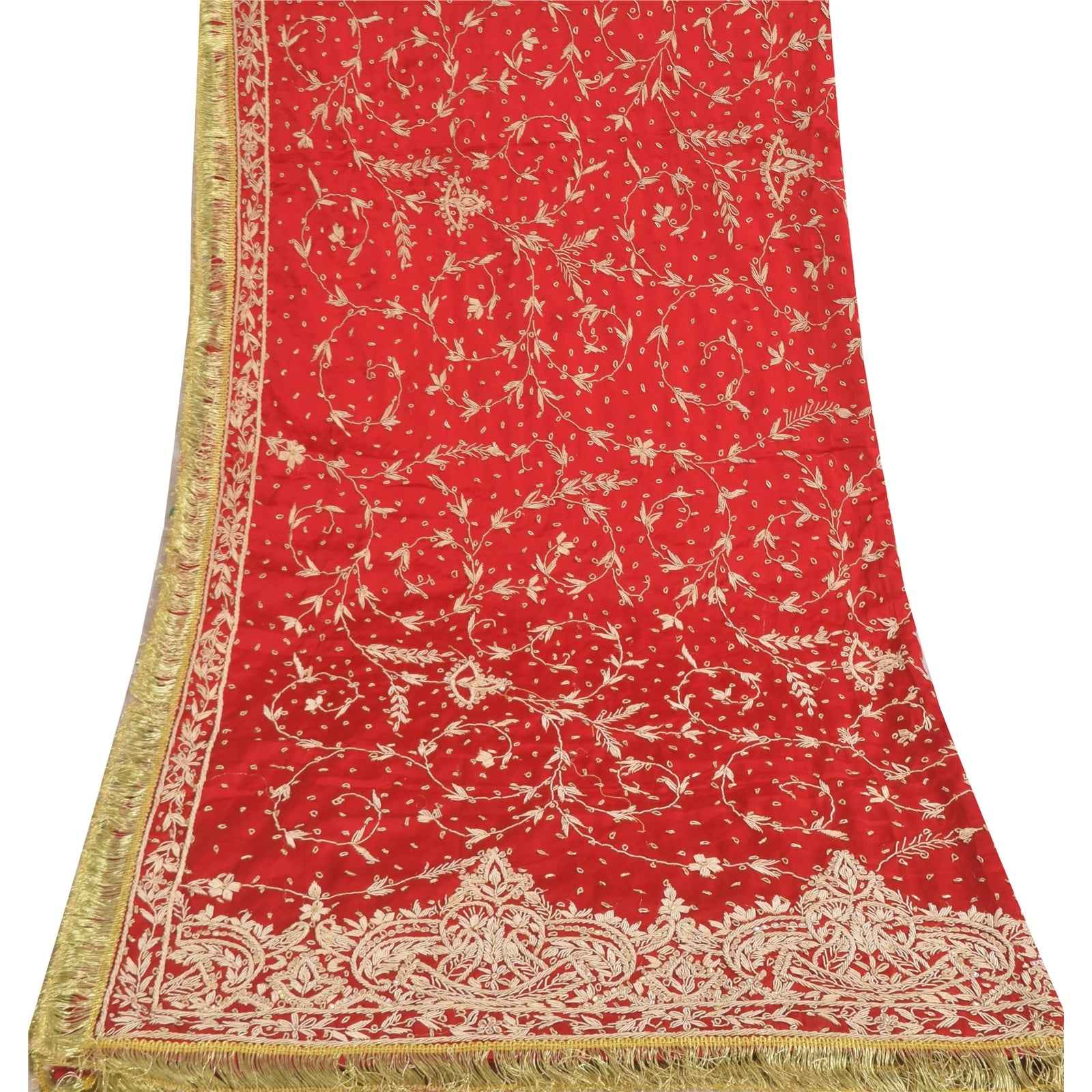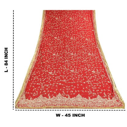 Sanskriti Vintage Red Dupatta Long Stole Art Silk Hand Beaded Premium Wrap Veil