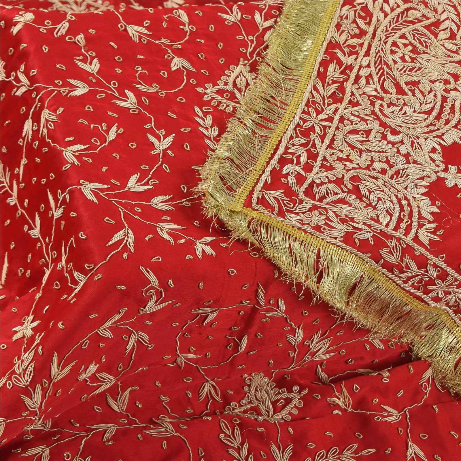 'THE ITEM COLOR OR SHADE MAY BE DARKER OR LIGHTER THAN THE PICTURE.' Beautiful Red colored Art silk hand embroidered long scarf/dupatta. Center portion of the dupatta has floral design with Zardozi work. Border has floral design embellished with metallic golden Zardozi work & white glass beads work is really enhancing beauty of the dupatta/stole. Dupatta has golden fringes lace on both ends of borders. This dupatta/stole can be used for various crafting ideas too. Use it for dress designing, as a throw, as window dressing, upholstery, table linen and much more. Let your creative juices flow. Shipping note: International buyers please note: Import duties, taxes, and charges are not included in the item price or postage cost. These charges are the buyer's responsibility. Please check with your country's customs office to determine what these additional costs will be prior to bidding or buying. Buyer will pay custom duty/tax. It is calculated and charged differently by every country. As a seller I do not have any control over it. VAT or sales tax is calculated by the platform at the time of checkout. Customs charge is payable at the time of delivery.' SKU: HD-7765