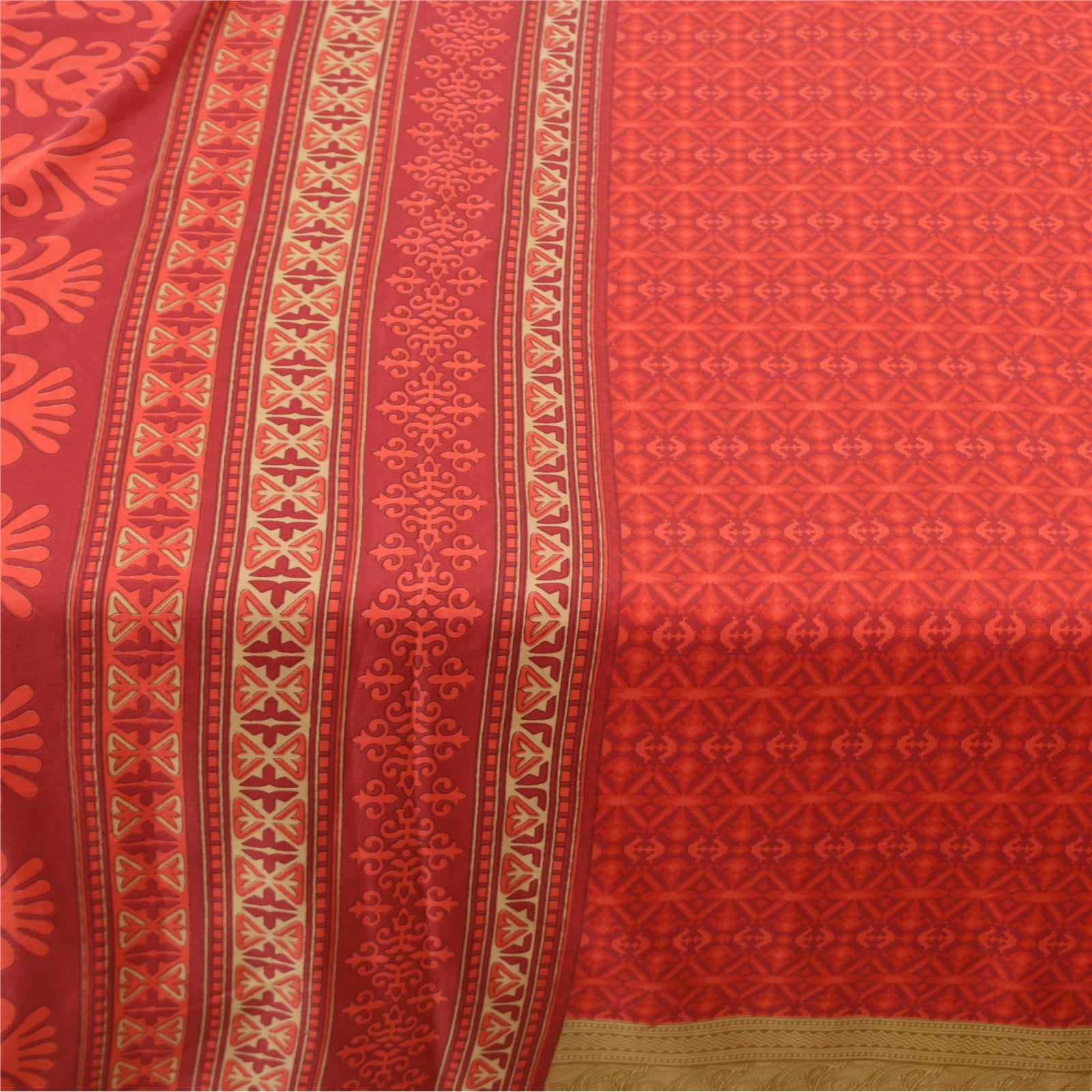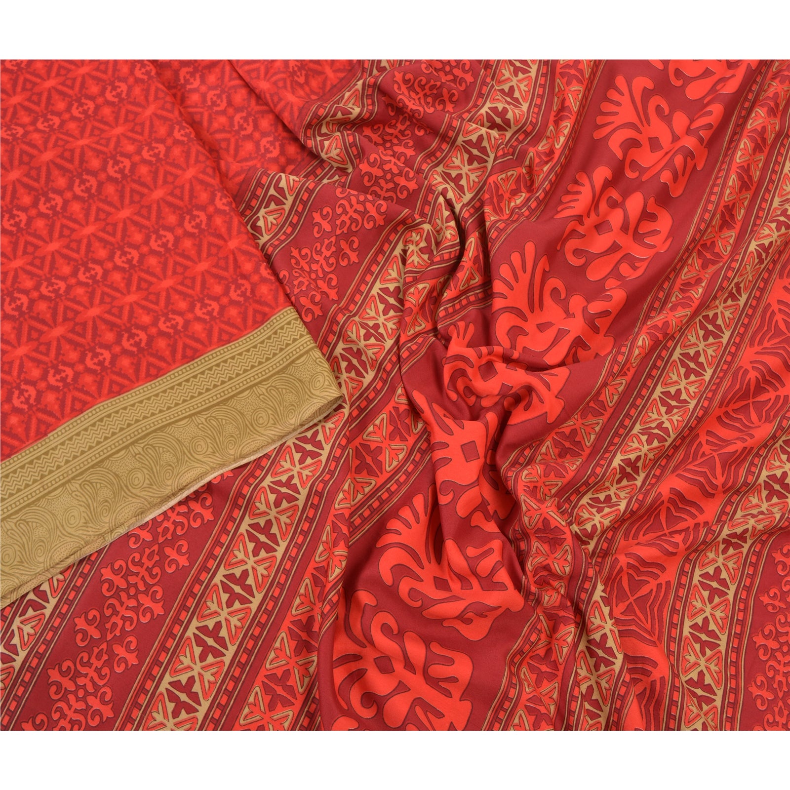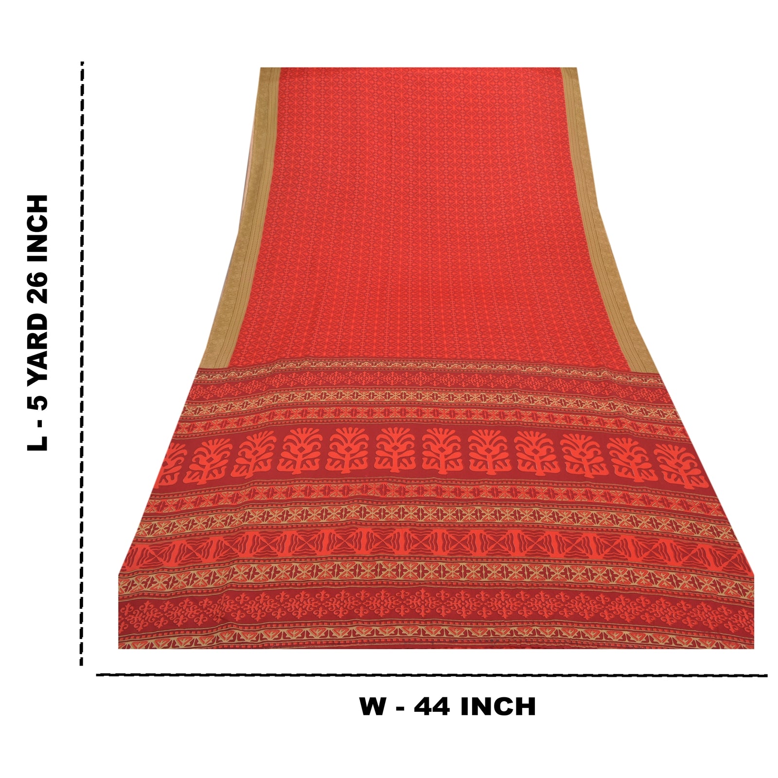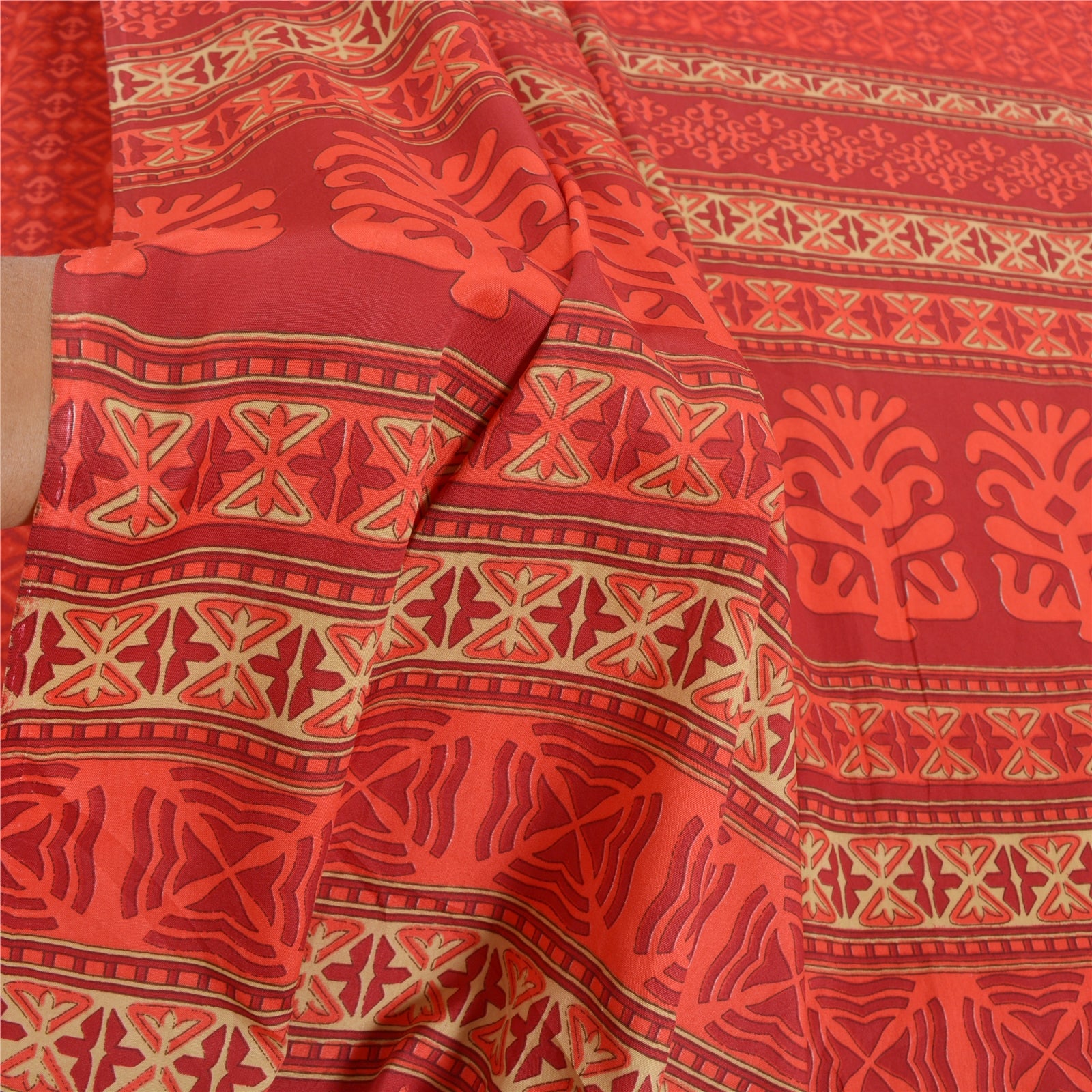 Sanskriti Vintage Red Indian Sarees Moss Crepe Printed Sari 5 YD Craft Sustainable Fabric