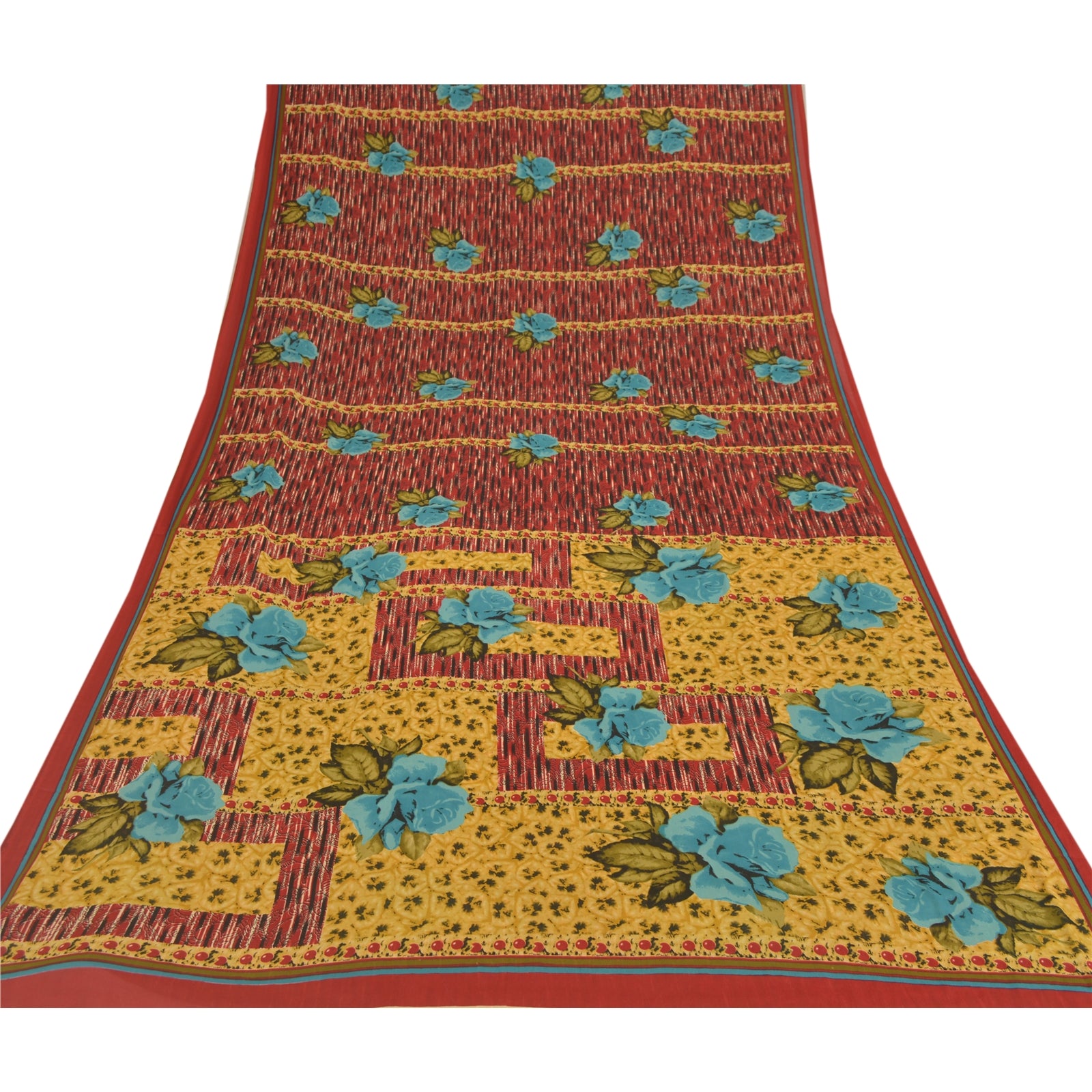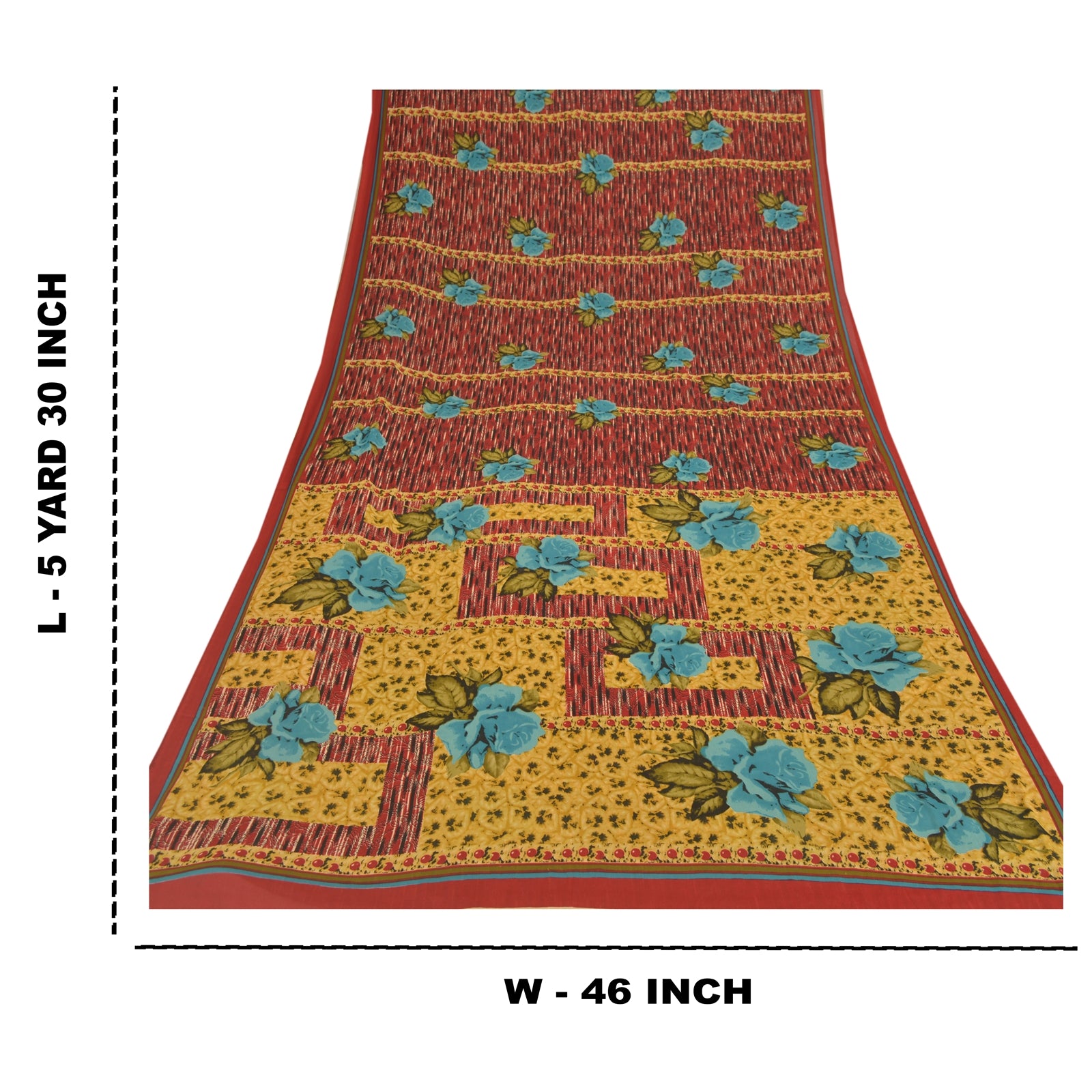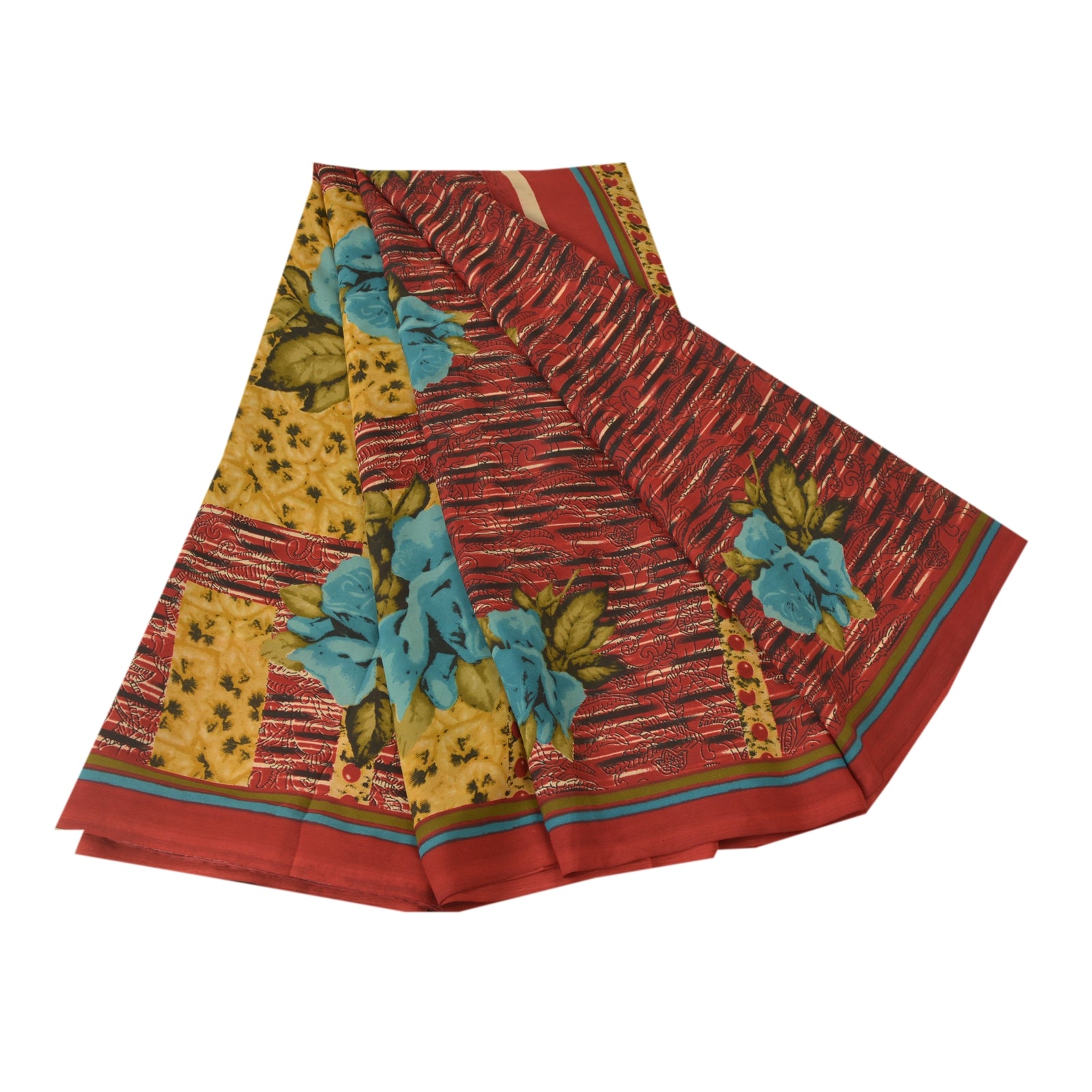 Sanskriti Vintage Red Sarees Moss Crepe Printed Indian Sari 5 Yd Craft Sustainable Fabric