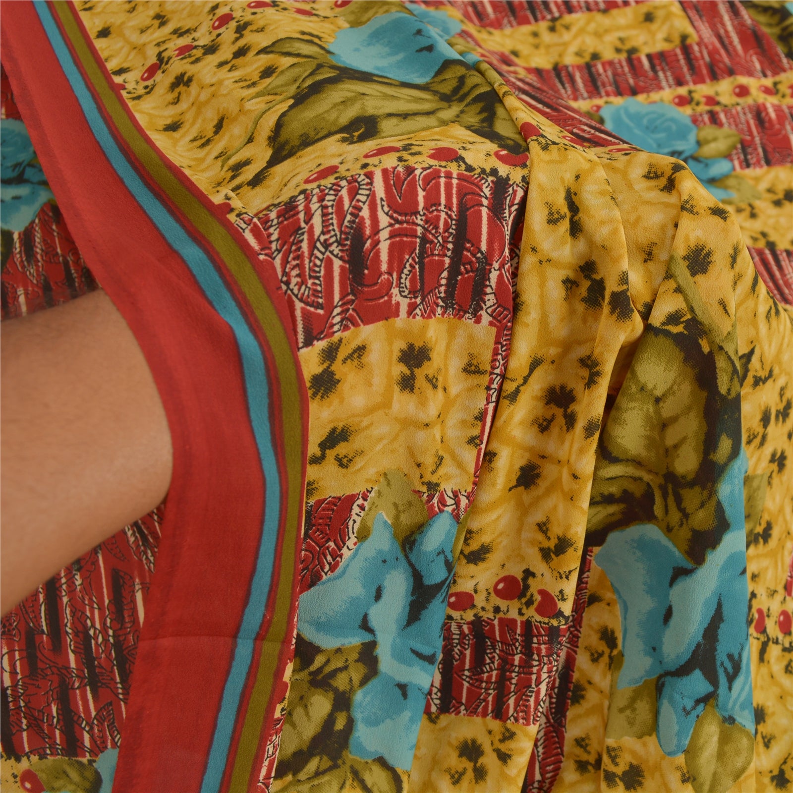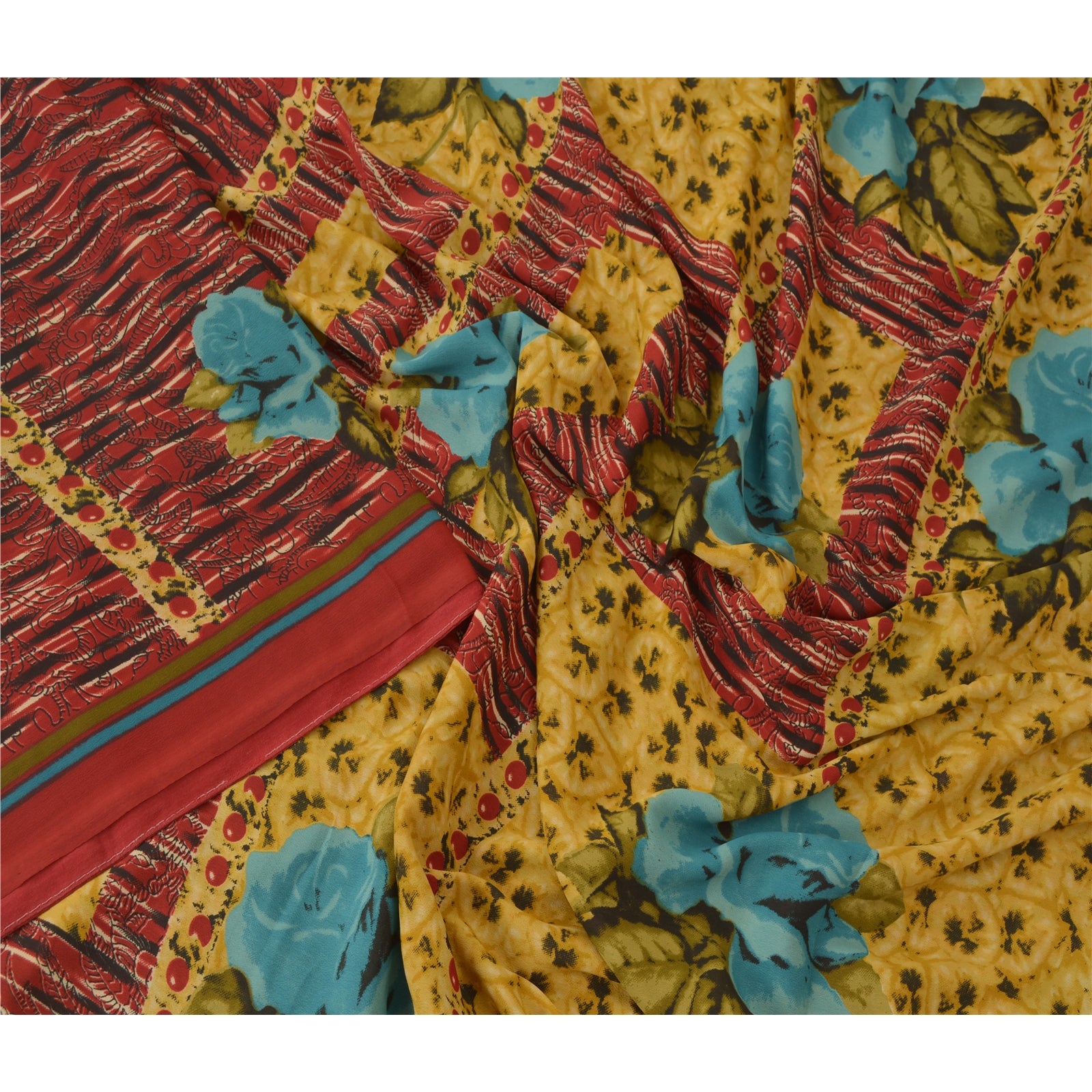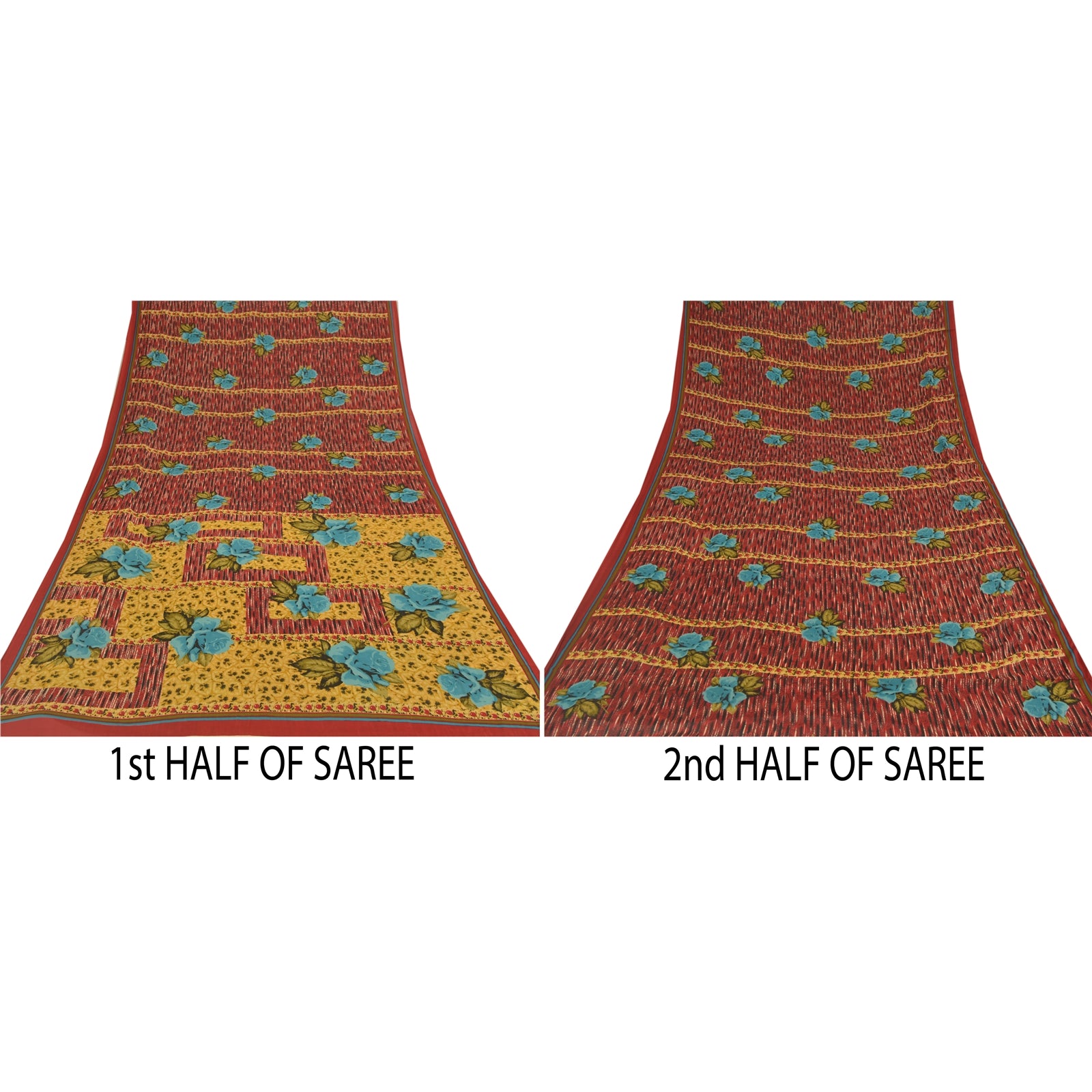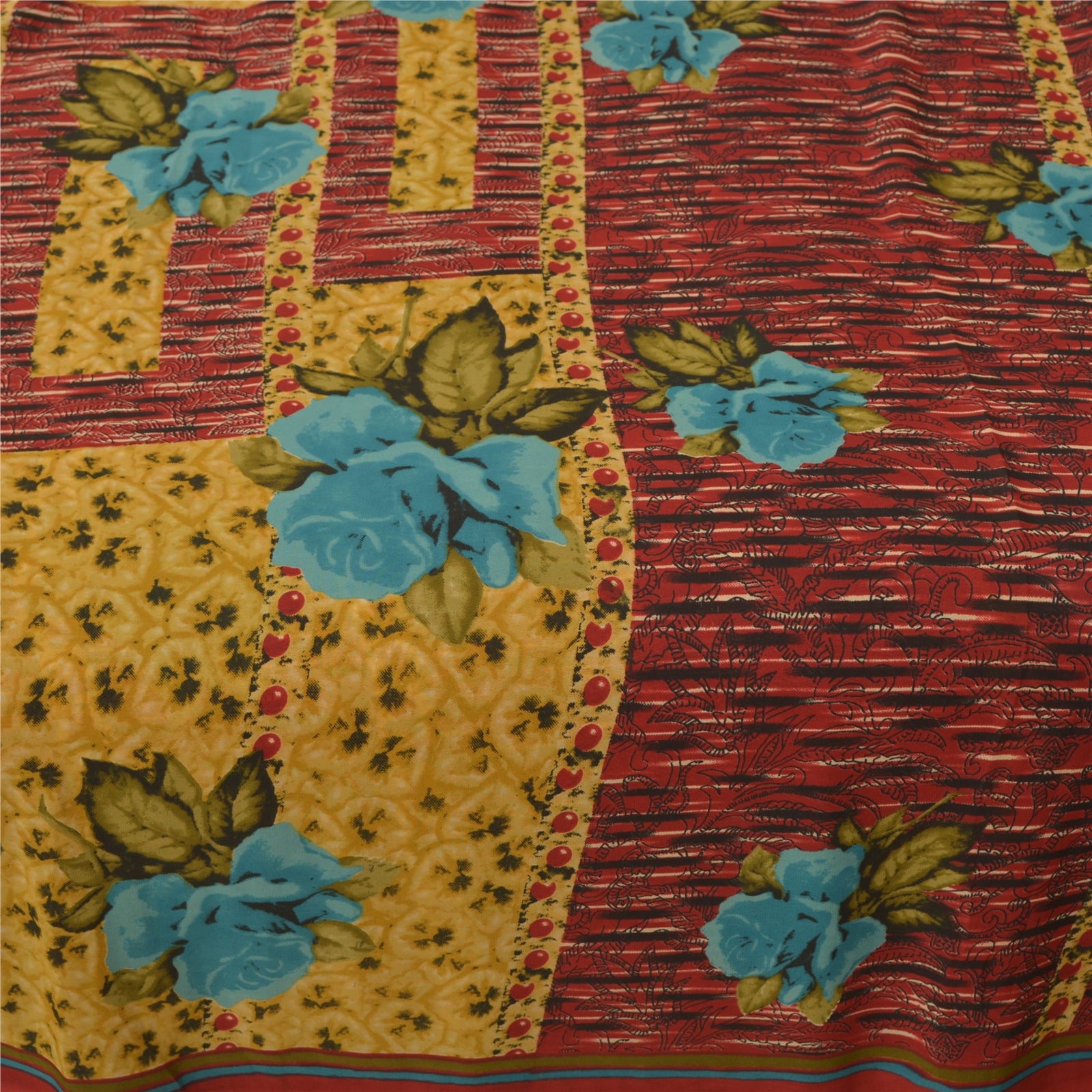 Sanskriti Vintage Red Sarees Moss Crepe Printed Indian Sari 5 Yd Craft Sustainable Fabric
