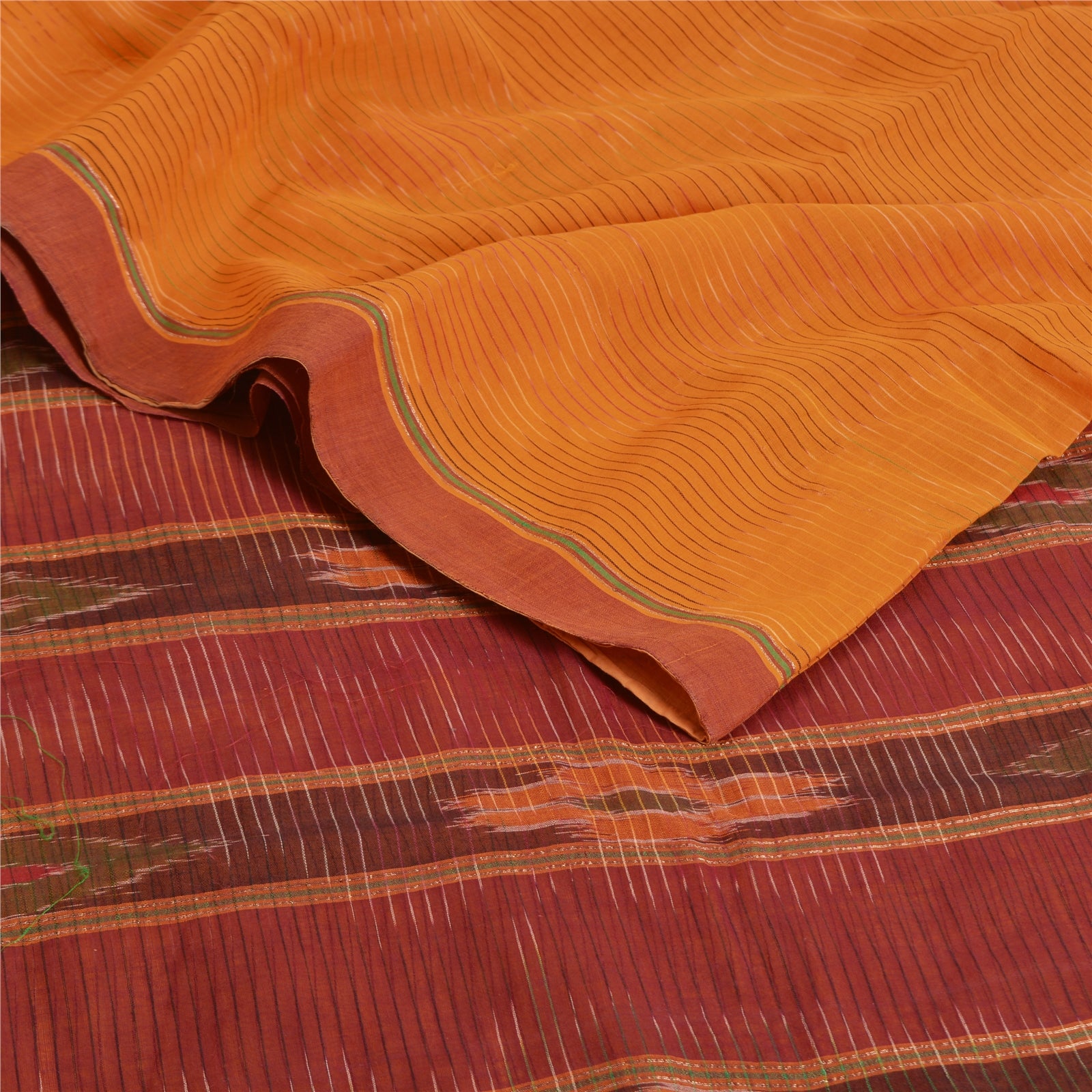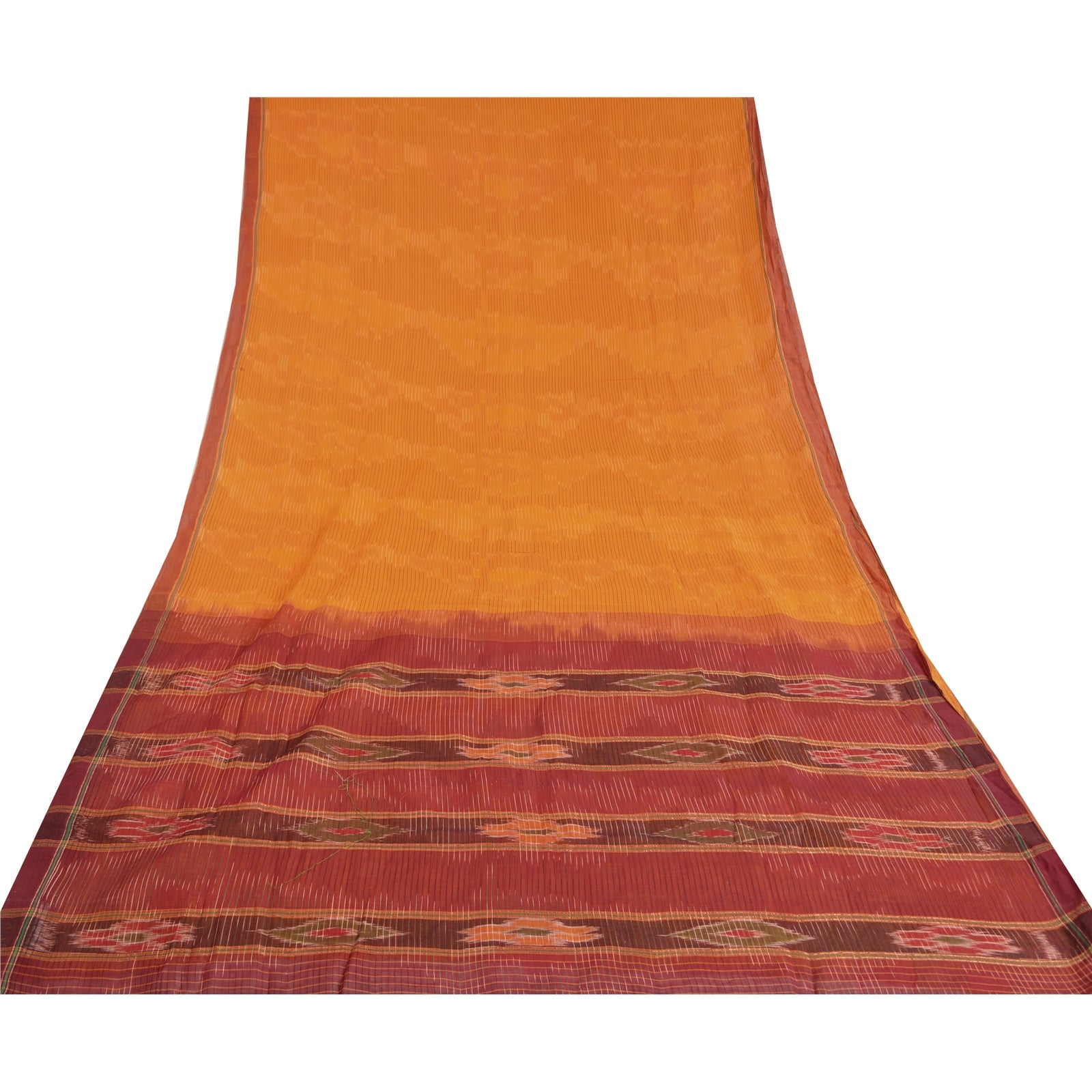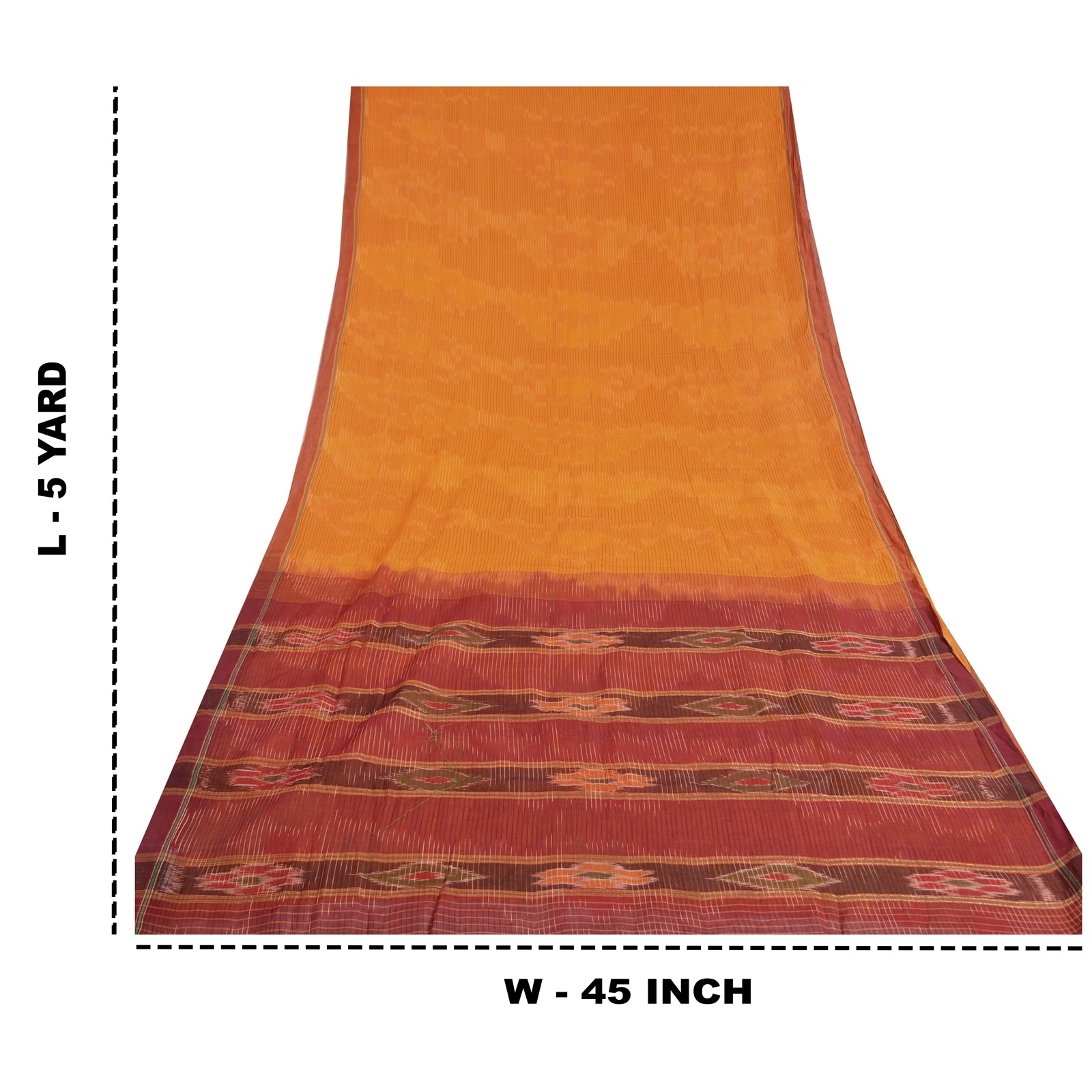 Sanskriti Vintage Saree Yellow Odisha Hand Woven Ikat Pure Cotton Sari Sustainable Fabric