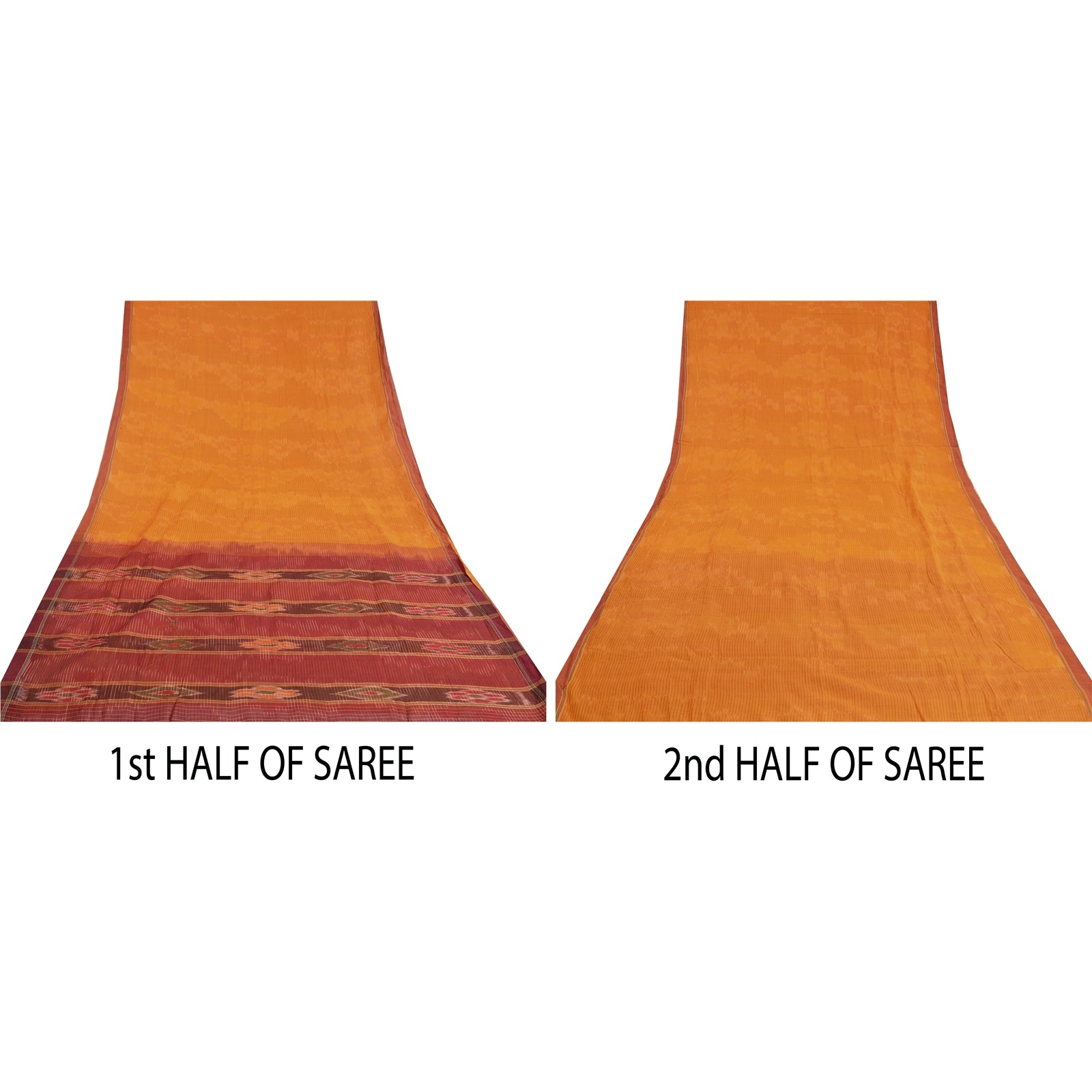THE ITEM COLOR OR SHADE MAY BE DARKER OR LIGHTER THAN THE PICTURE.' Traditional yellow & dark red colored pure cotton hand ikat woven odisha sari. Pallu & Border features geometric design with ikat woven work. Similar work in center part of saree. What is special about this saree? Intricate ikat hand woven work on pure silk base Sustainable Fabric is really enhancing the beauty of the saree. This unique vintage saree can be used for various crafting ideas even if you don't want to use it as a sari. Design a dress, use it as a throw, as window dressing, upholstery, sarongs, table linen and much more. Let your creative juices flow and use this decorated Sustainable Fabric in multiple fashion. ODHISA This Saree is a traditional hand woven ikat where in the warp and the weft are tie-dyed before weaving. It is produced in Odisha(Eastern India). Sarees are made from Sustainable Fabric woven on a hand-loom and are known for their incorporation of traditional motifs like shankha (shell), chakra(wheel), phula (flower), all of which have deep symbolism, but the highpoint of these sarees is the traditional craftsmanship of the Tie-dye art reflected in their intricate weaves. In this technique, the threads are first tie-dyed and later woven into a Sustainable Fabric, with the entire process taking many weeks. Sambalpur, Boudh, dhalapathar and Sonepur districts of Odisha are mainly famous for ikat woven sarees. International buyers please note: Import duties, taxes, and charges are not included in the item price or postage cost. These charges are the buyer's responsibility. Please check with your country's customs office to determine what these additional costs will be prior to bidding or buying. Buyer will pay custom duty/tax. It is calculated and charged differently by every country. As a seller I do not have any control over it. VAT or sales tax is calculated by the platform at the time of checkout. Customs charge is payable at the time of delivery.'