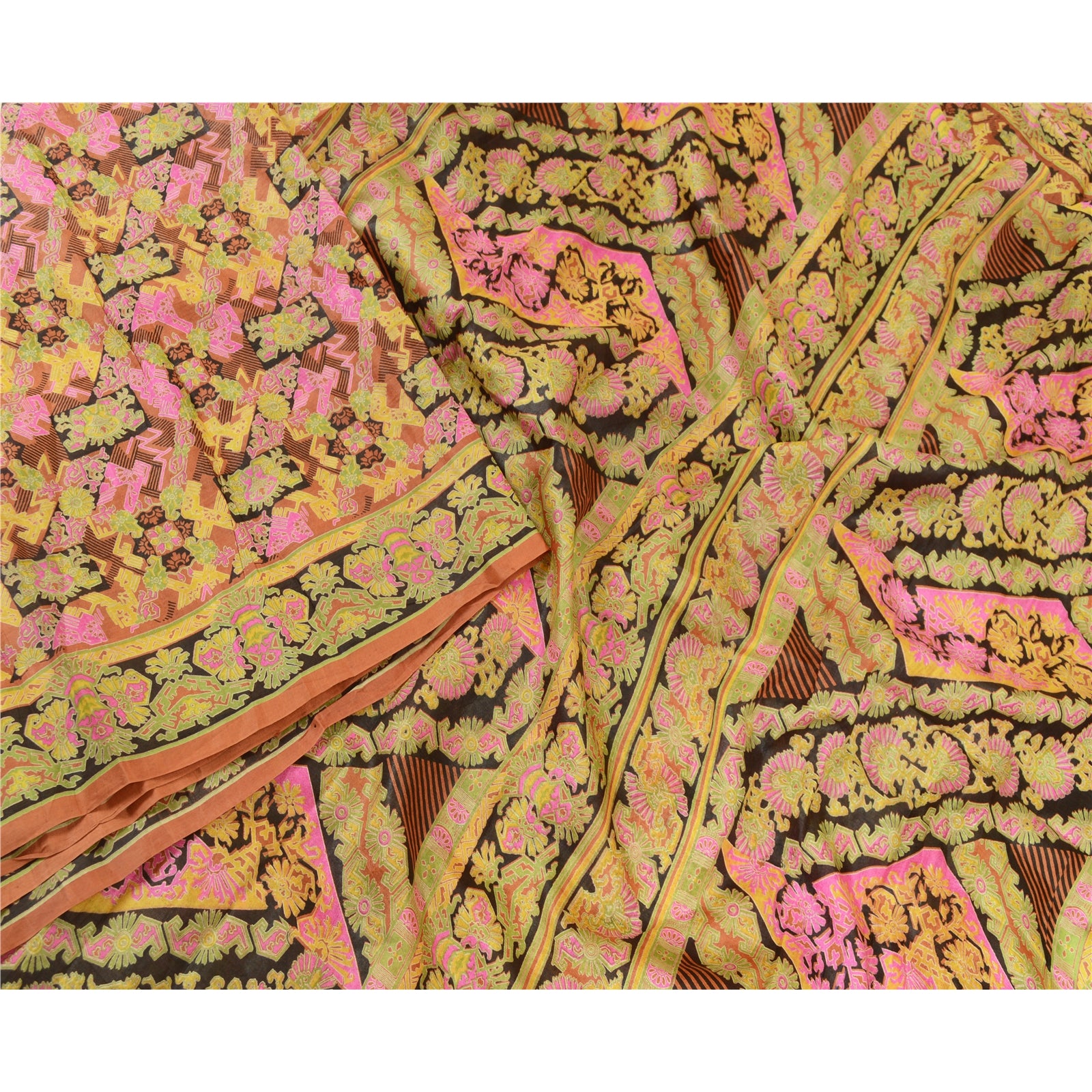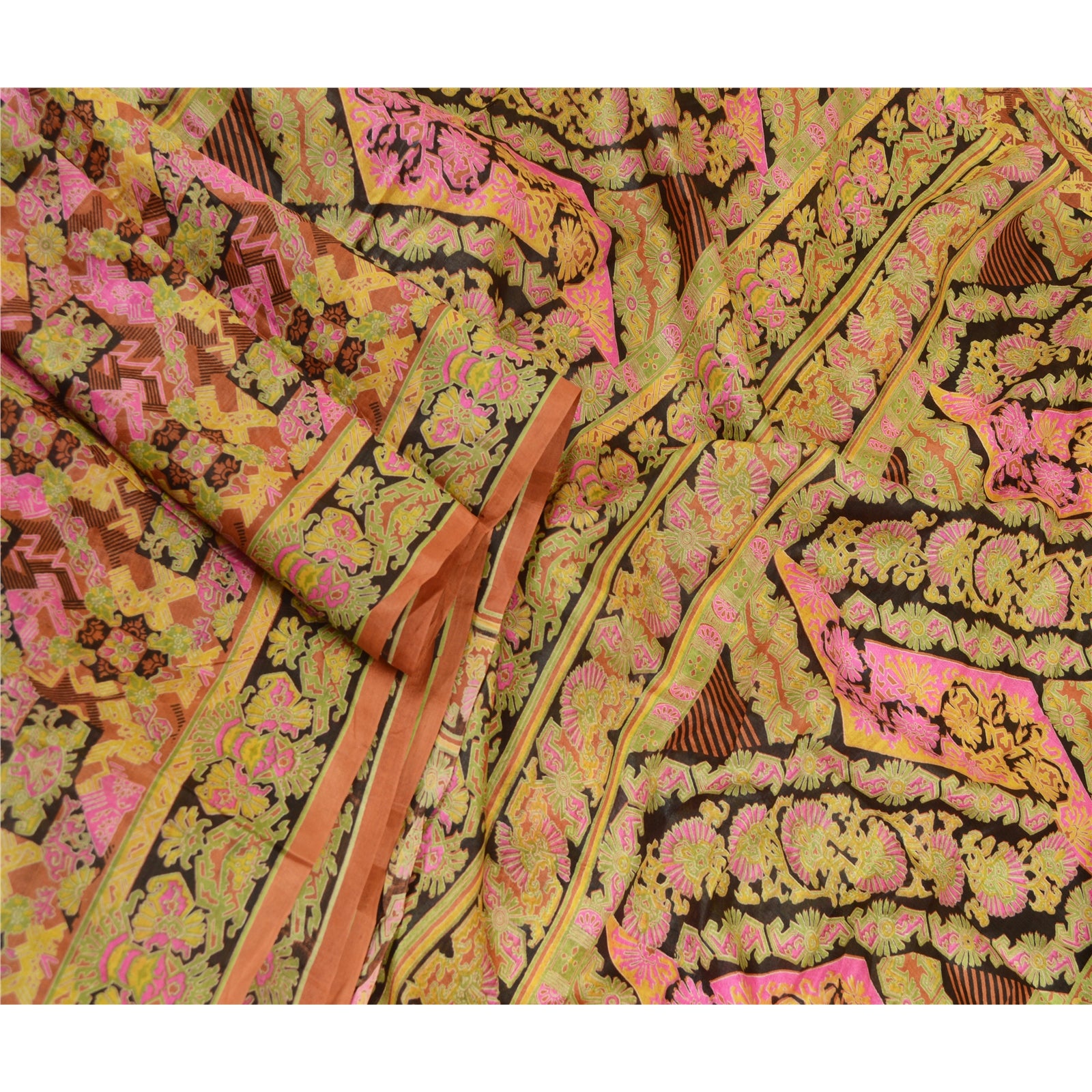 Sanskriti Vintage Sarees 5YD Pure Silk Quilting Felting Craft Sustainable Fabric Print Sari
