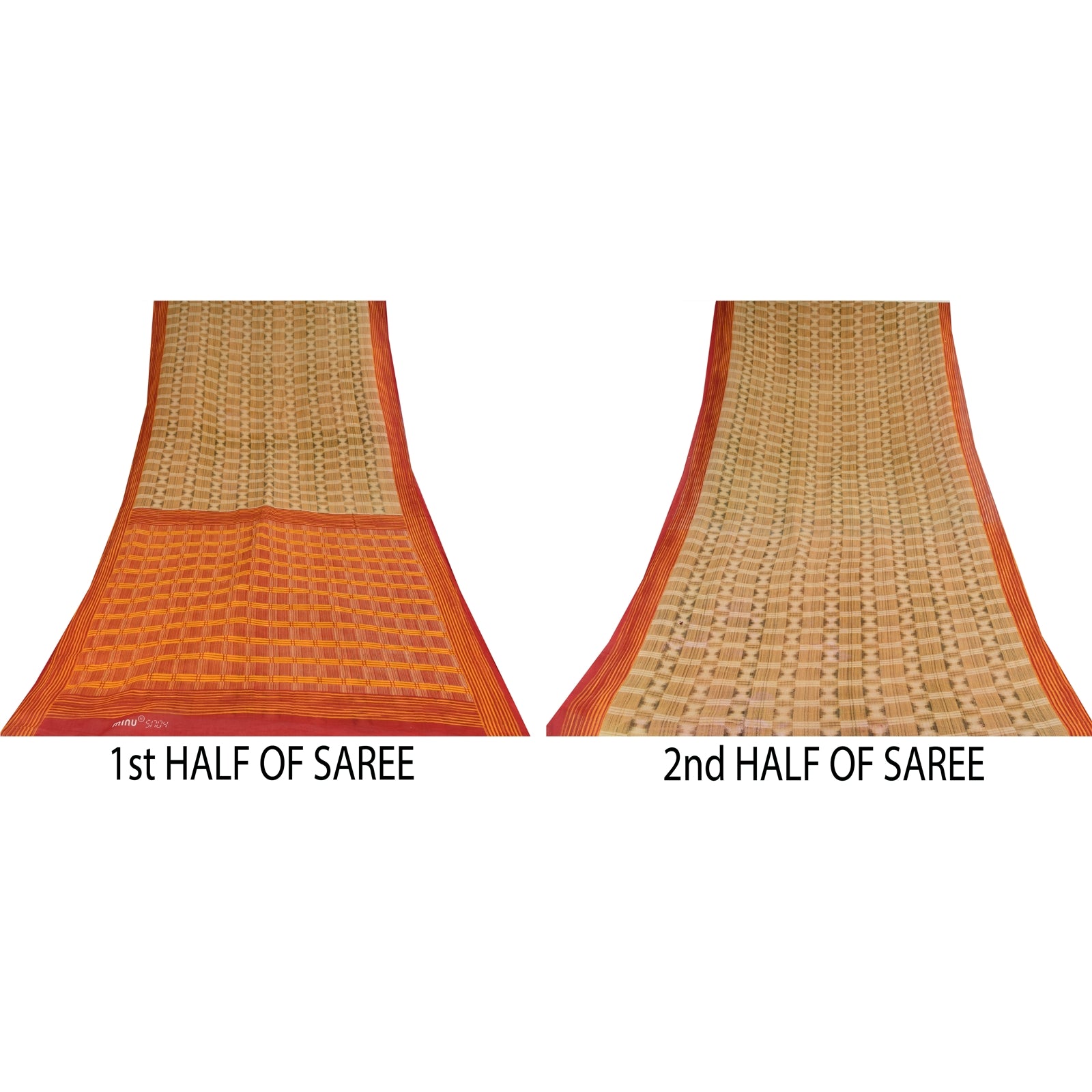 Sanskriti Vintage Sarees Beige 100% Pure Cotton Printed Sari 5+yd Craft Sustainable Fabric